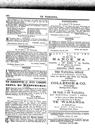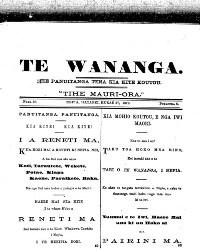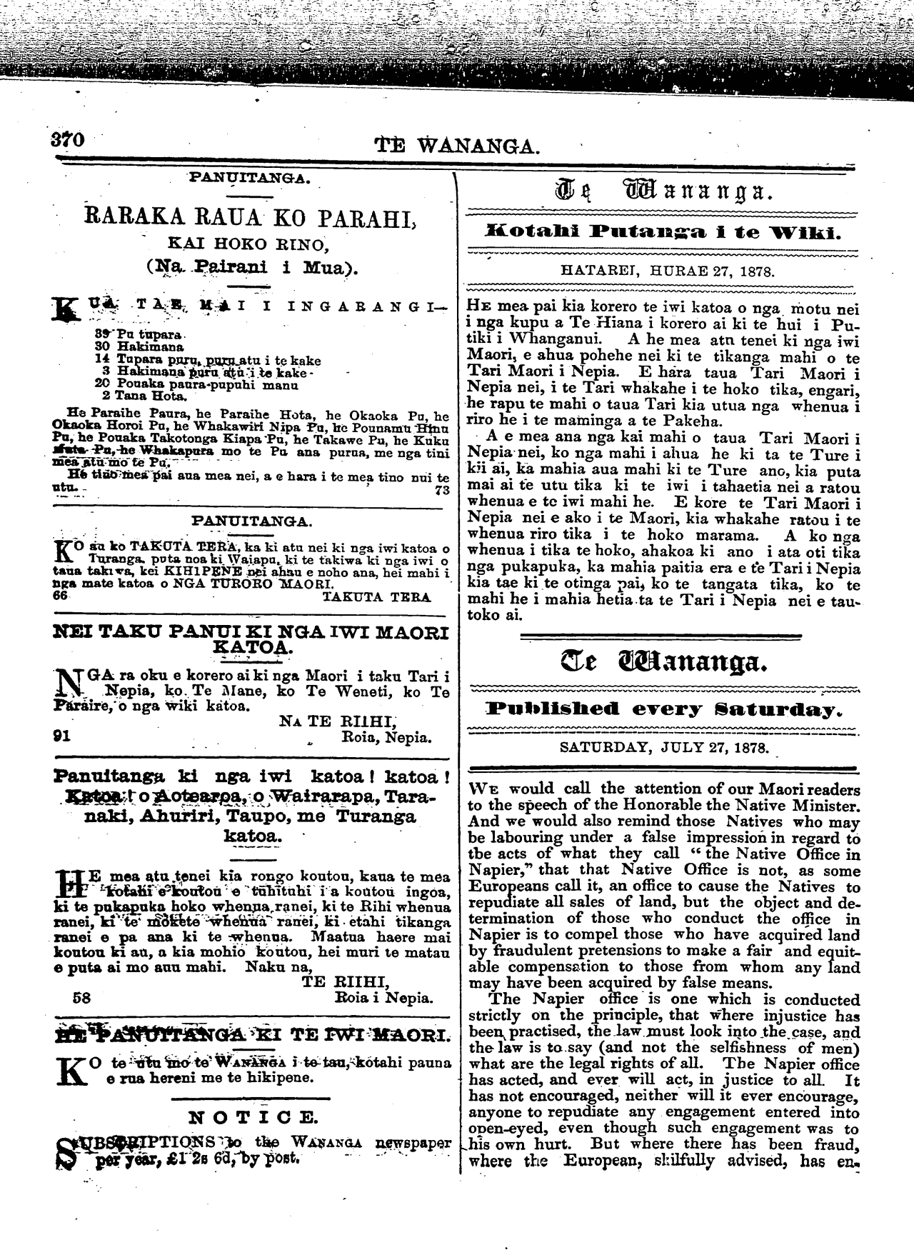 Te Wananga 1874-1878: Volume 5, Number 30. 27 July 1878 |