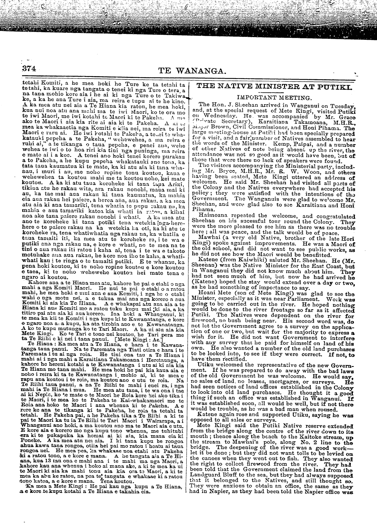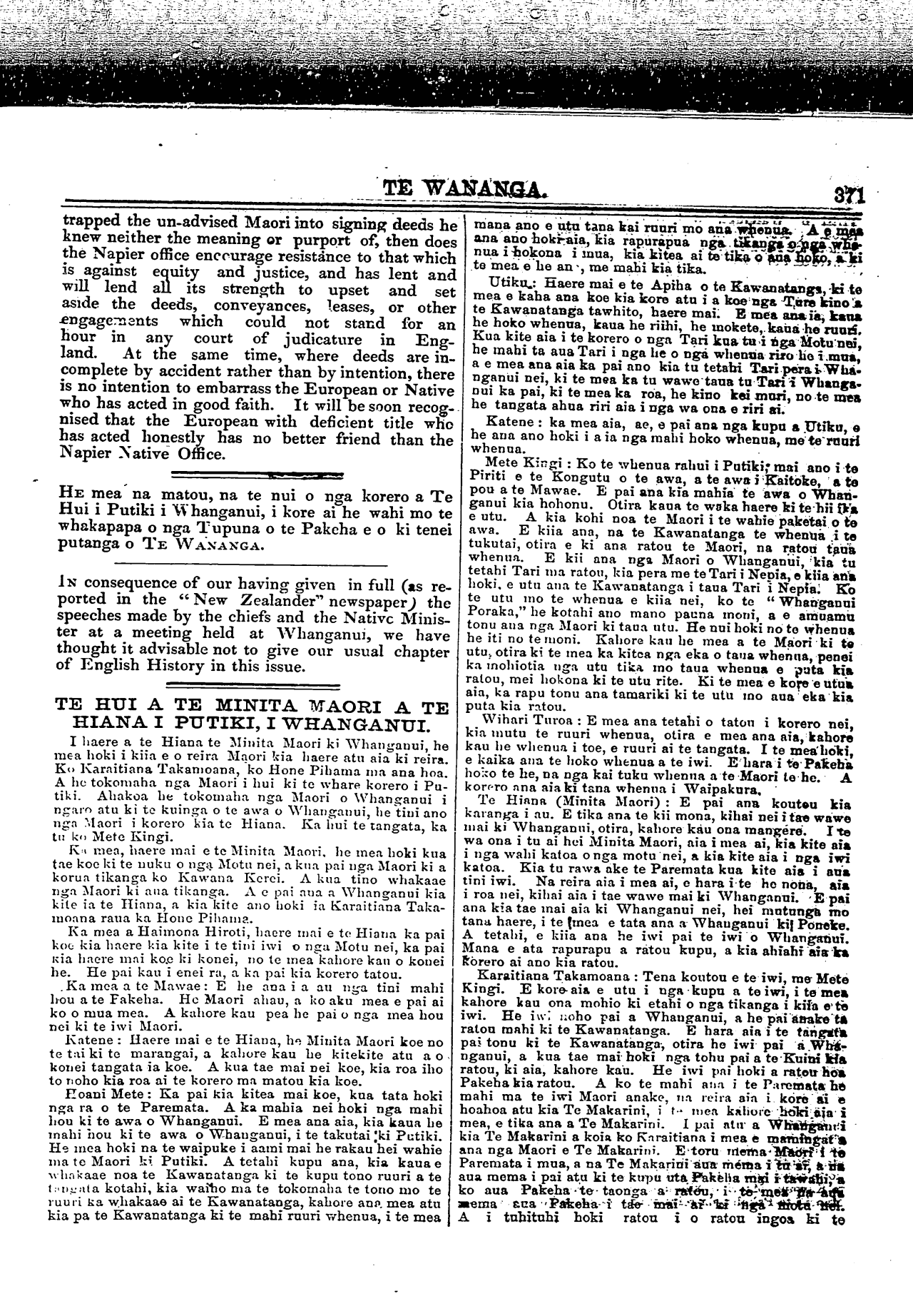 tiki i Whanganui. A he mea atu tenei ki nga iwi