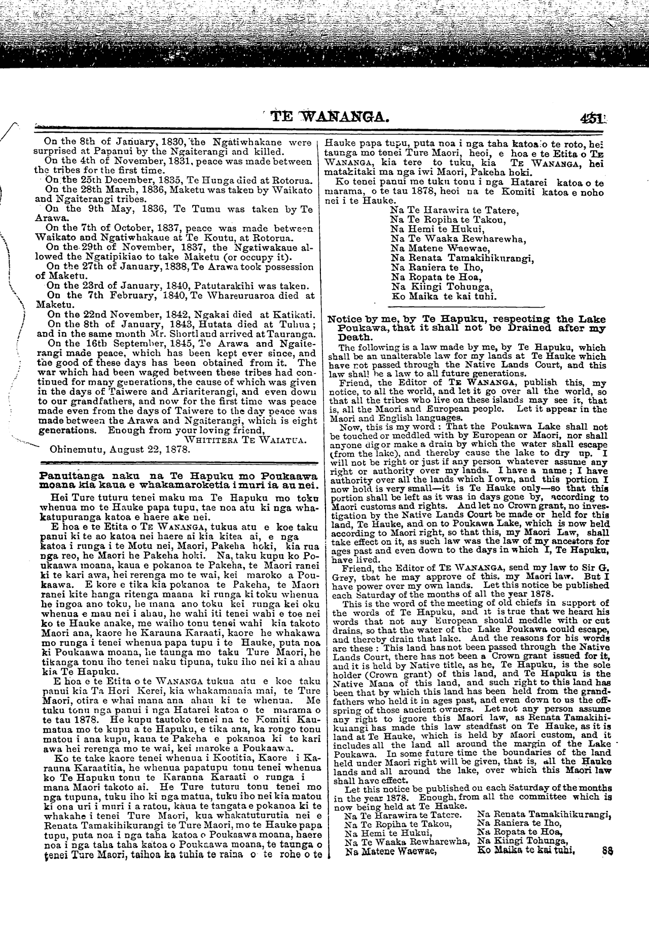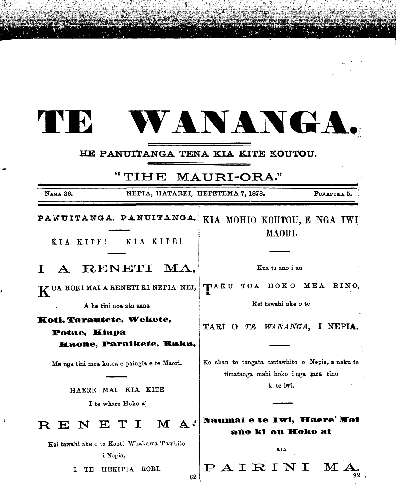 NAMA 36. NEPIA, HATAREI, HEPETEMA 7, 1878. PUKAPUKA 5'