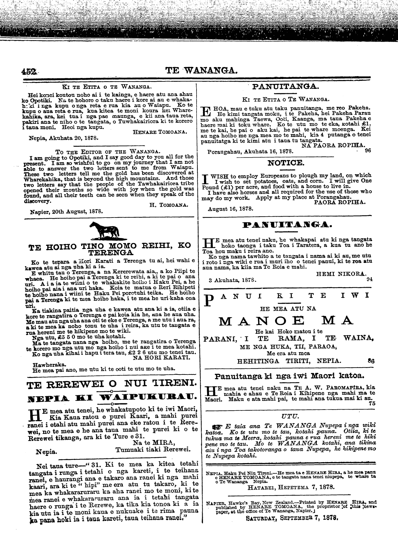 NAPIER, Hawke's Bay, New Zealand.—Printed by HENARE HIRA, and
