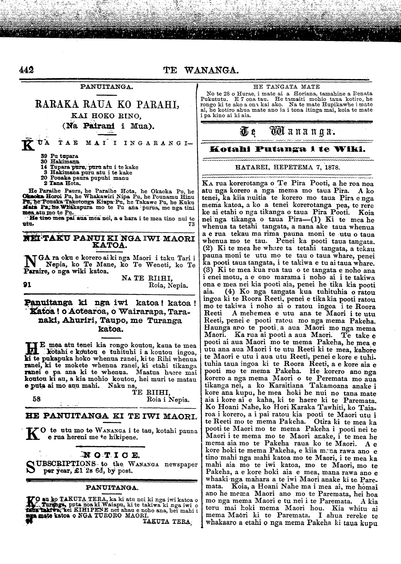 katoa. Ko te utu mo te tau, kotahi pauna. Otiia, ki te
