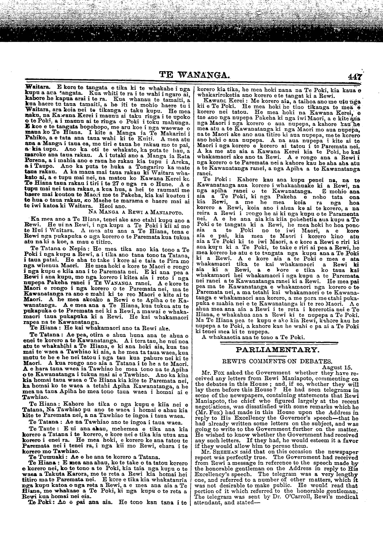 HE PANUITANGA KI TE IWI MAORI,