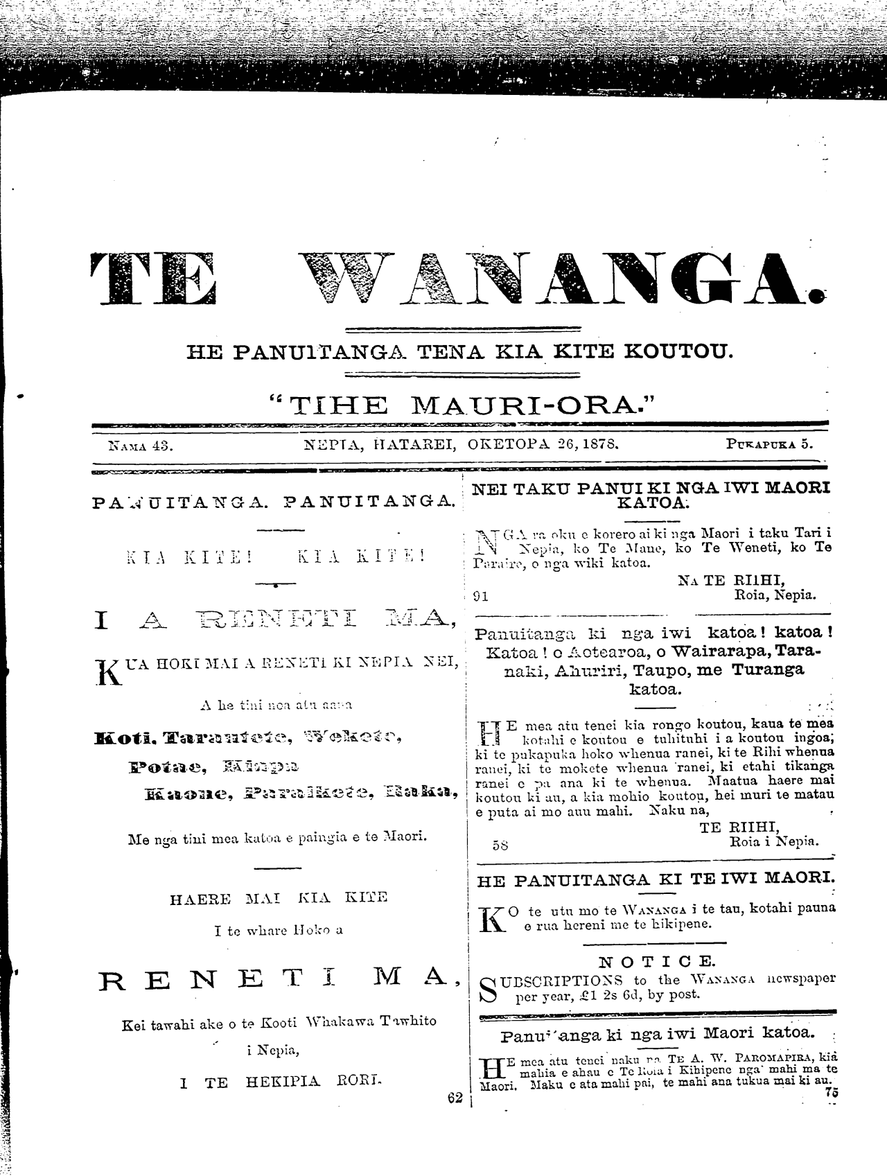 NAMA 43. NEPIA, HATAREI, OKETOPA 26, 1S7S. PUKAPUKA 5.