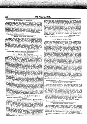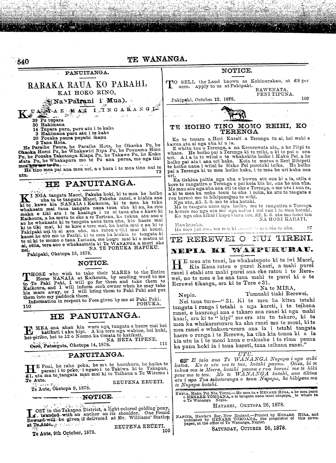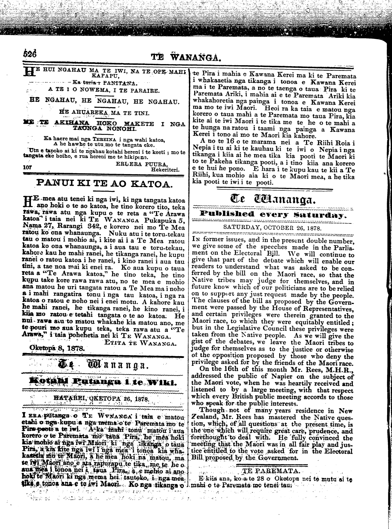 Te Wananga 1874-1878: Volume 5, Number 43. 26 October 1878 |