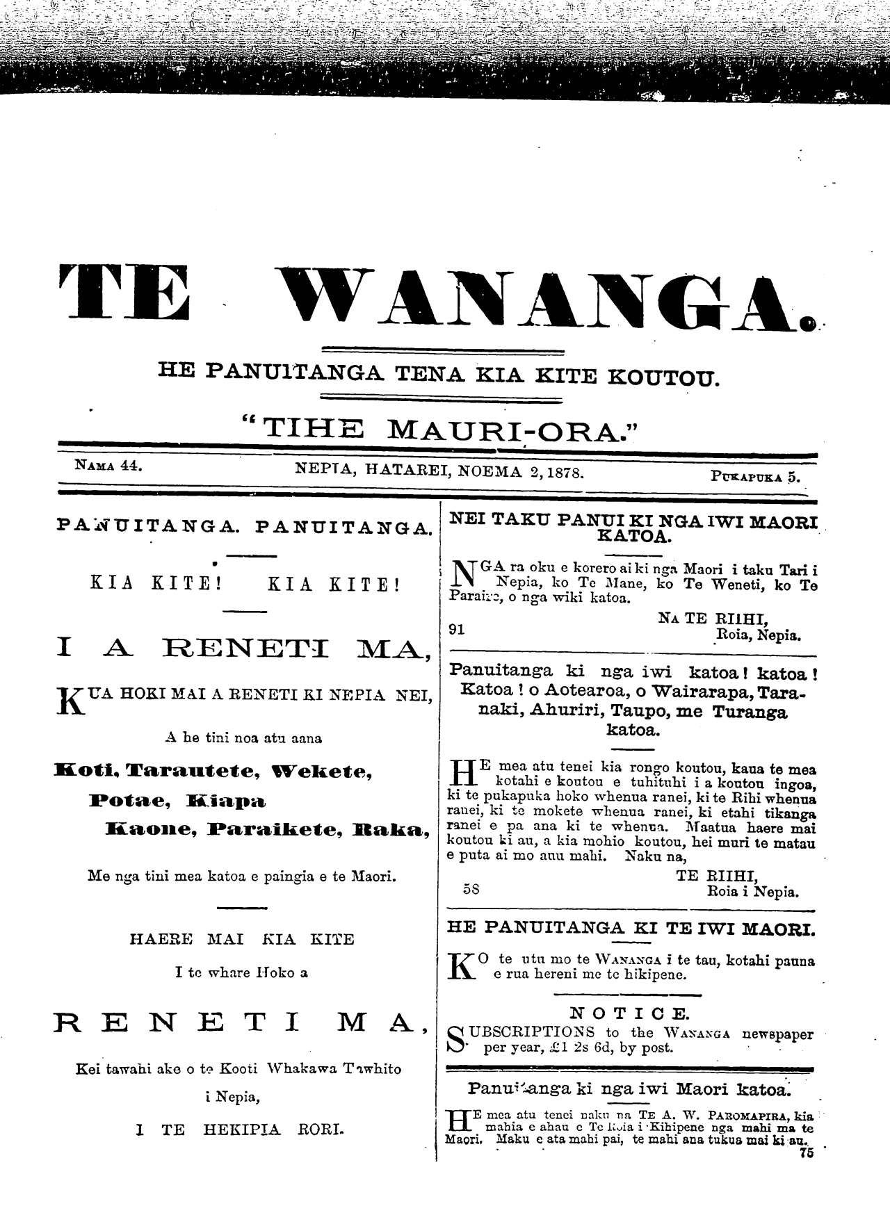 NAMA 44. NEPIA, HATAREI, NOEMA 2,1878. PUKAPUKA 5.