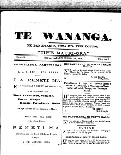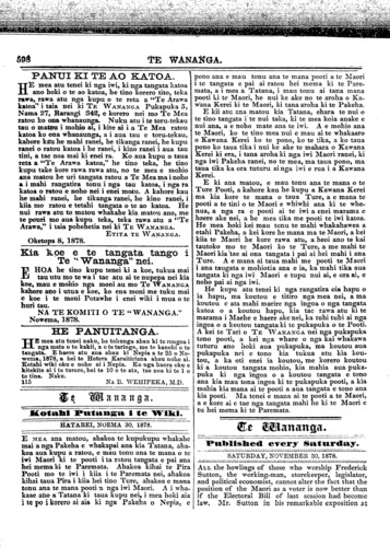 Te Wananga 1874-1878: Volume 5, Number 48. 30 November 1878 |
