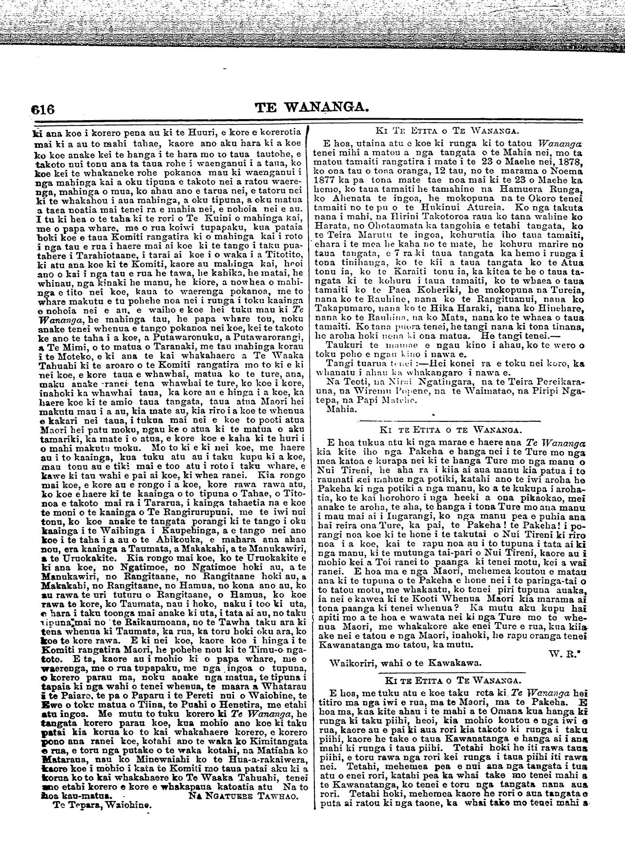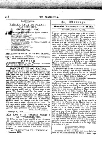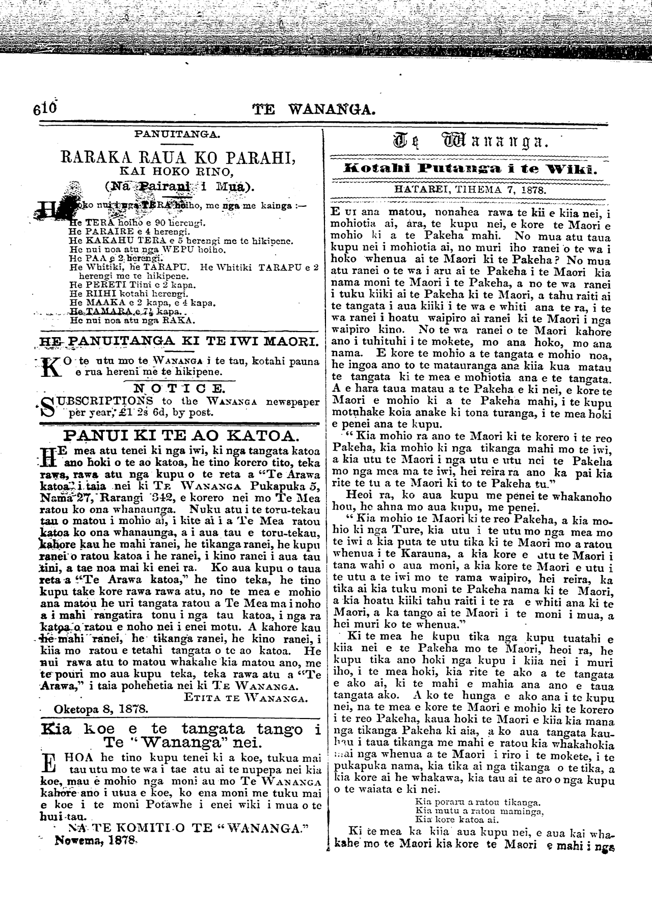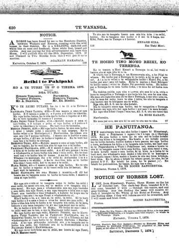 KO  A  TE  TUREI   TE  27  O TIHEMA    1878.