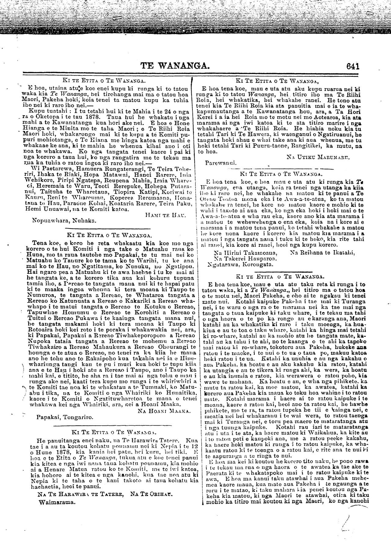 te tau 1878. He kupu tautoko tenei na te Komiti Kau-