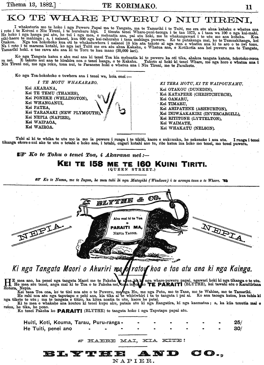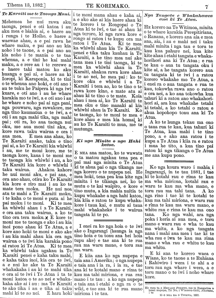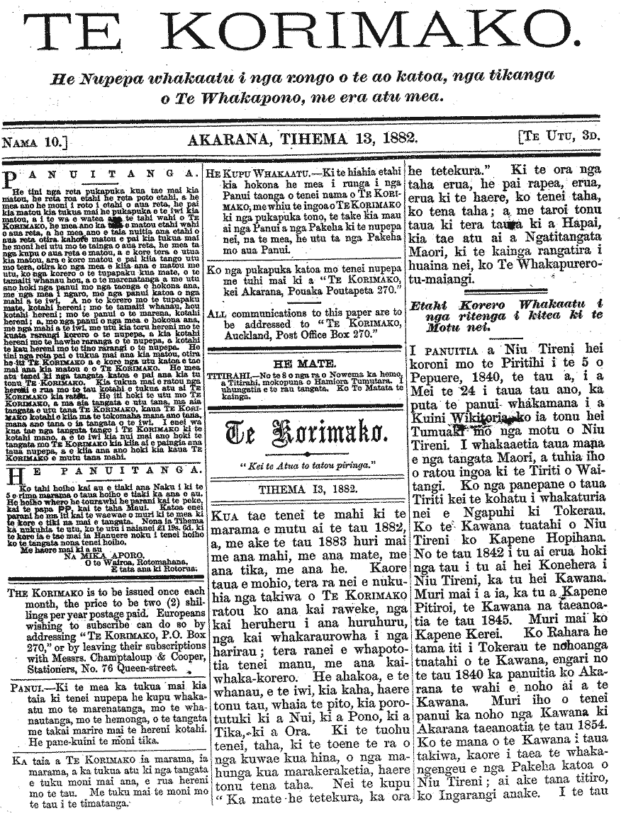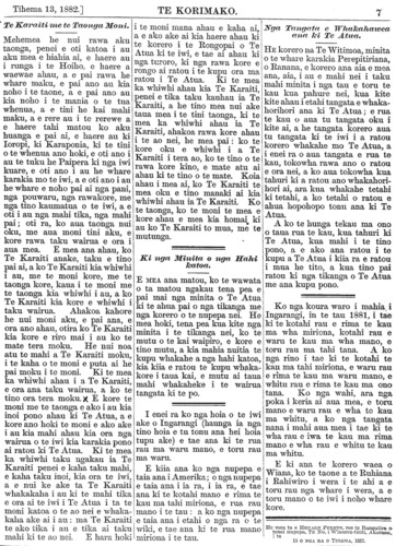 Te Korimako 1882-1890: Volume 0, Number 10. 13 December 1882 |