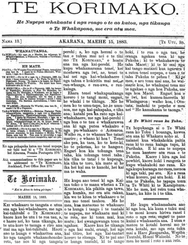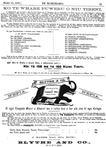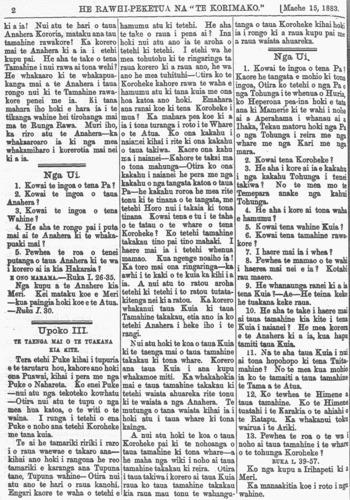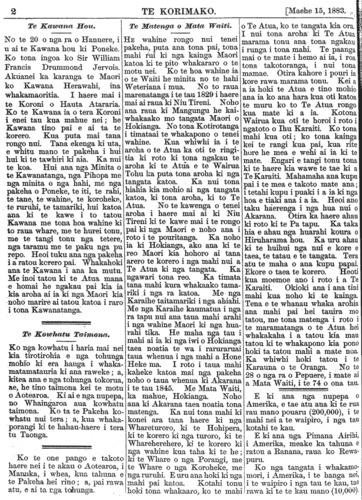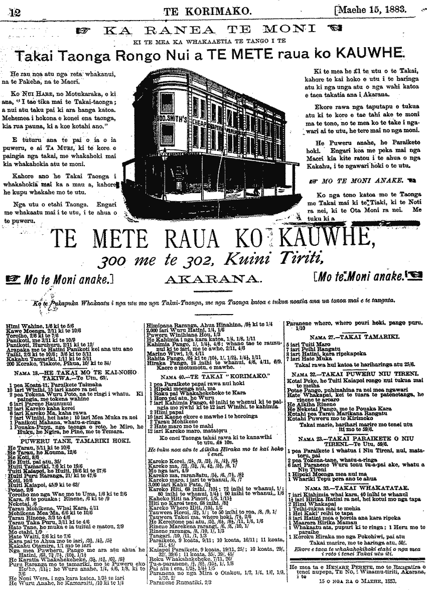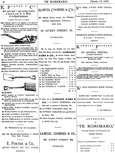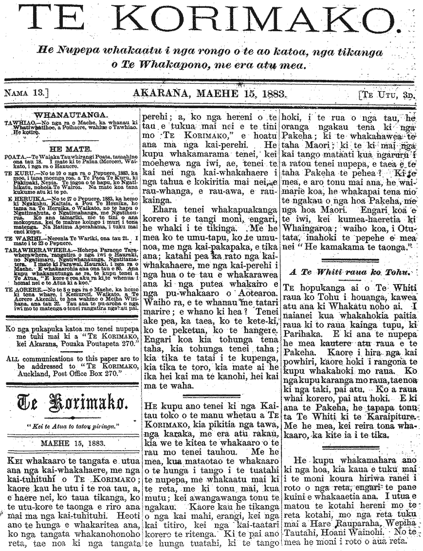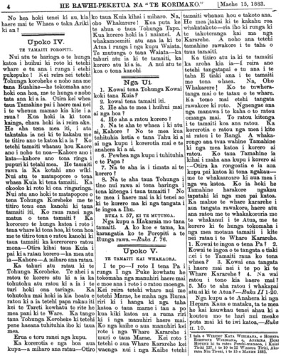 Te Korimako 1882-1890: Volume 0, Number 13. 15 March 1883 |