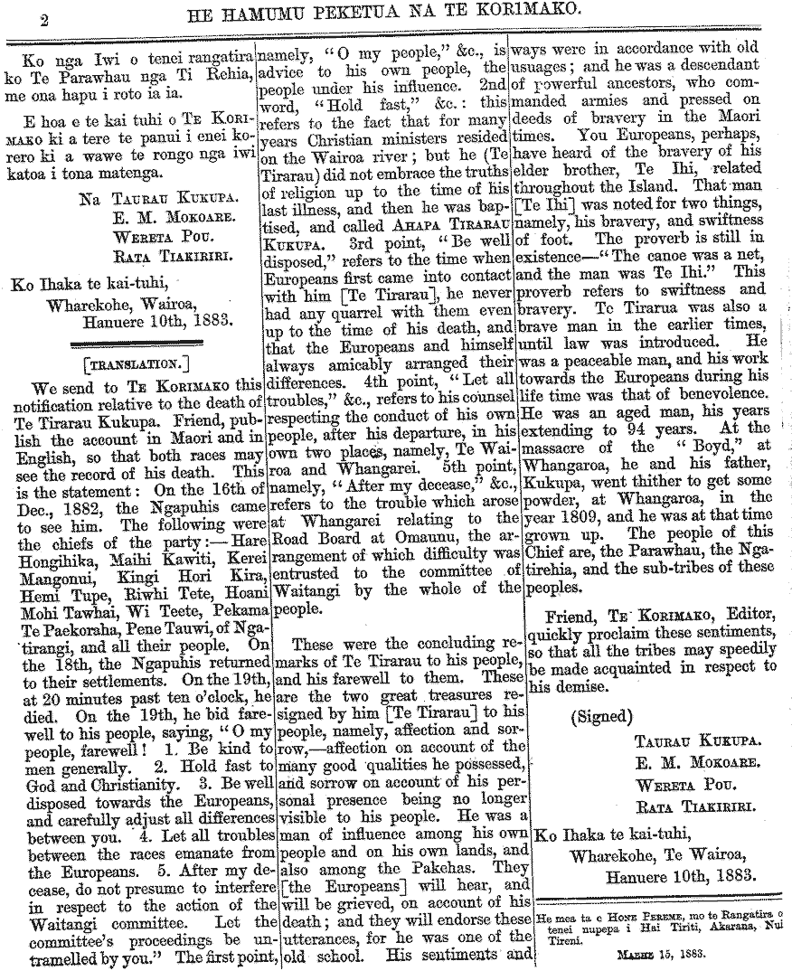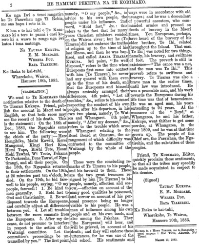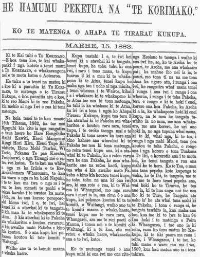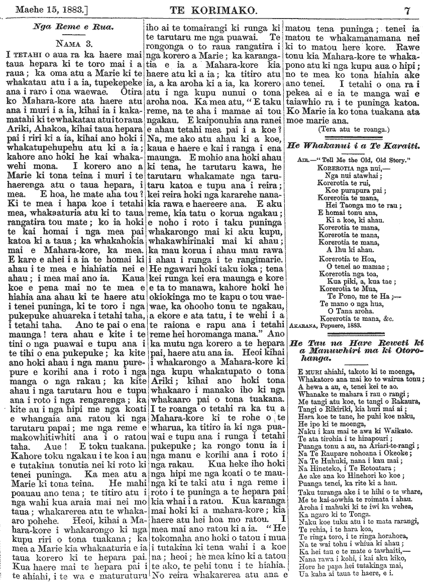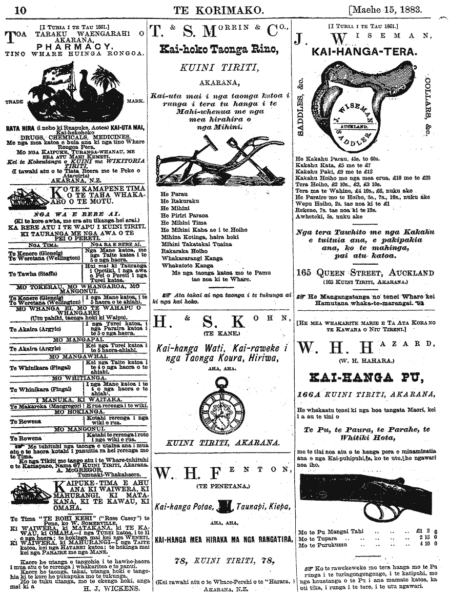 Te Korimako 1882-1890: Volume 0, Number 13. 15 March 1883 |
