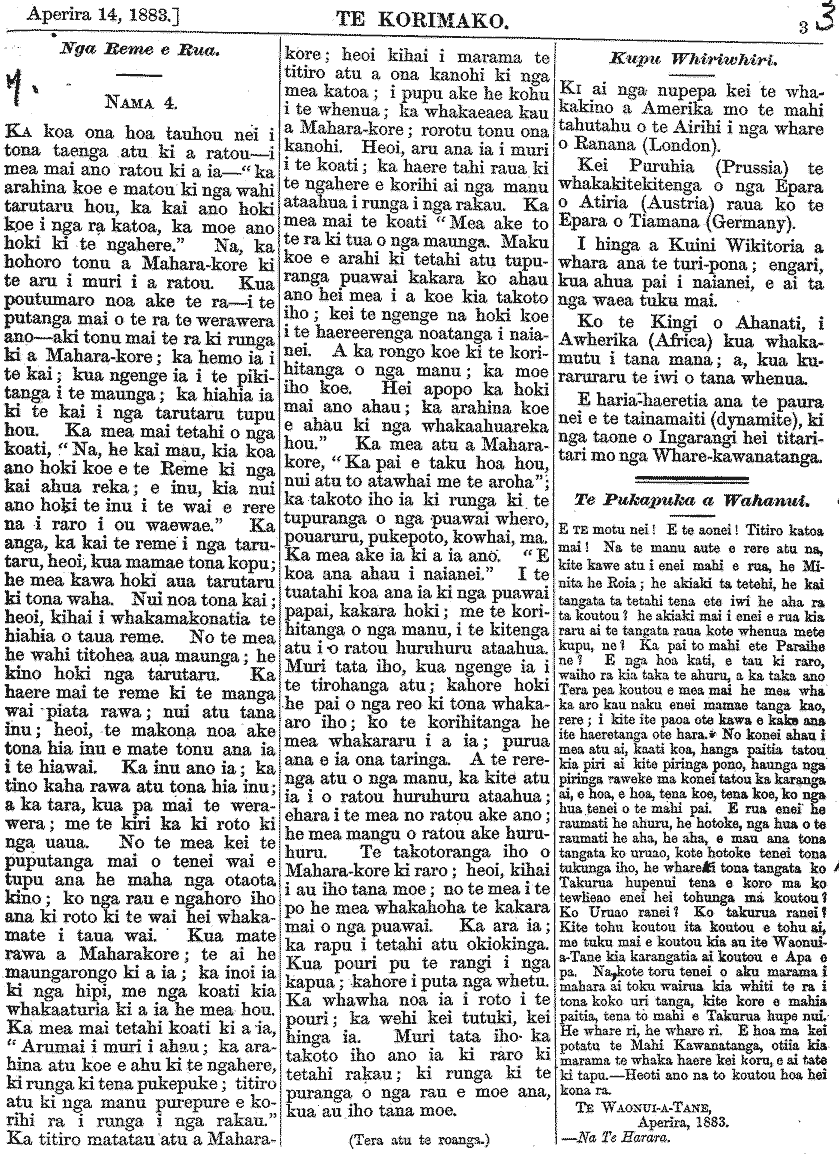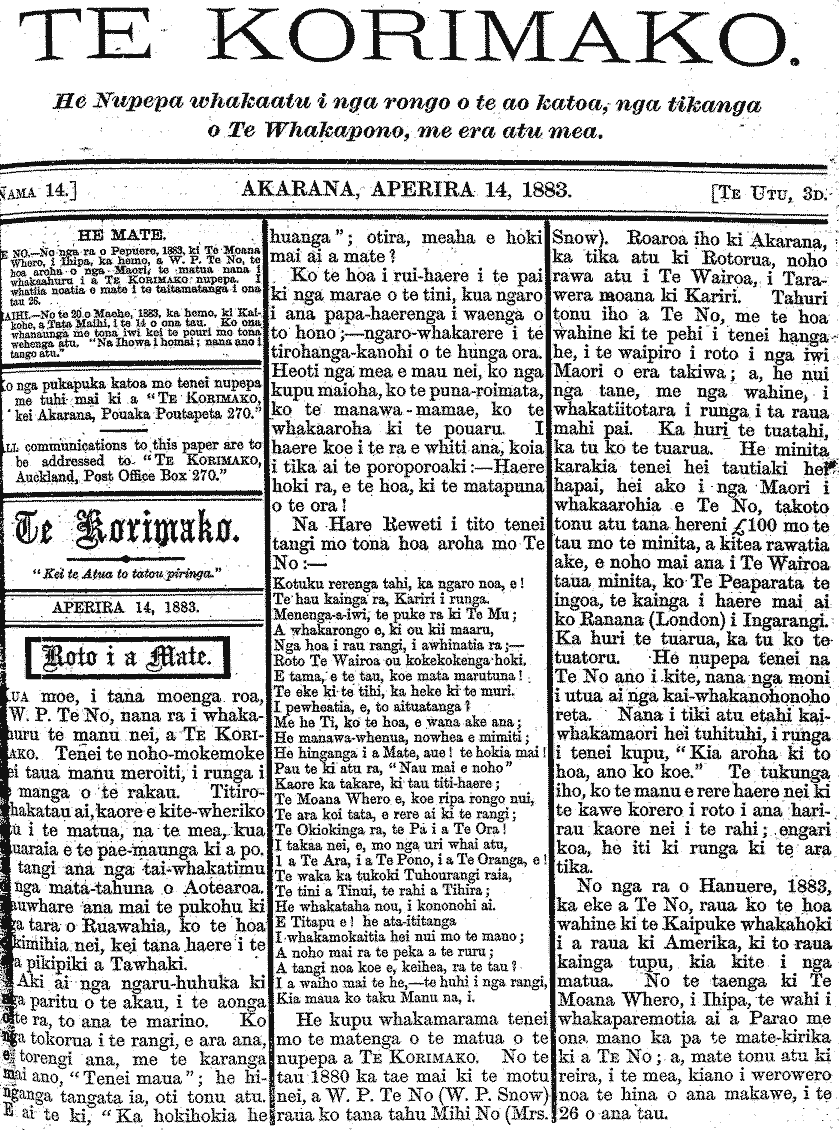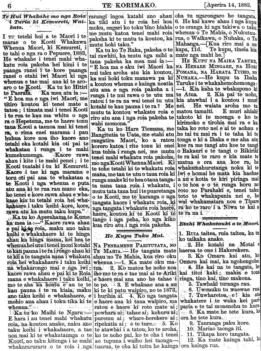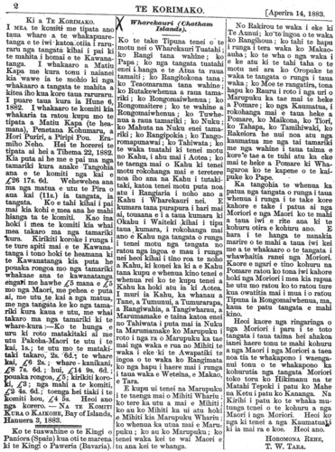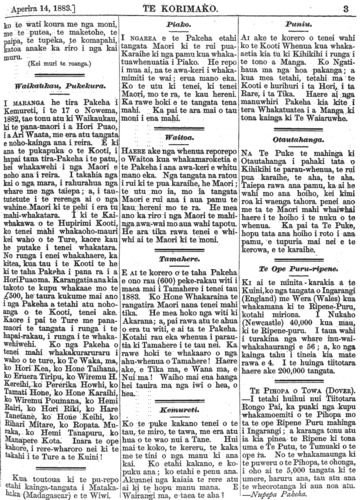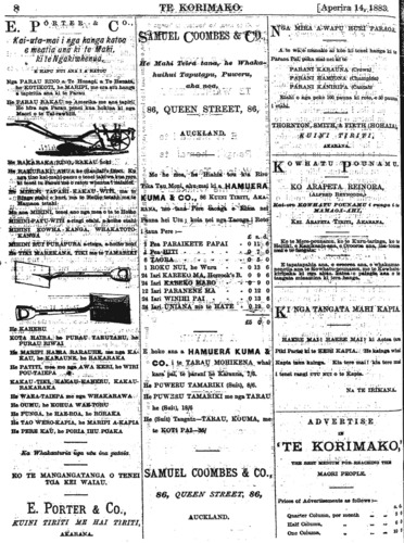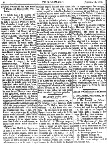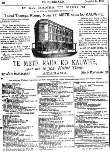 Te Korimako 1882-1890: Volume 0, Number 14. 14 April 1883 |