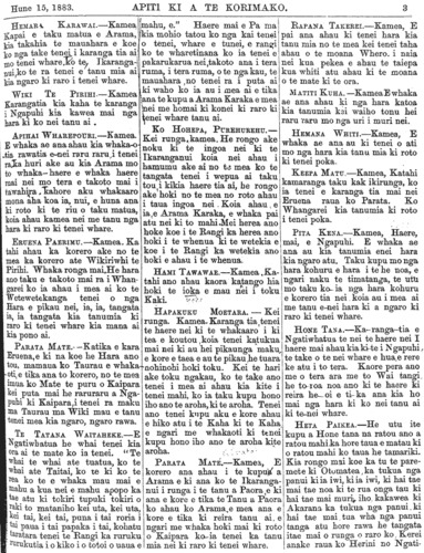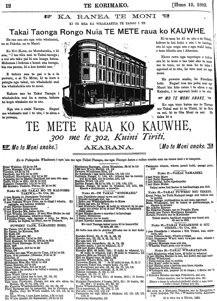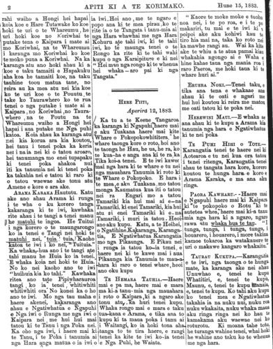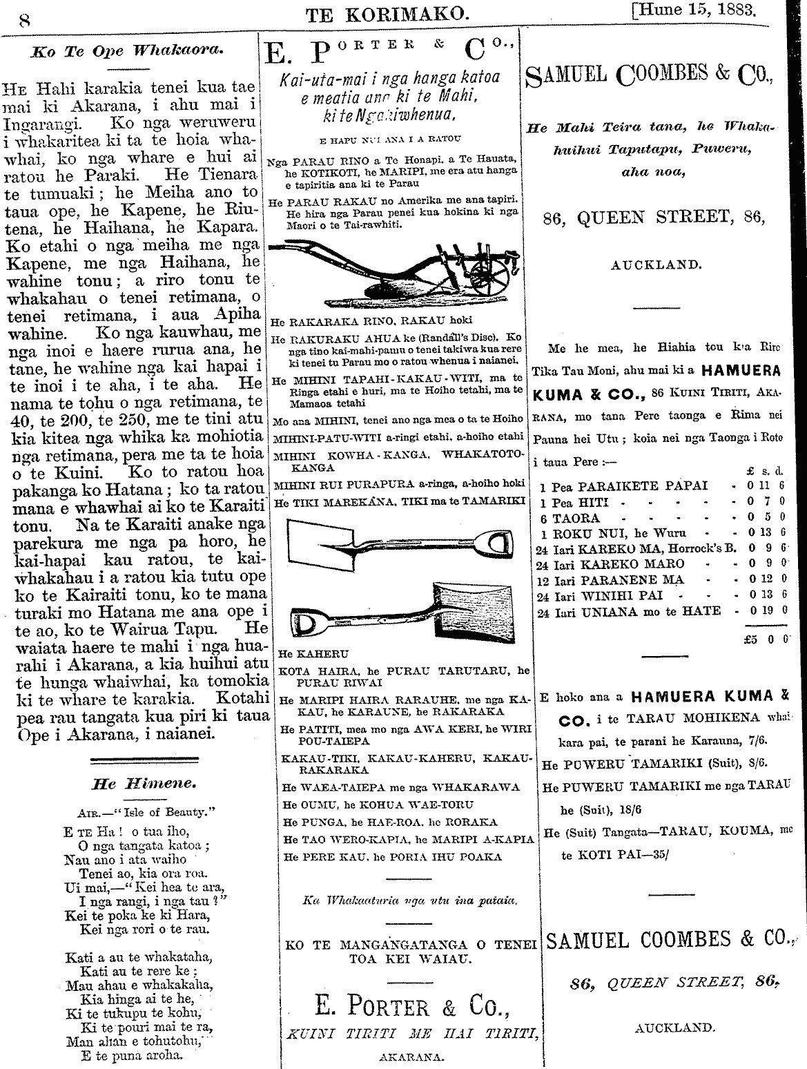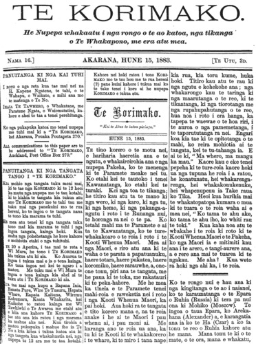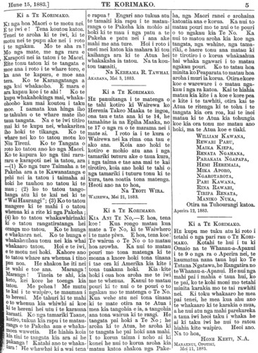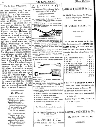 Te Korimako 1882-1890: Volume 0, Number 16. 15 June 1883 |