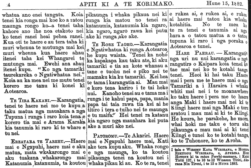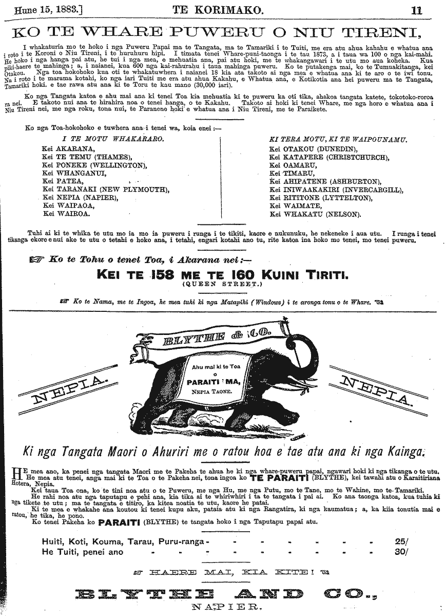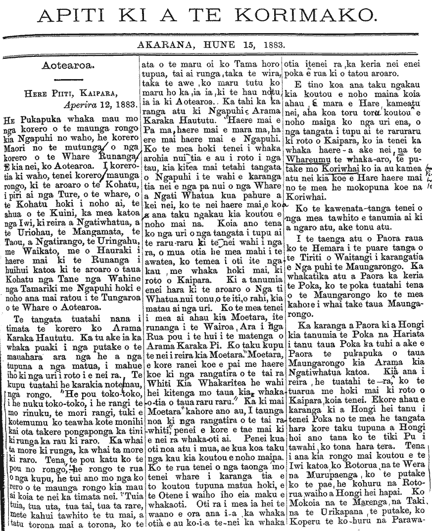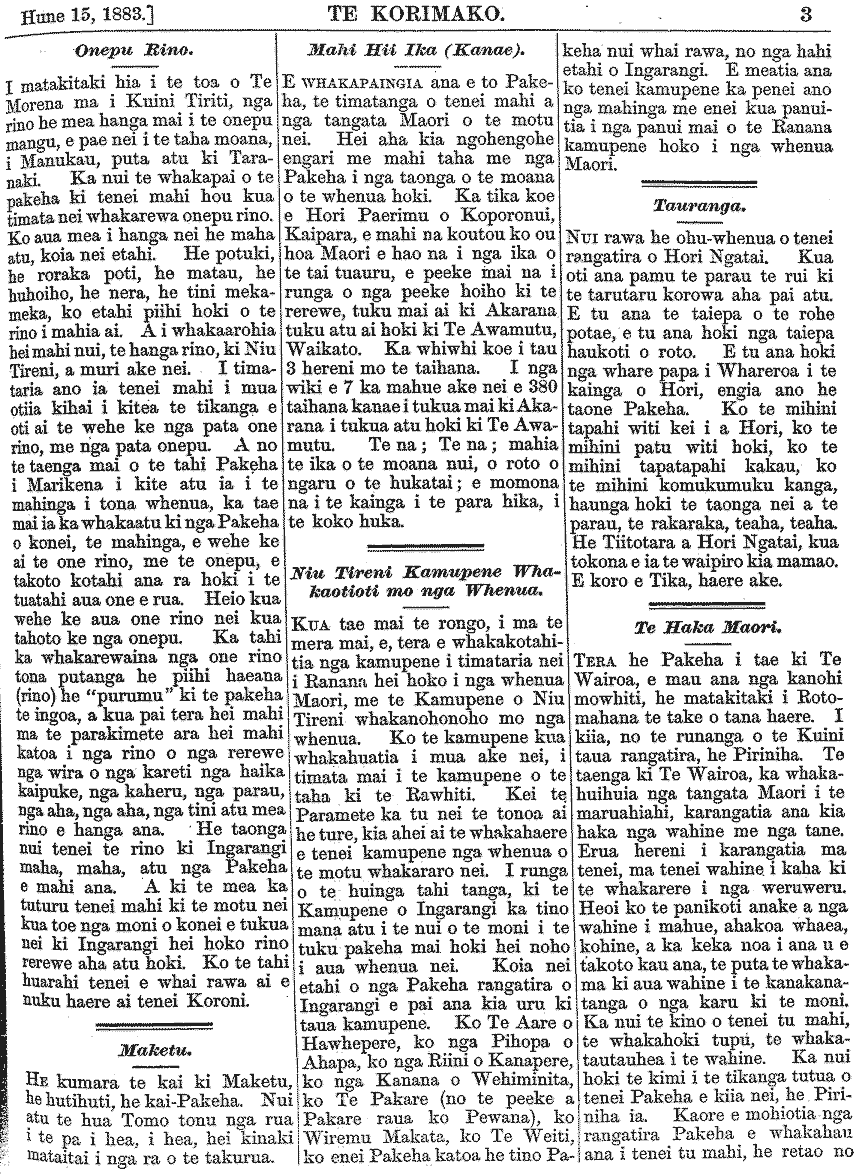 Te Korimako 1882-1890: Volume 0, Number 16. 15 June 1883 |