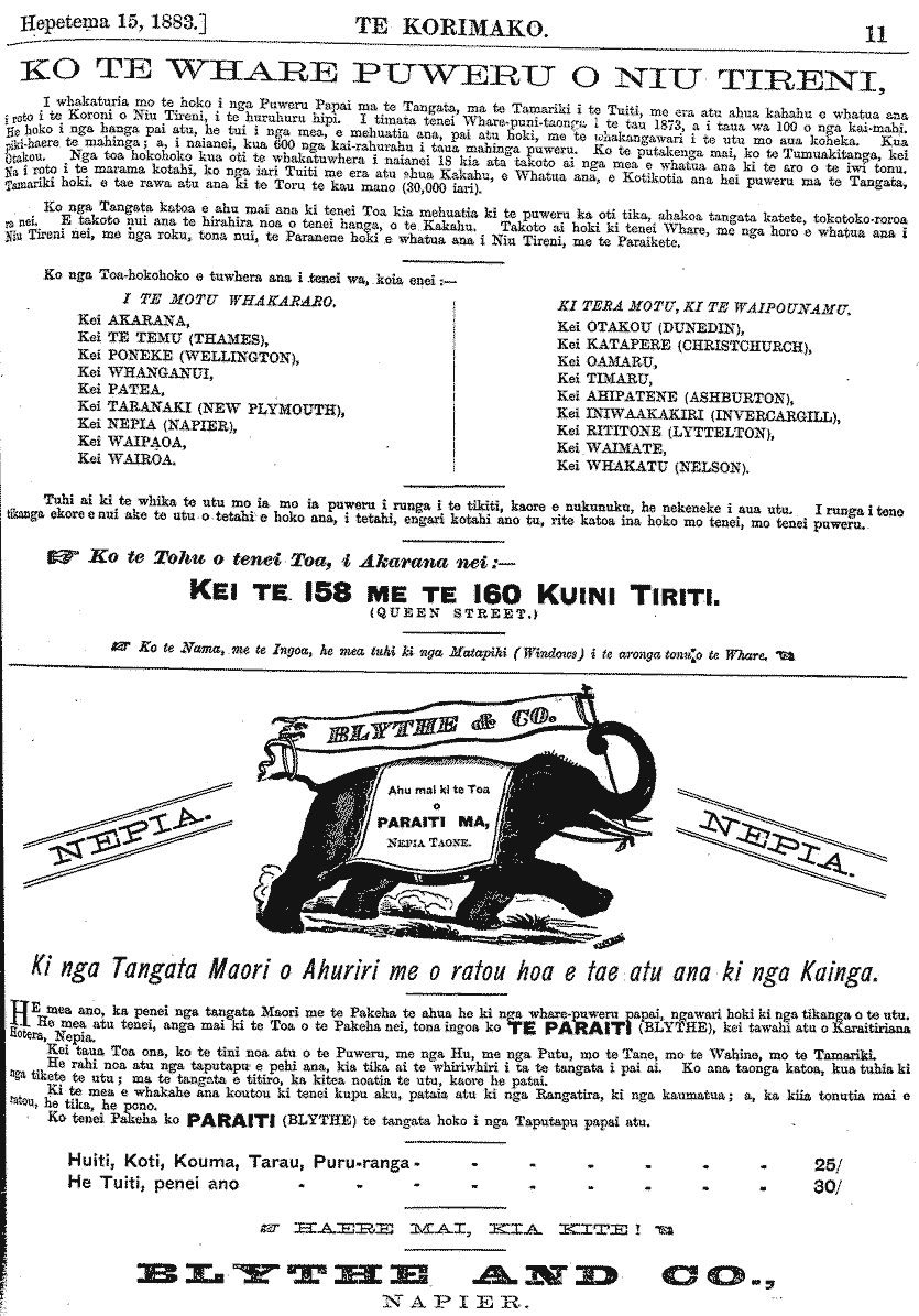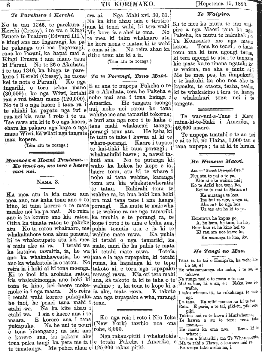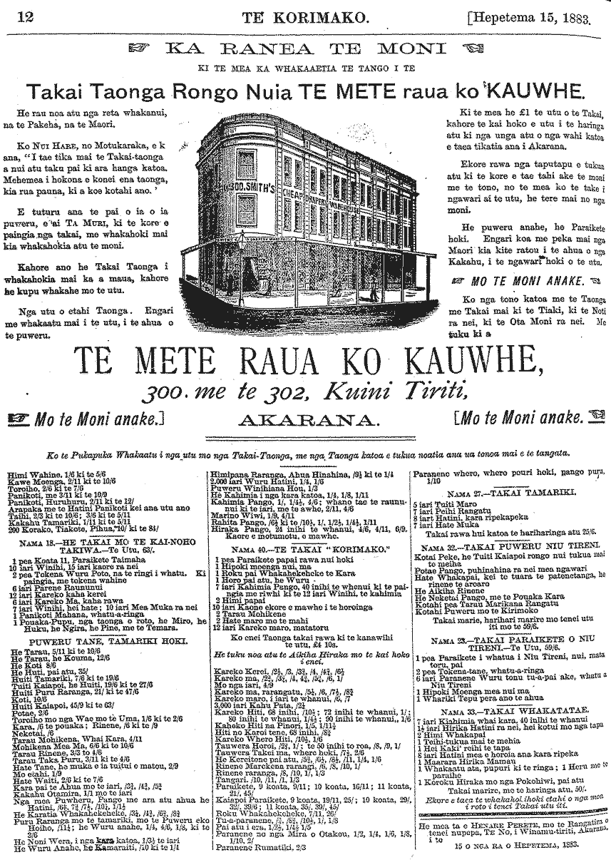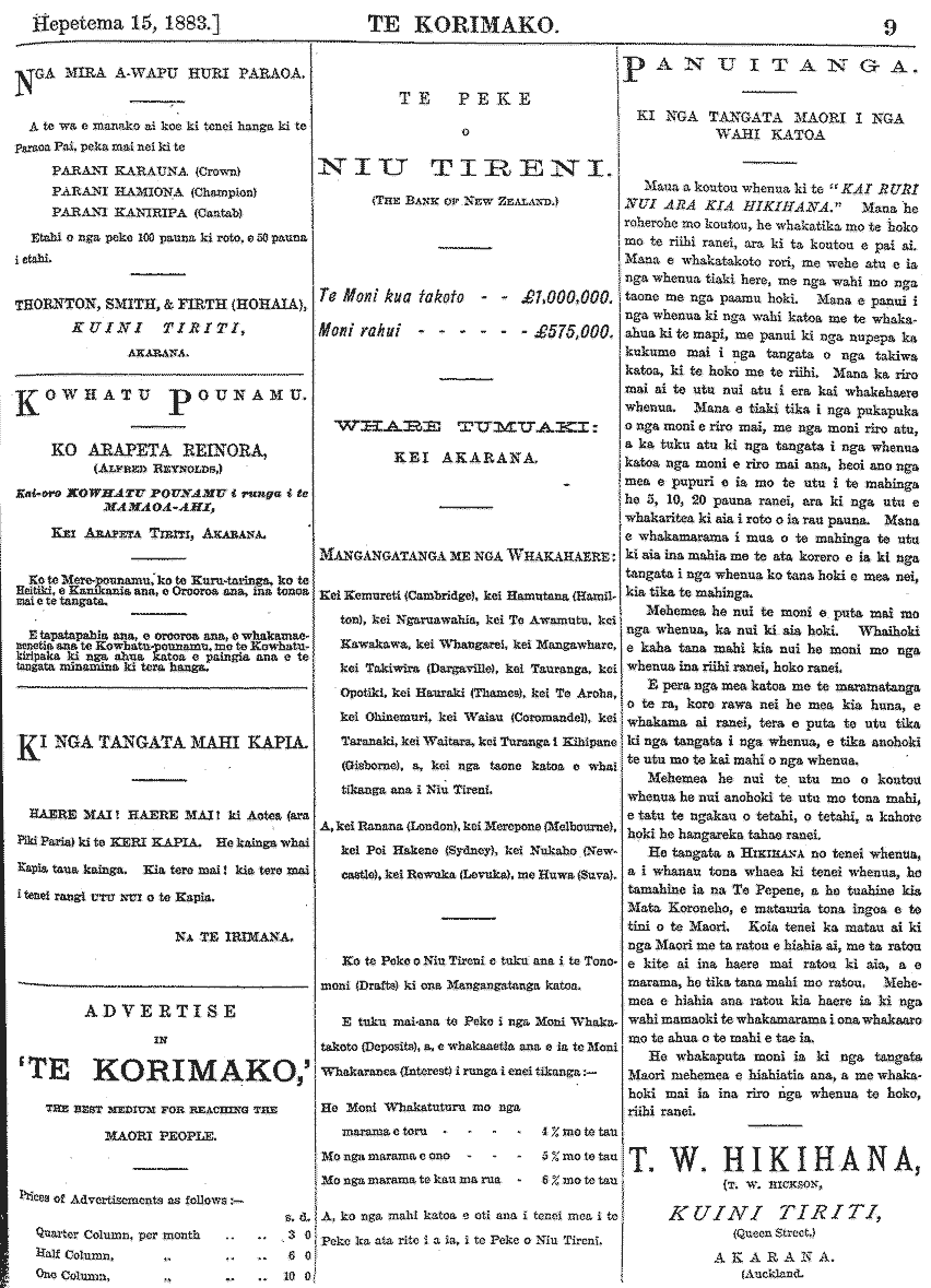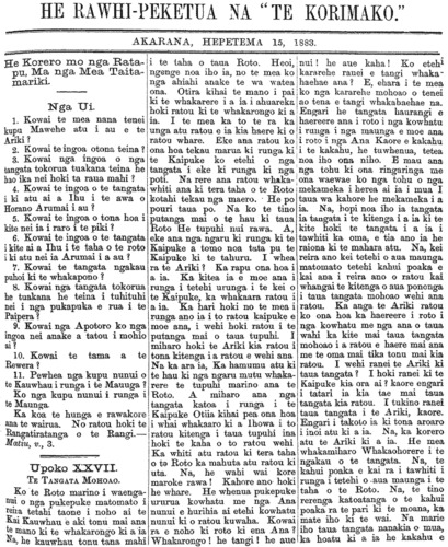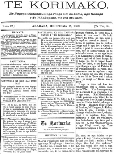 Te Korimako 1882-1890: Volume 0, Number 19. 15 September 1883 |