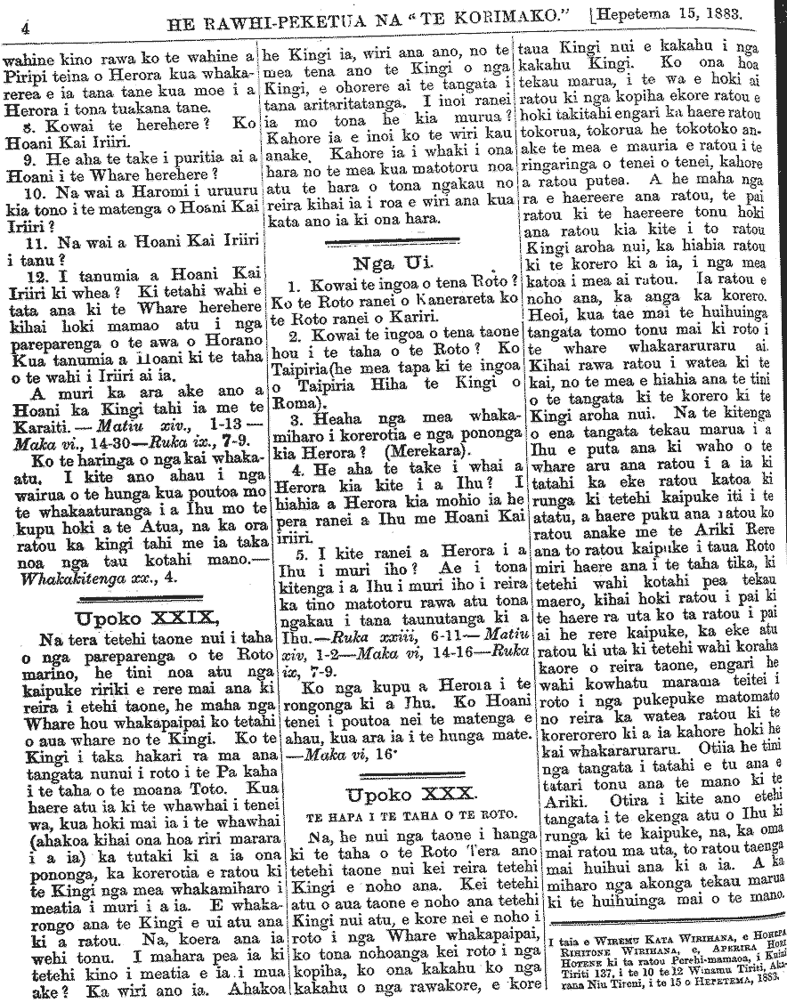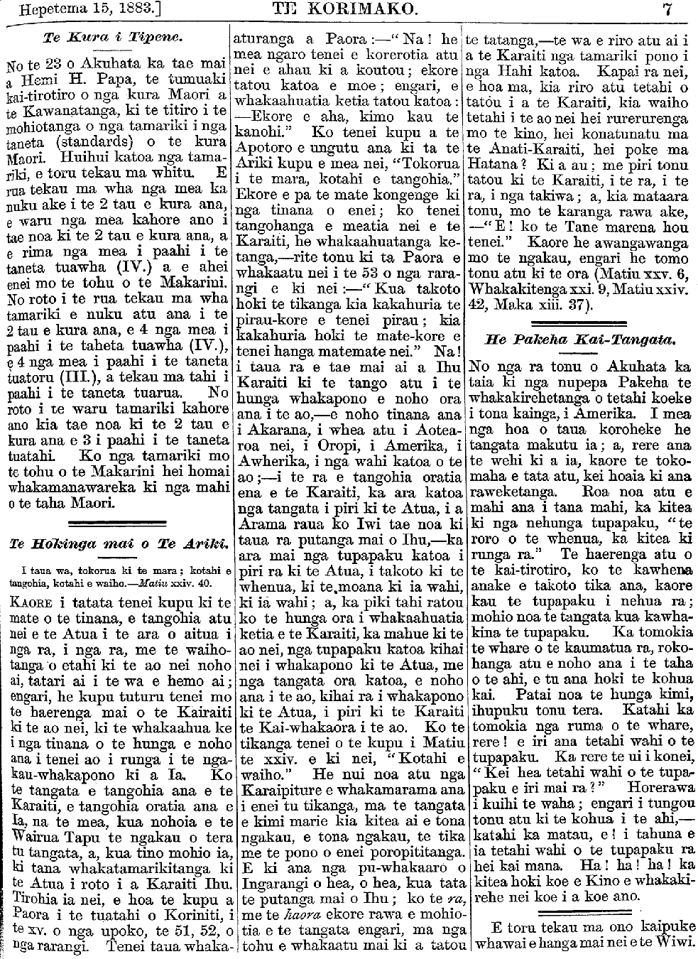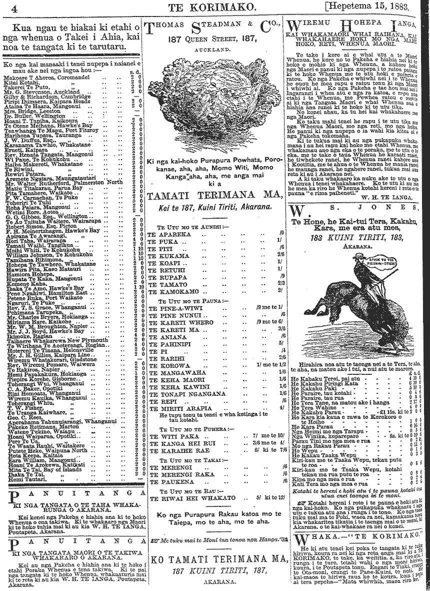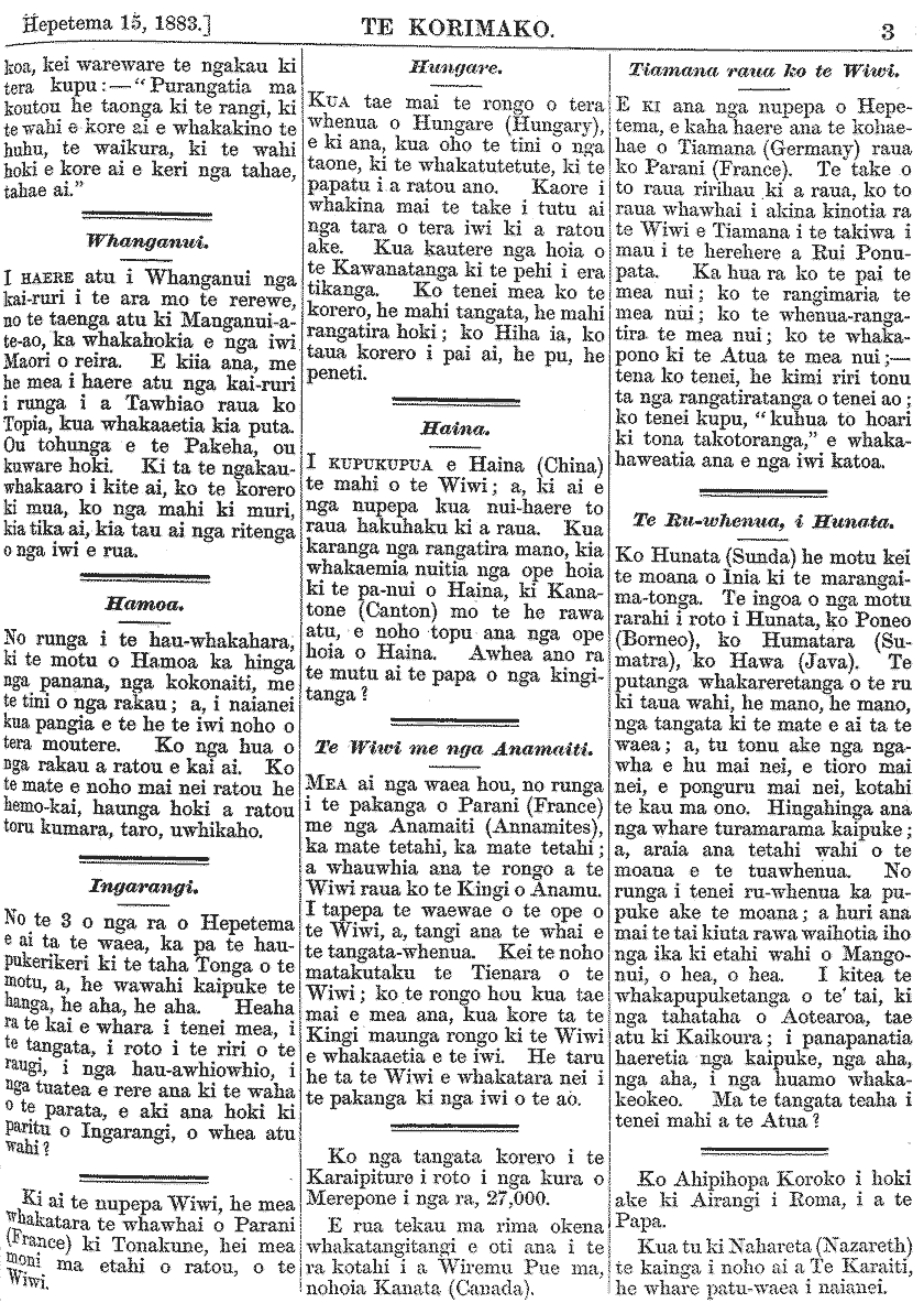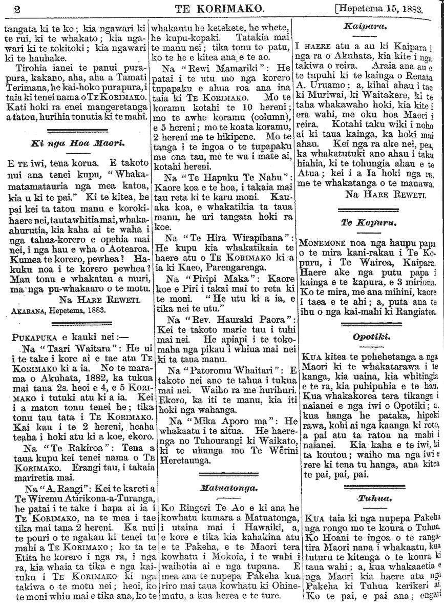 Te Korimako 1882-1890: Volume 0, Number 19. 15 September 1883 |