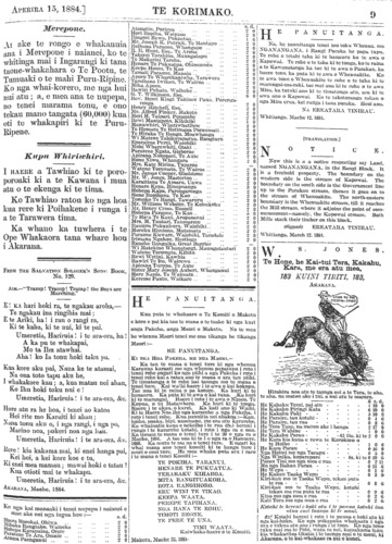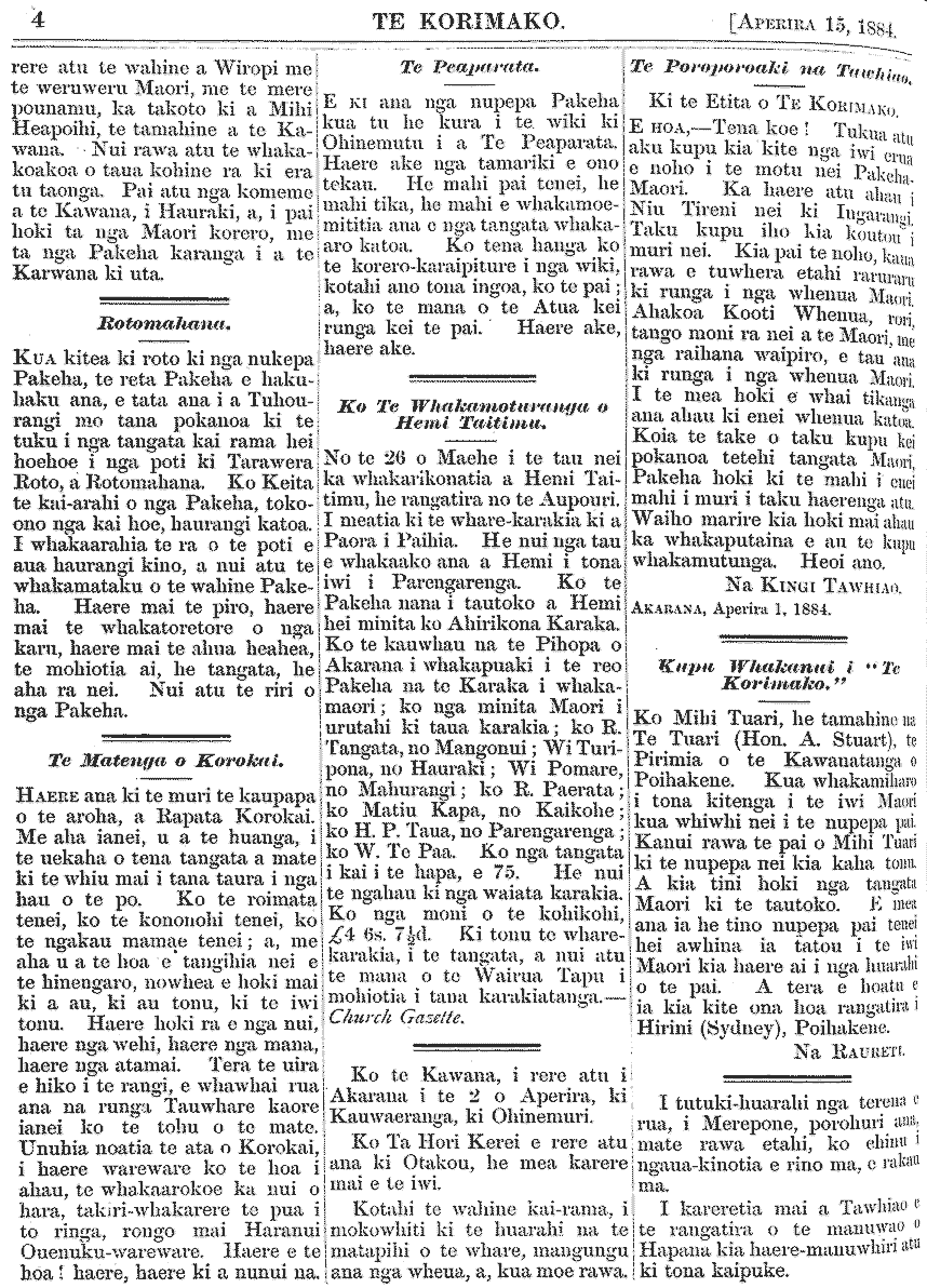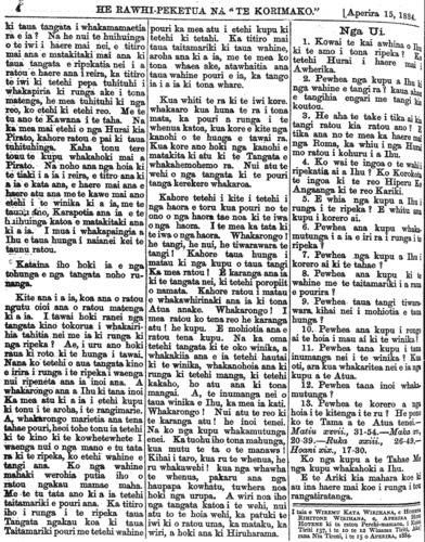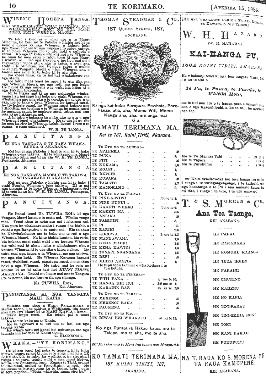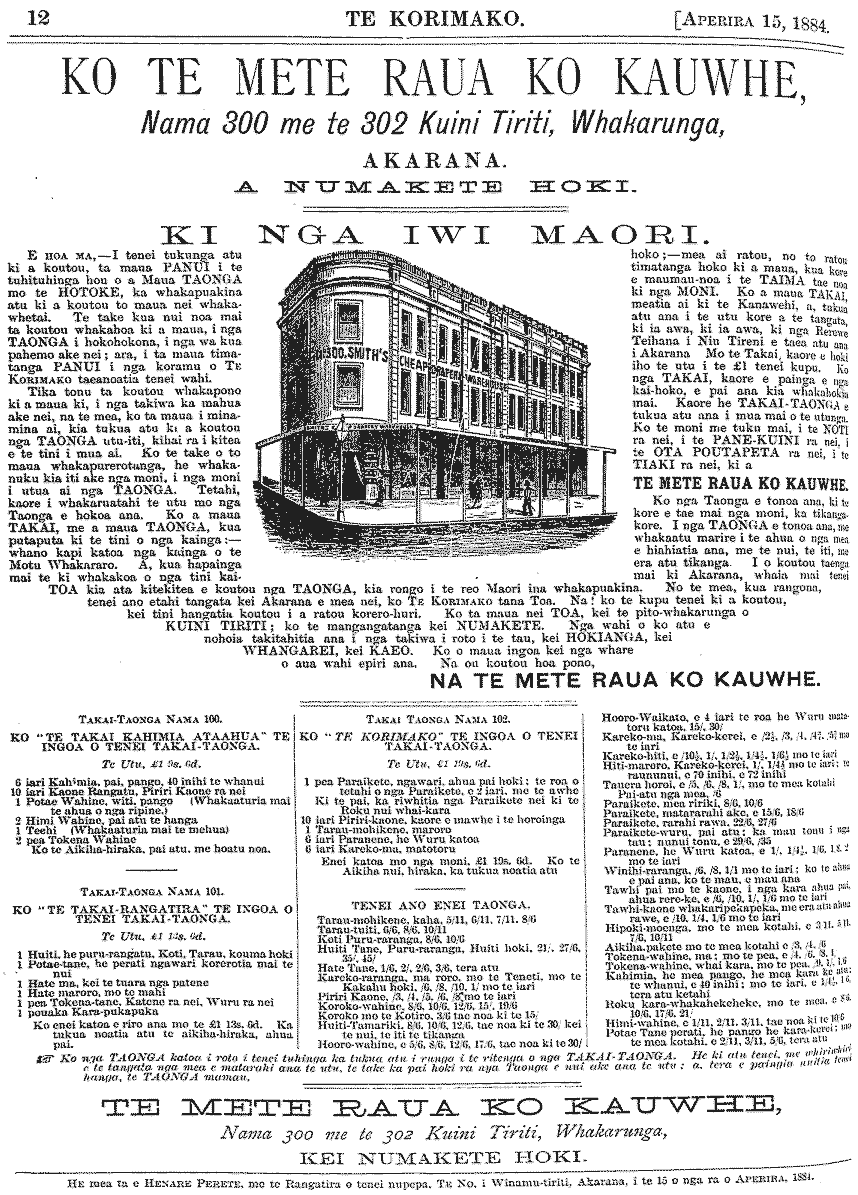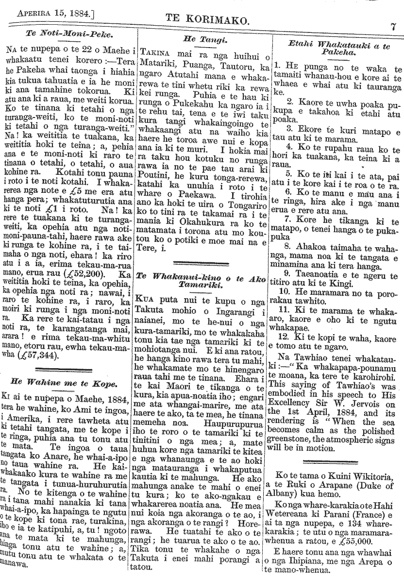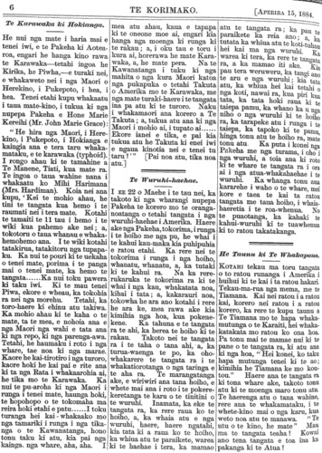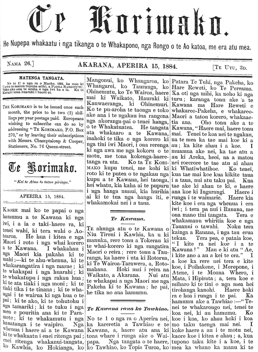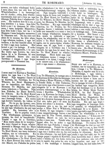 Te Korimako 1882-1890: Volume 0, Number 26. 15 April 1884 |