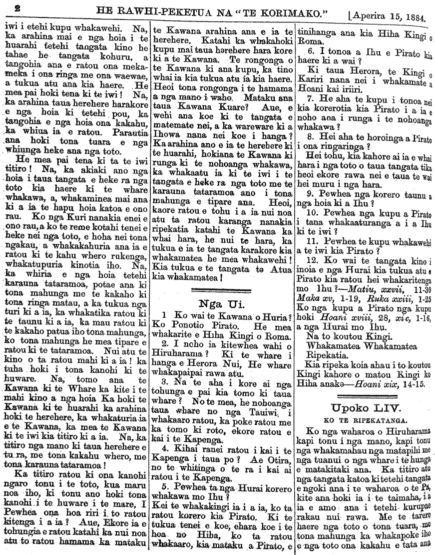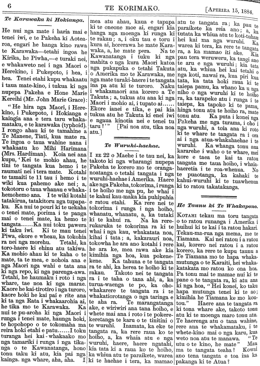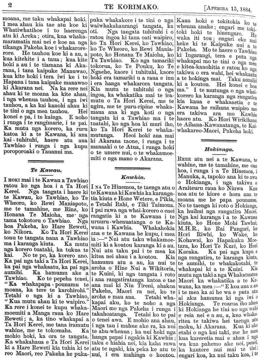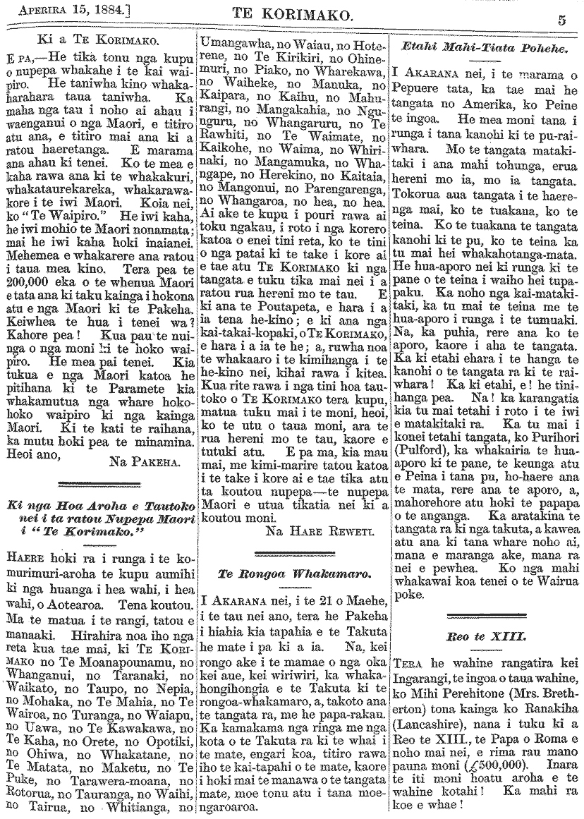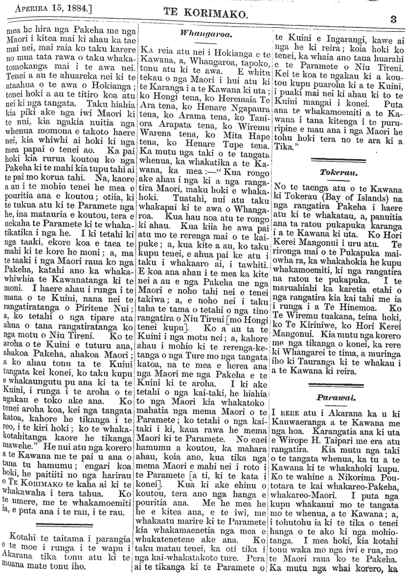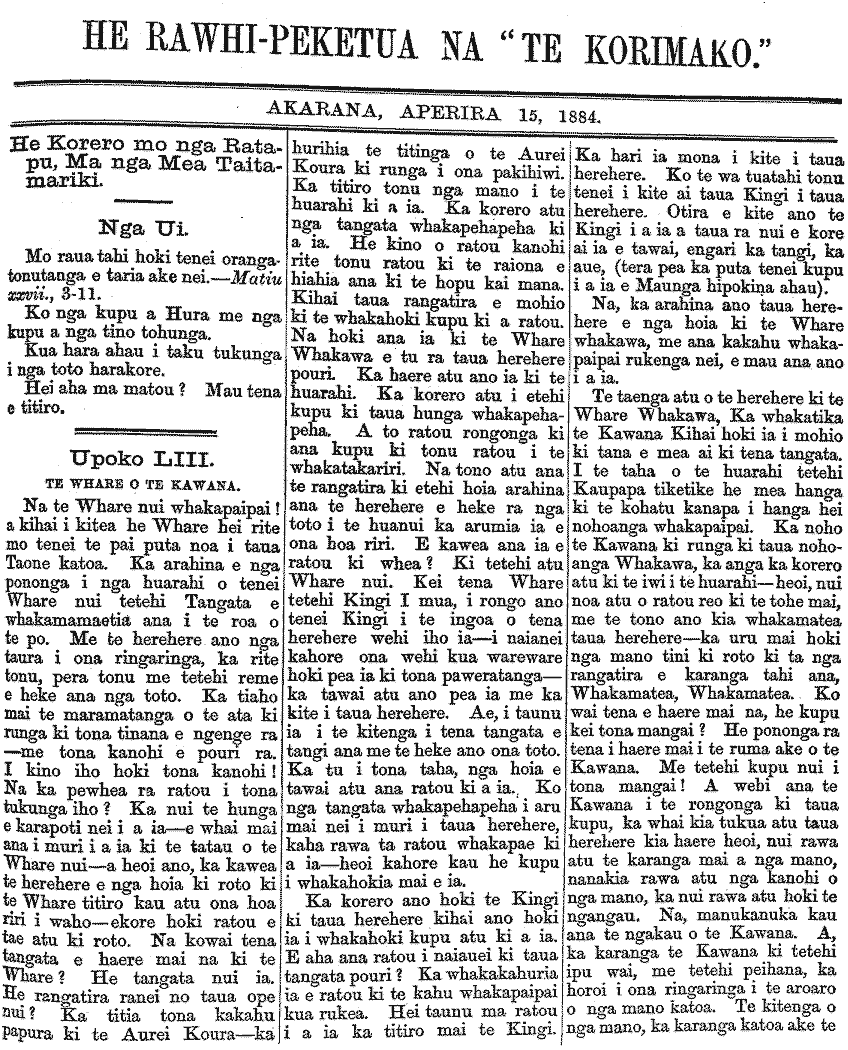 Te Korimako 1882-1890: Volume 0, Number 26. 15 April 1884 |