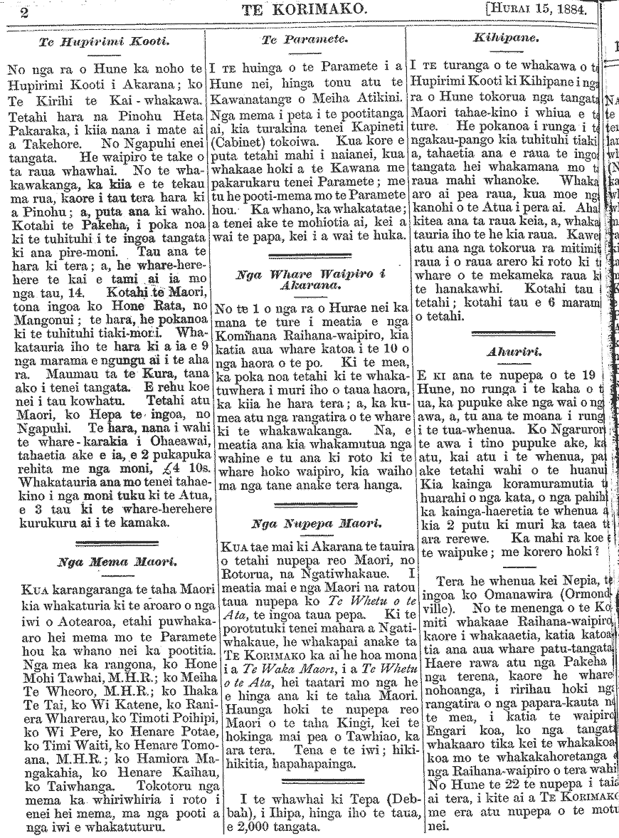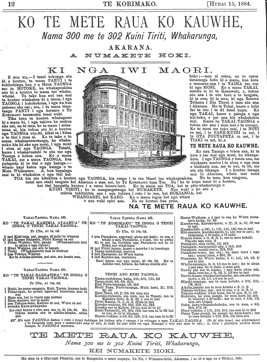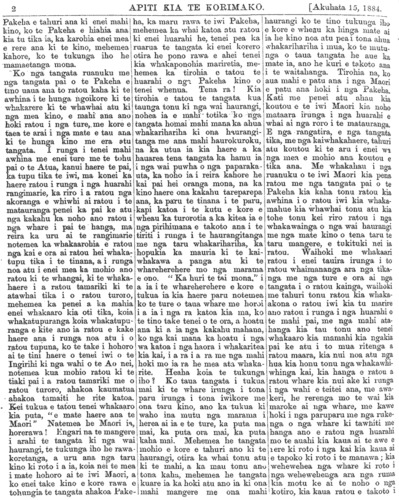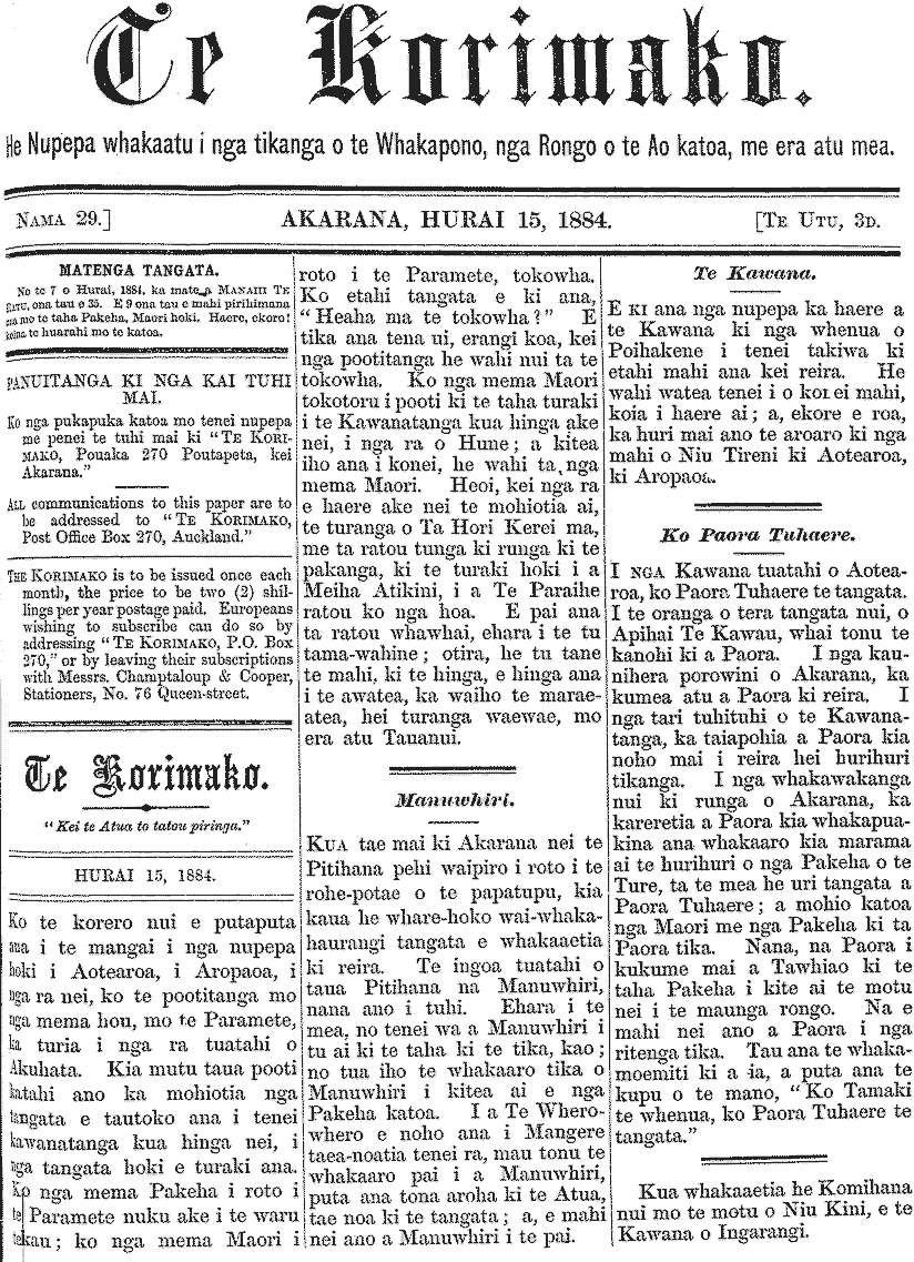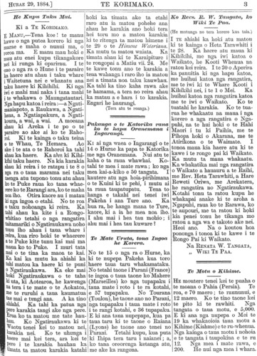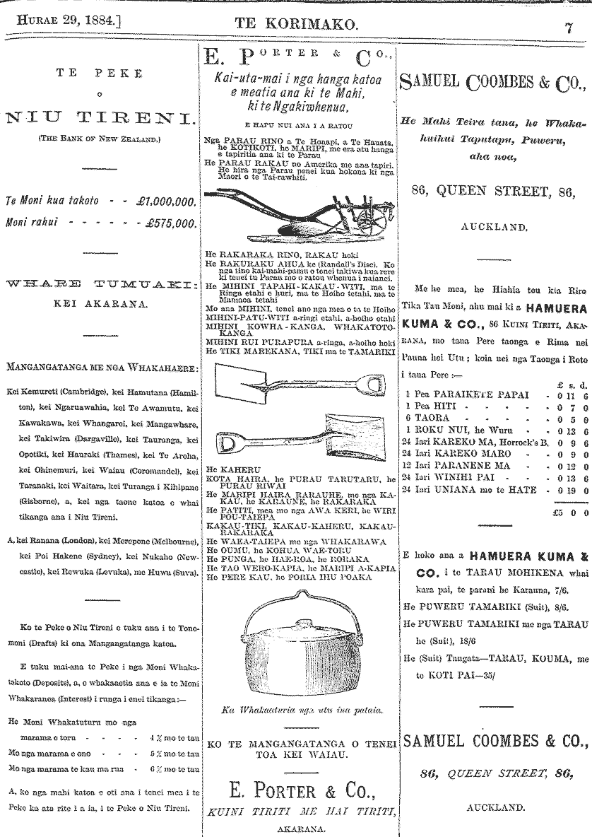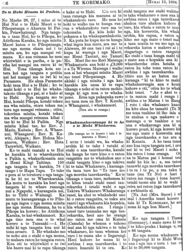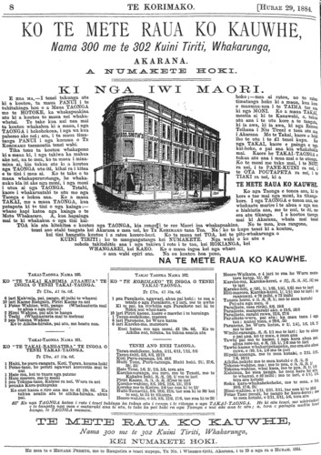 Te Korimako 1882-1890: Volume 0, Number 29. 15 July 1884 |