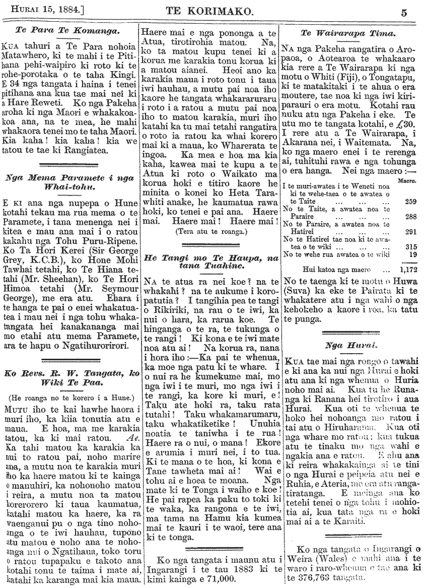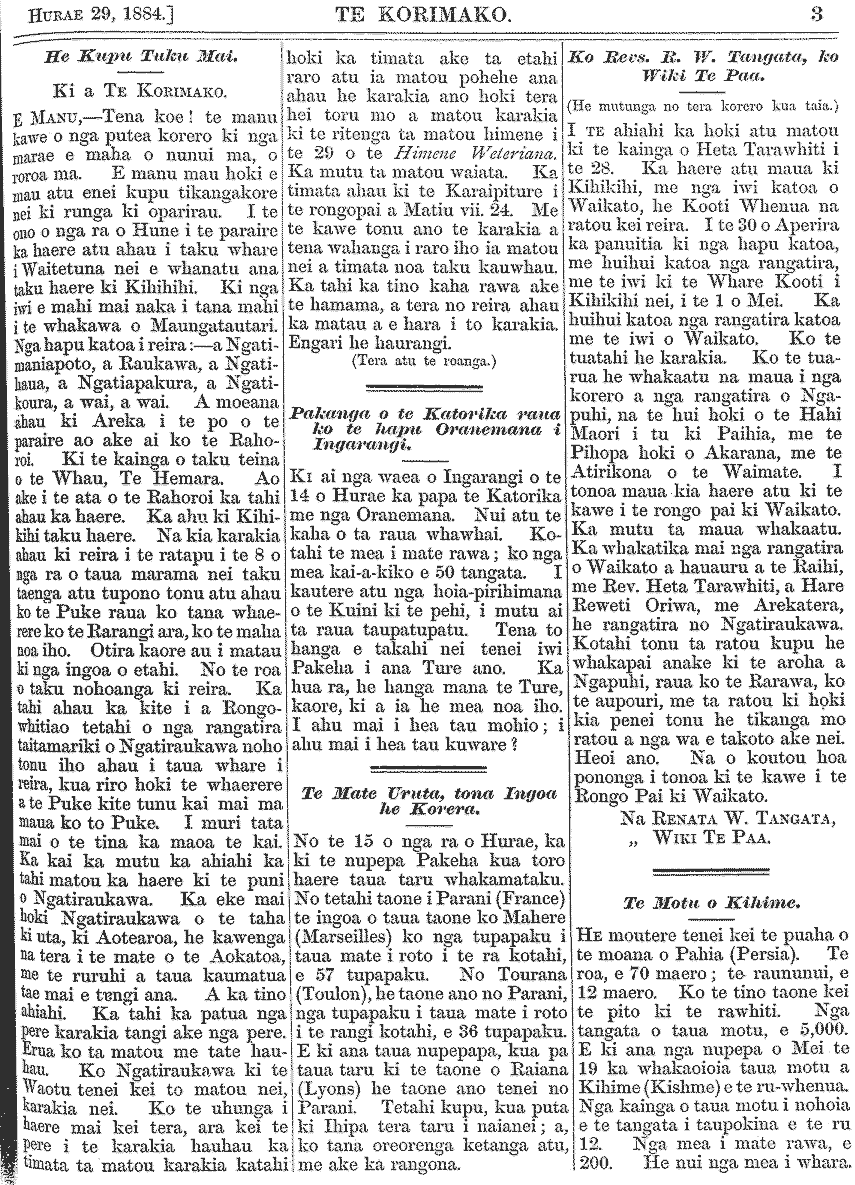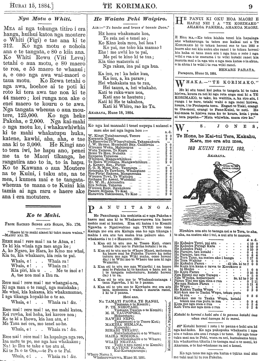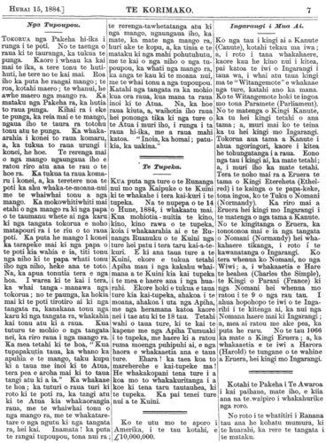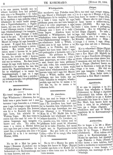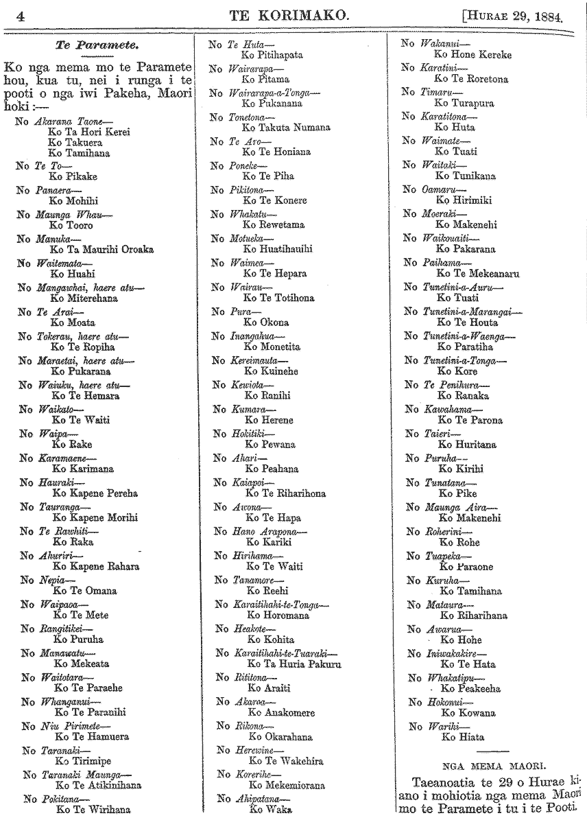 Te Korimako 1882-1890: Volume 0, Number 29. 15 July 1884 |