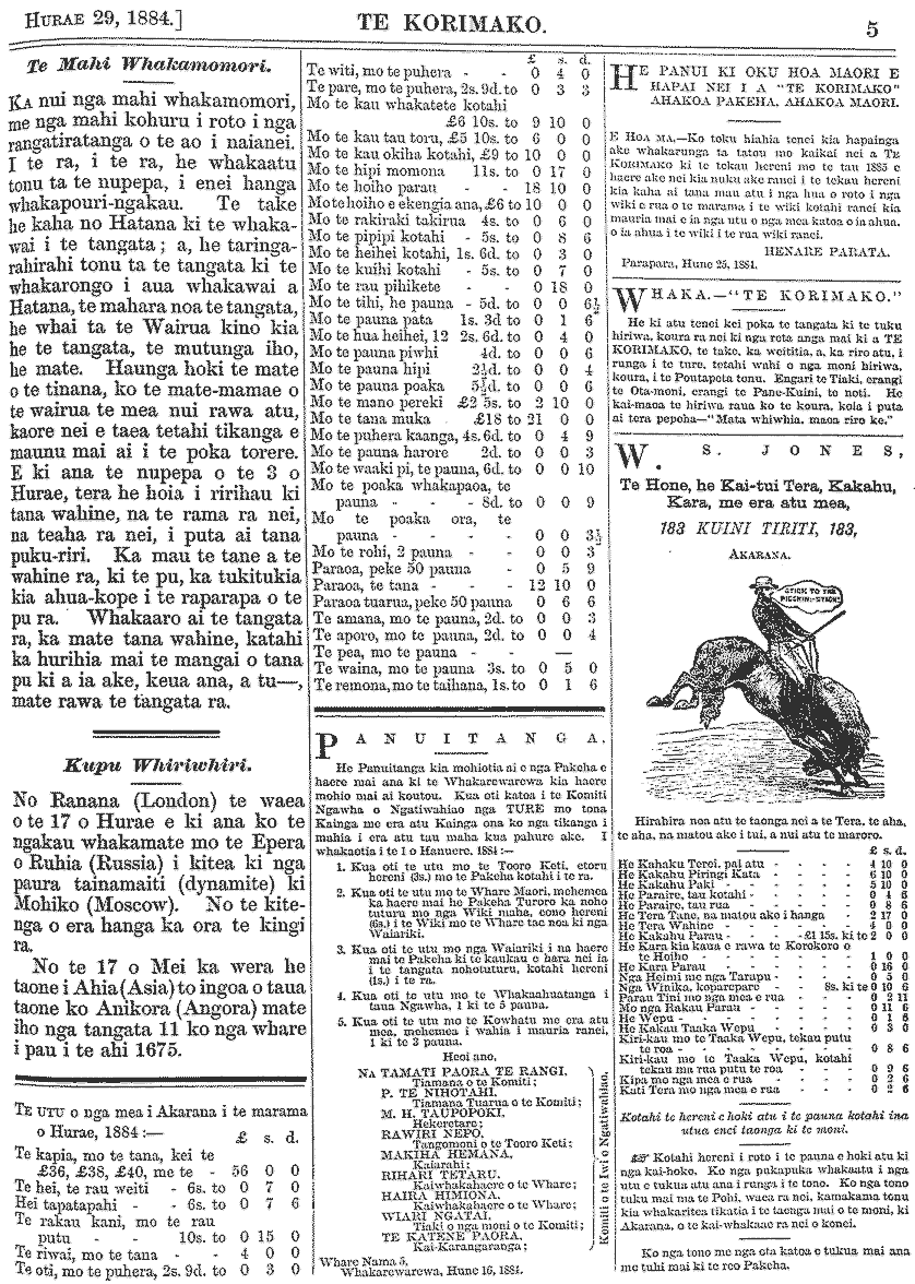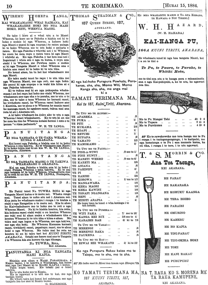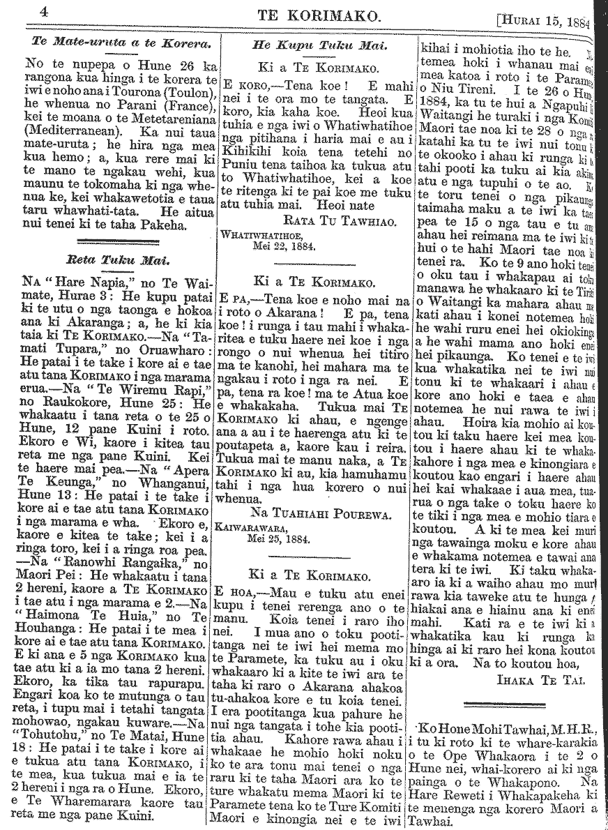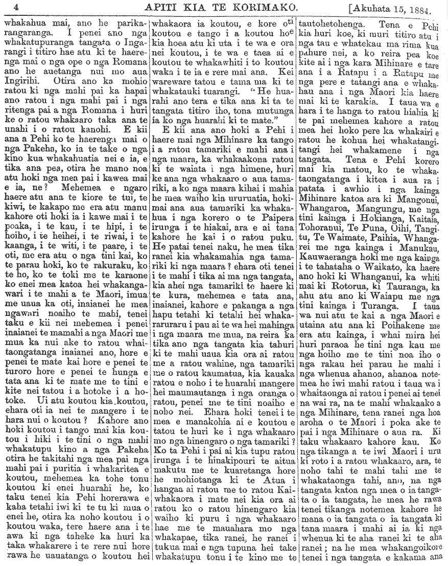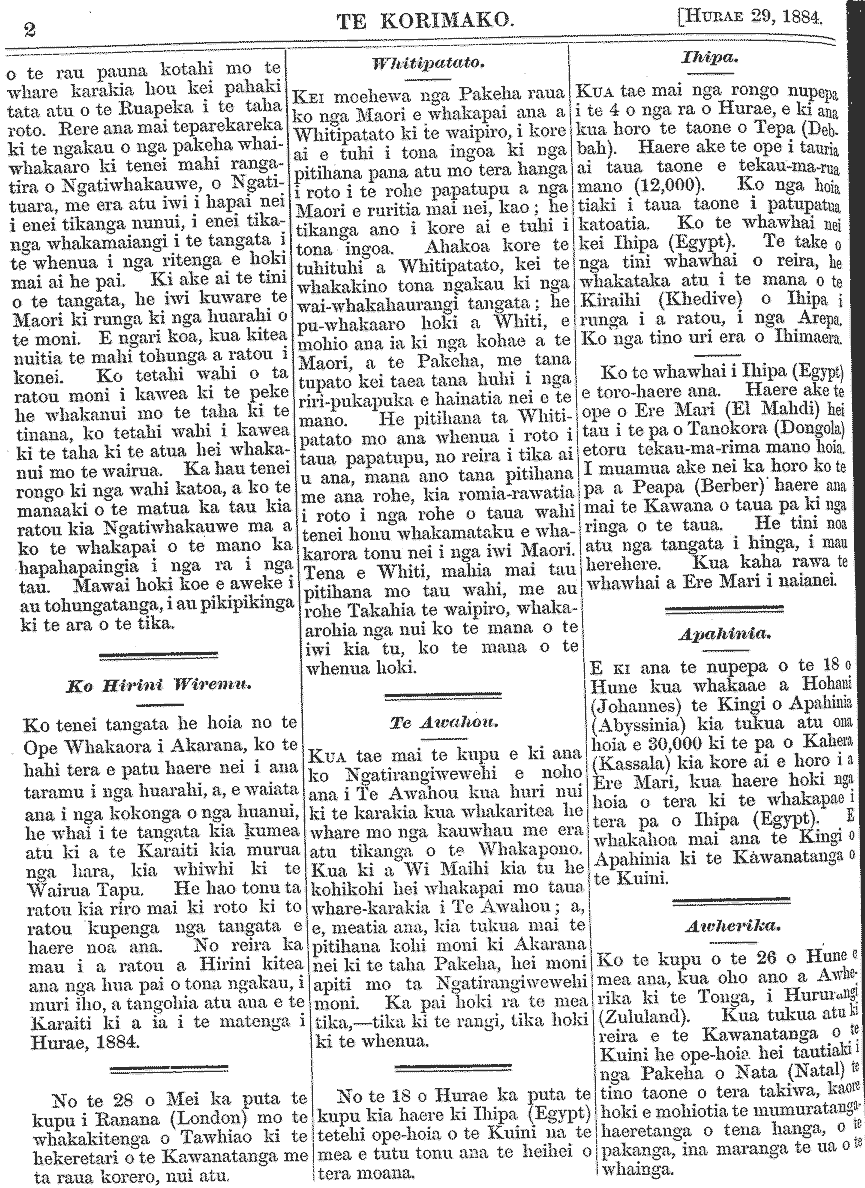 Te Korimako 1882-1890: Volume 0, Number 29. 15 July 1884 |