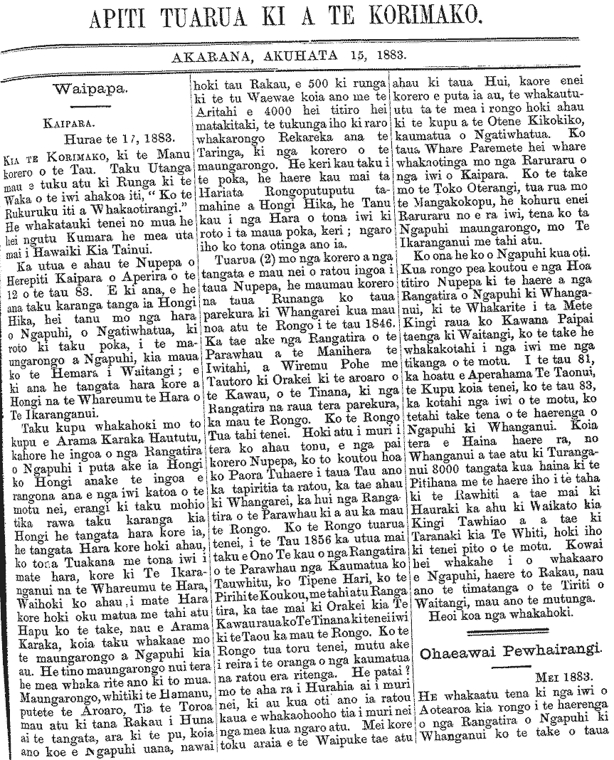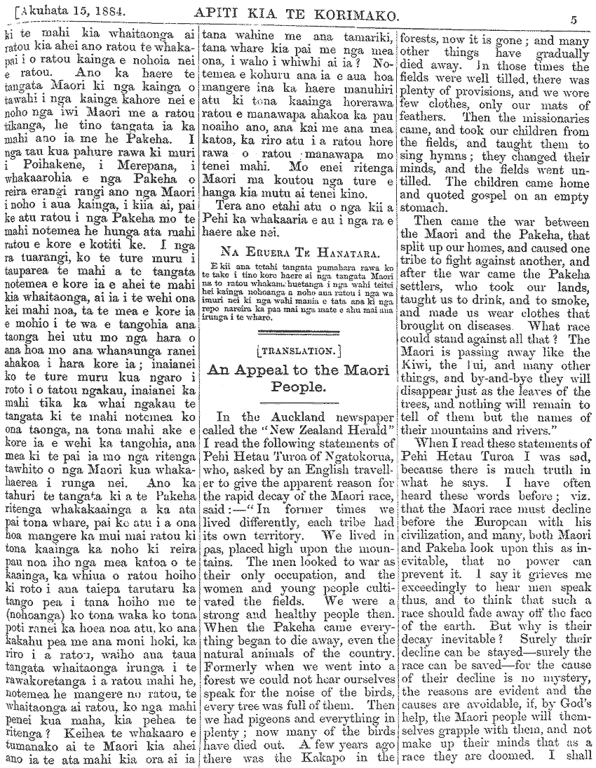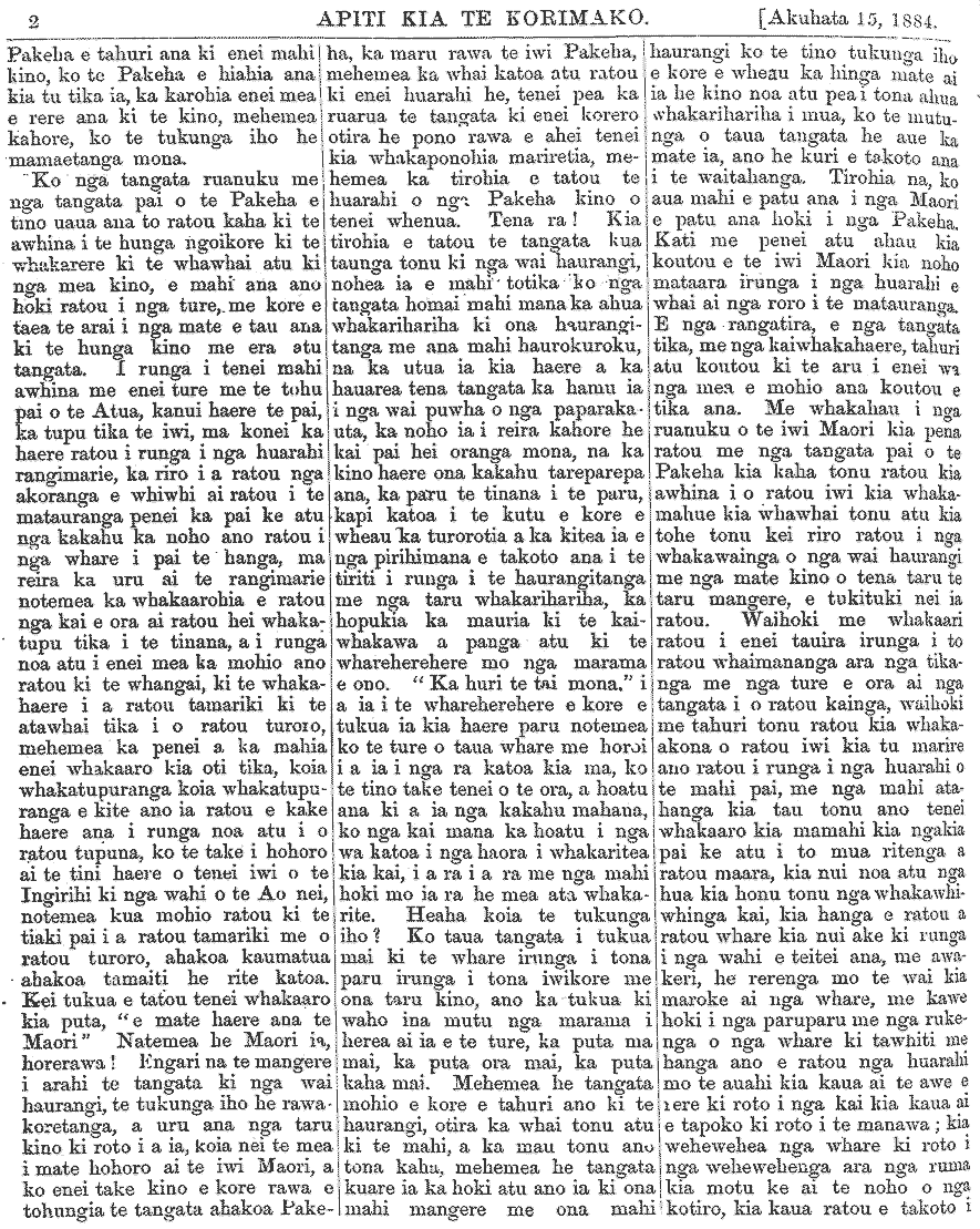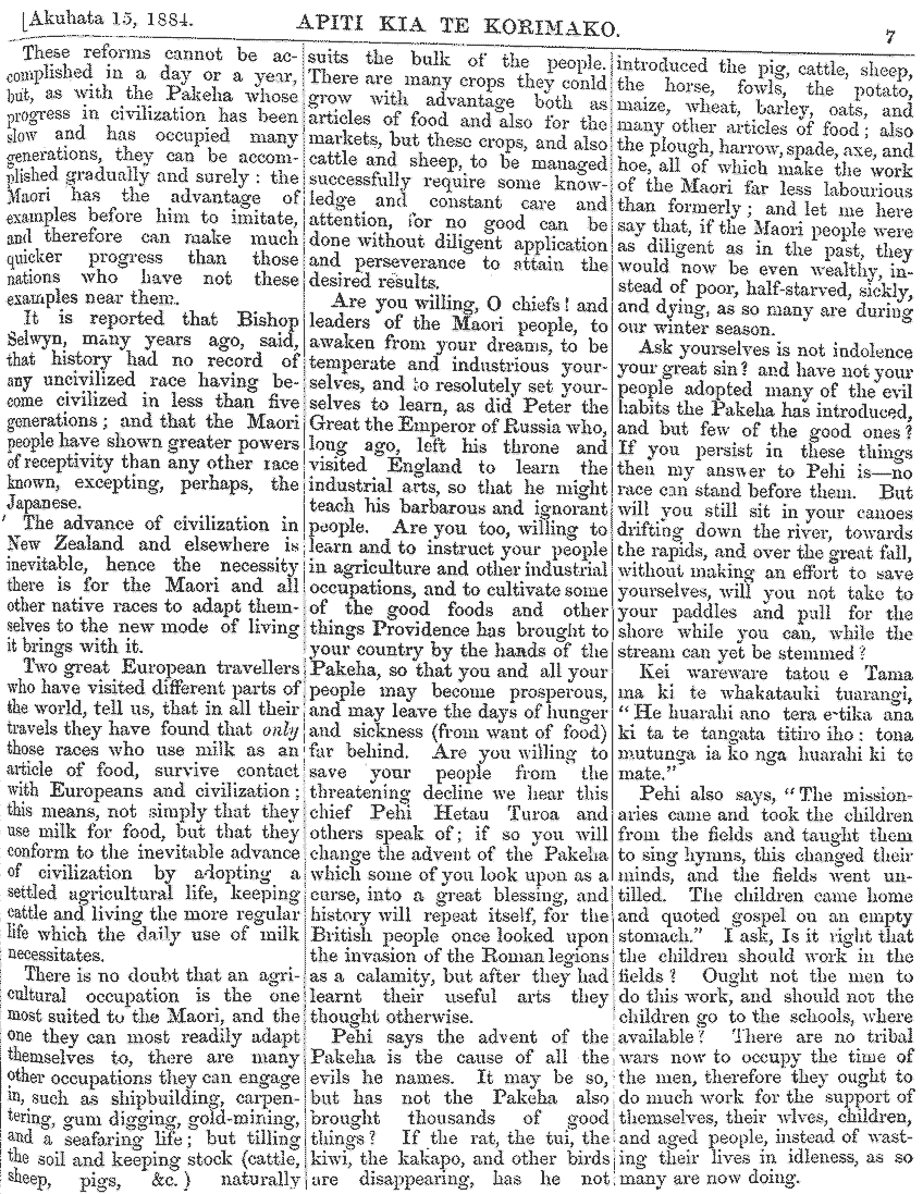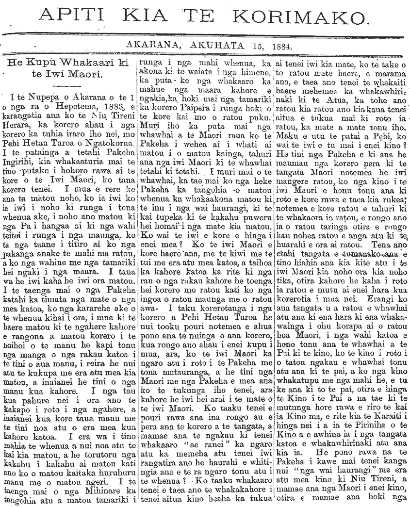 Te Korimako 1882-1890: Volume 0, Number 29. 15 July 1884 |