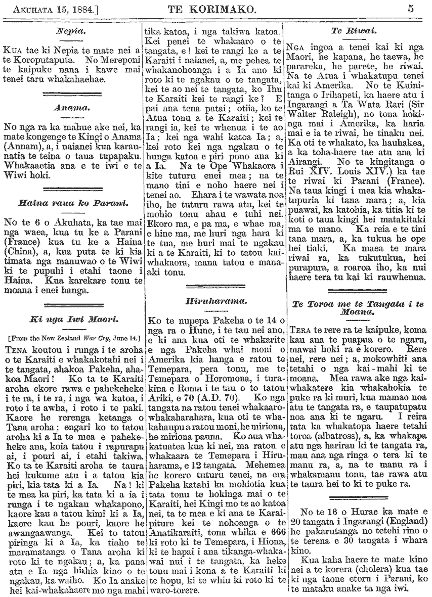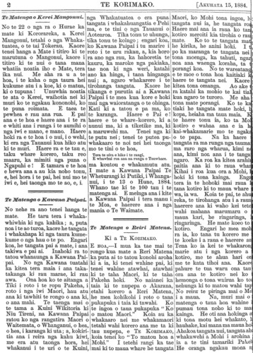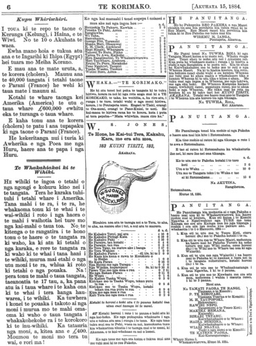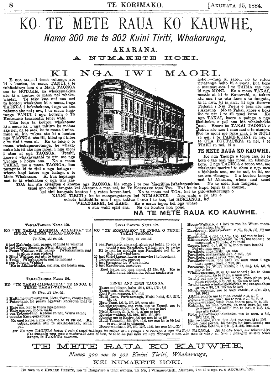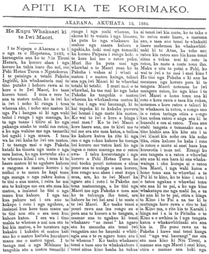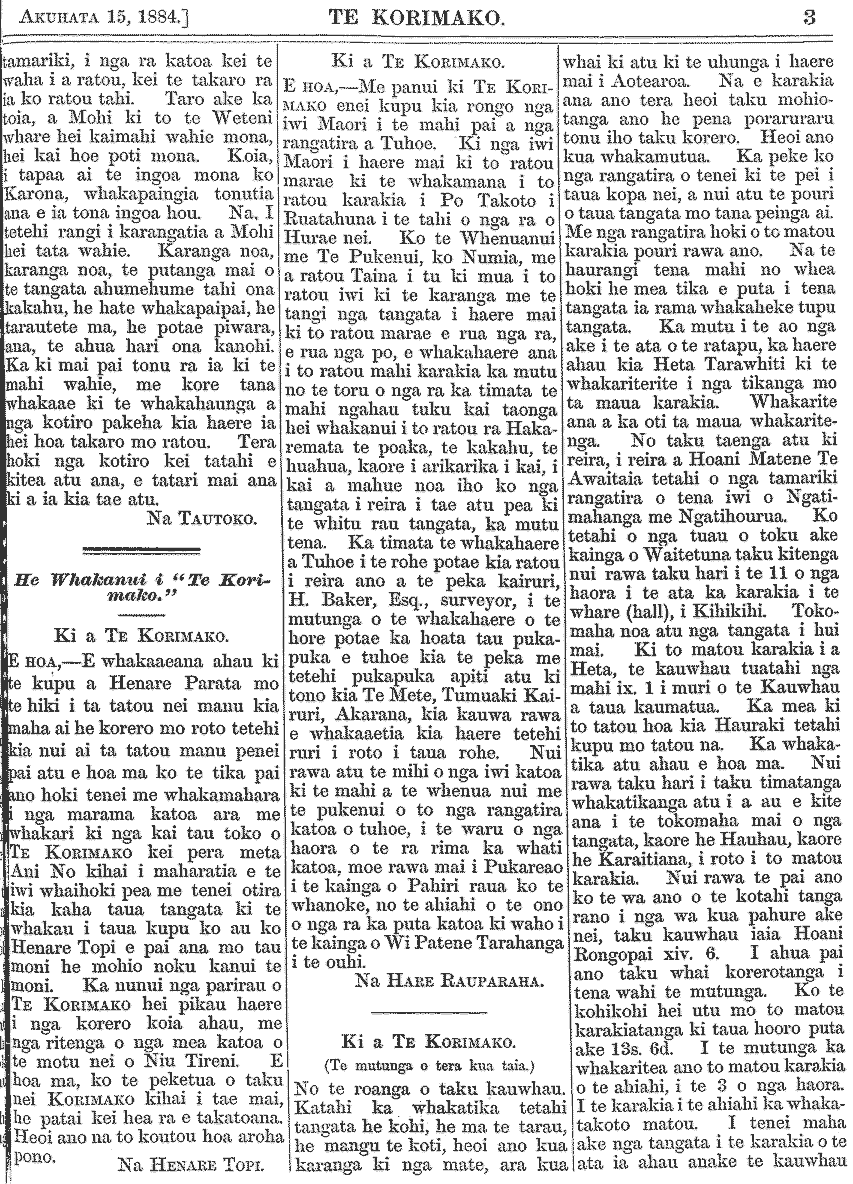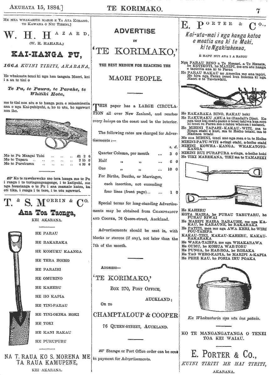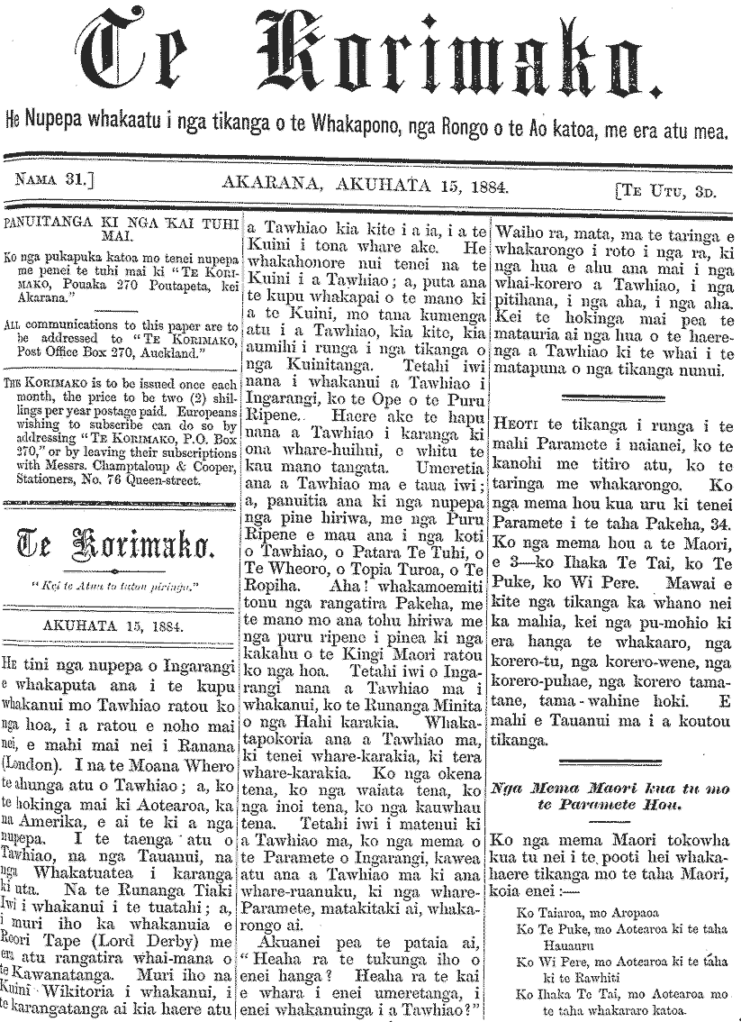 Te Korimako 1882-1890: Volume 0, Number 31. 15 August 1884 |