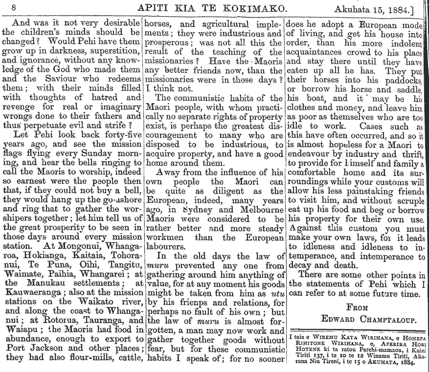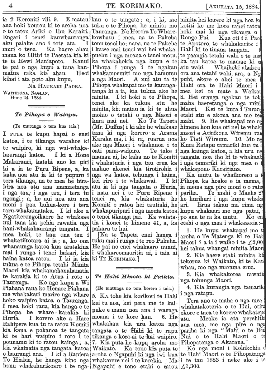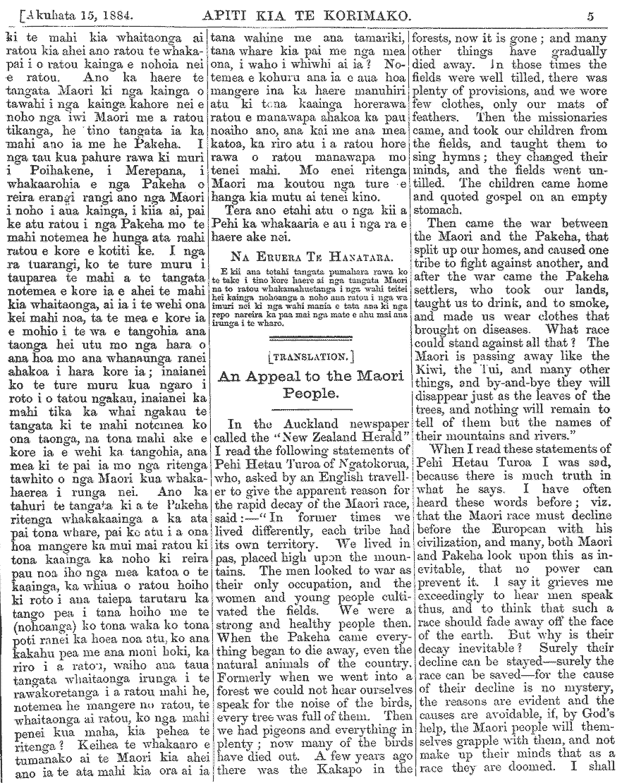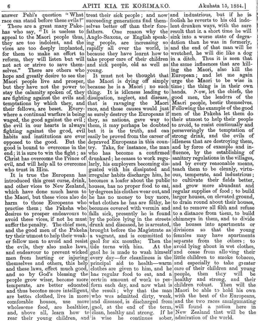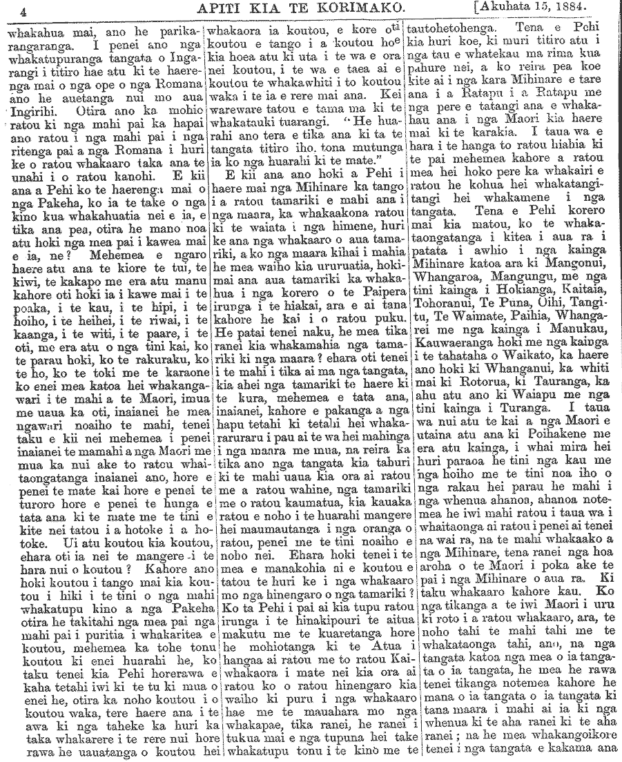 Te Korimako 1882-1890: Volume 0, Number 31. 15 August 1884 |