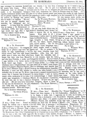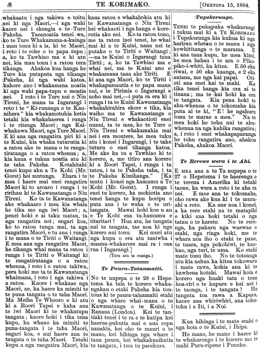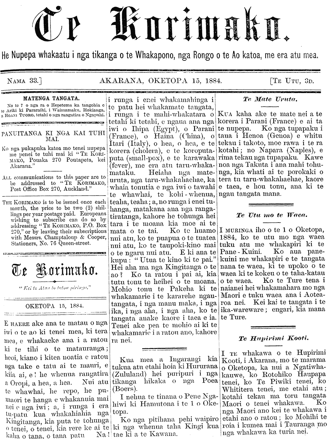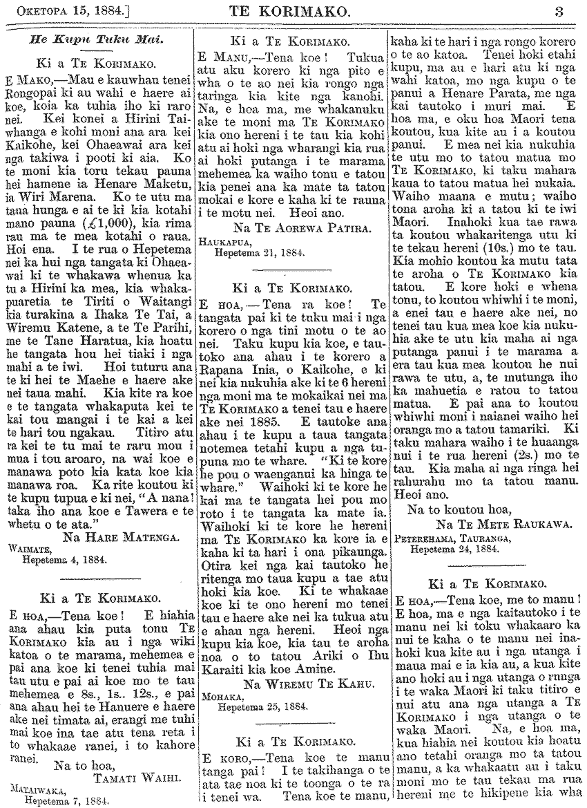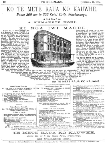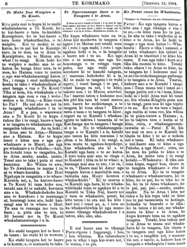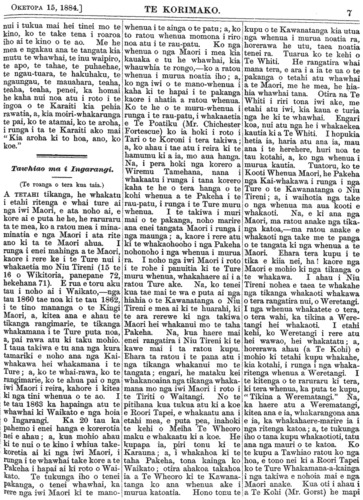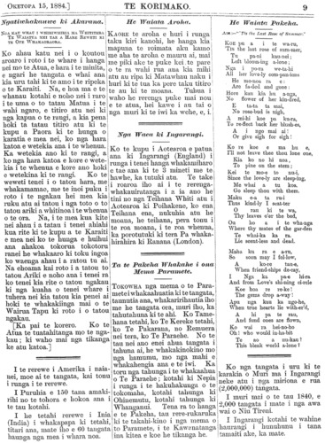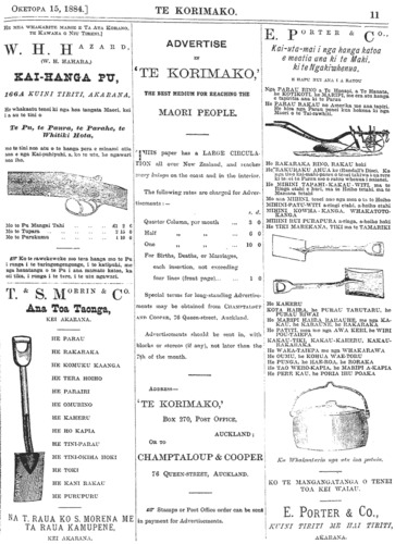 Te Korimako 1882-1890: Volume 0, Number 33. 15 October 1884 |