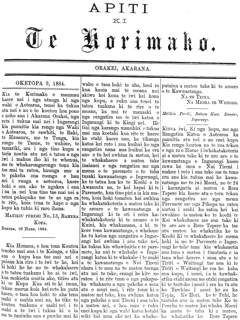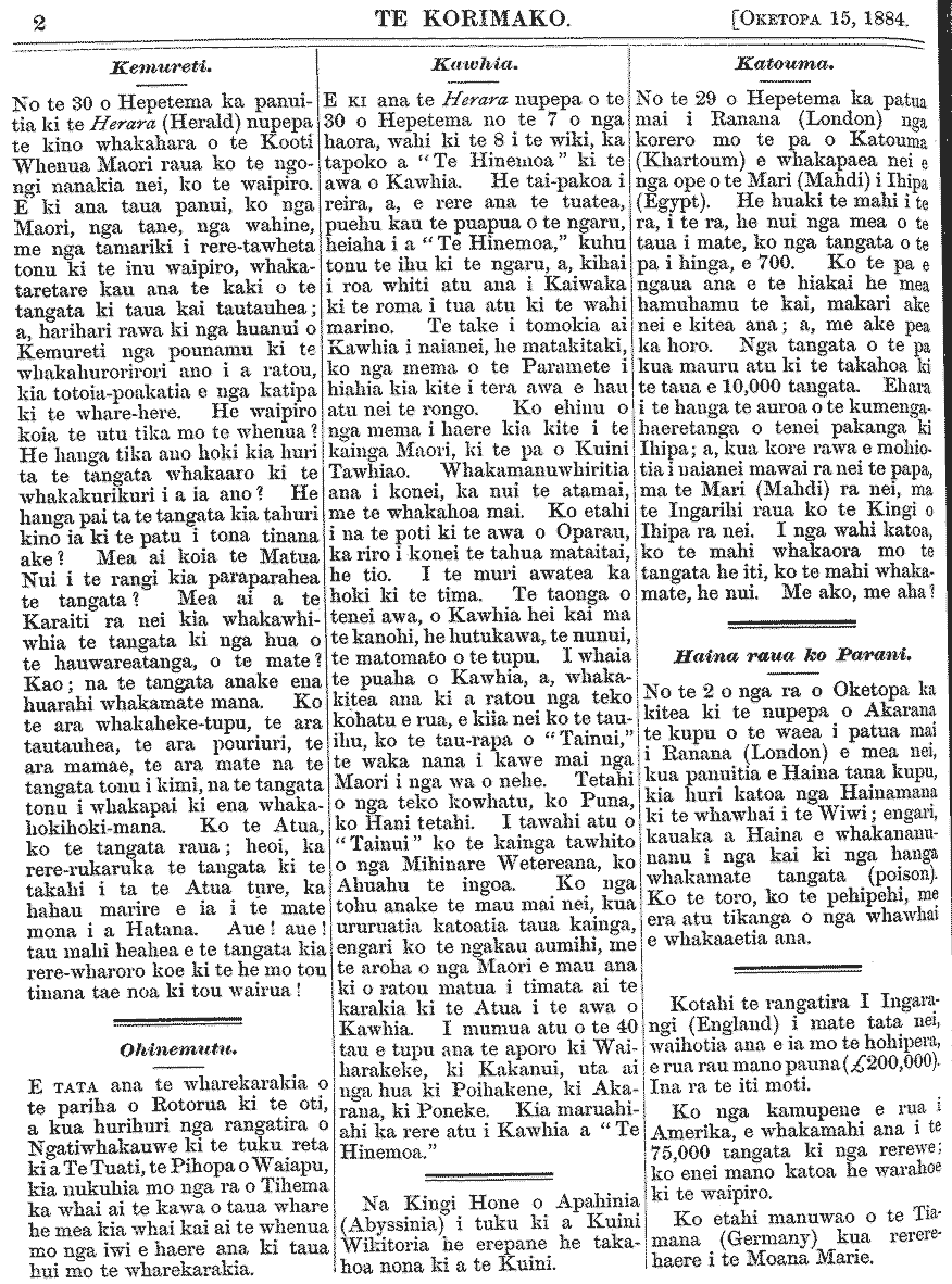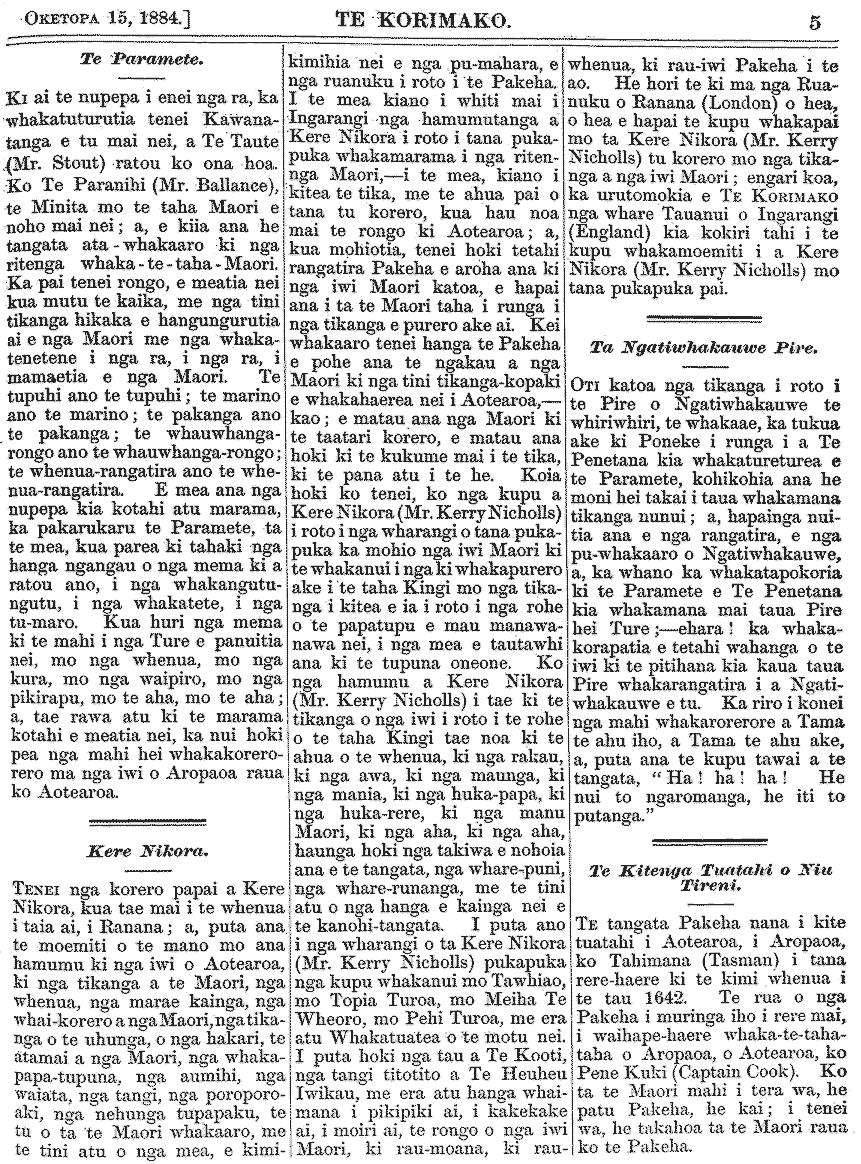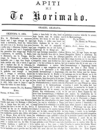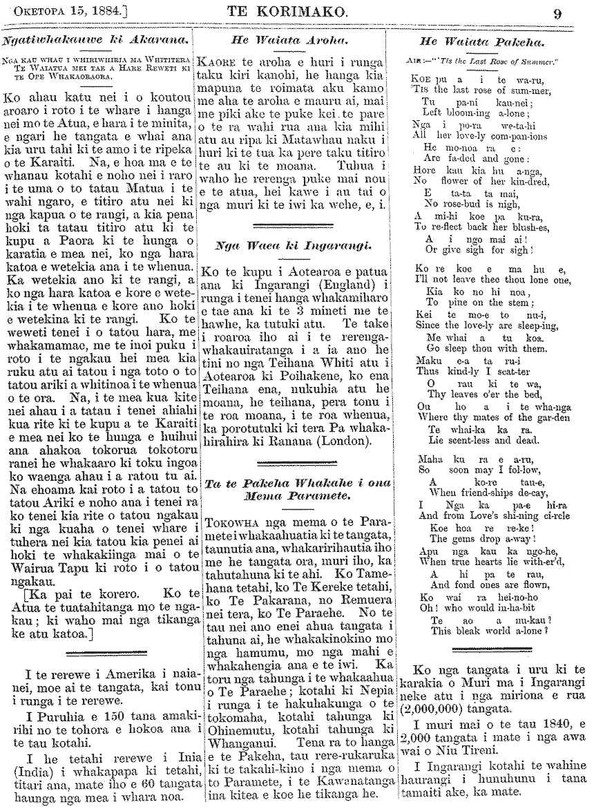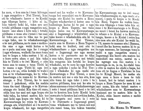 Te Korimako 1882-1890: Volume 0, Number 33. 15 October 1884 |