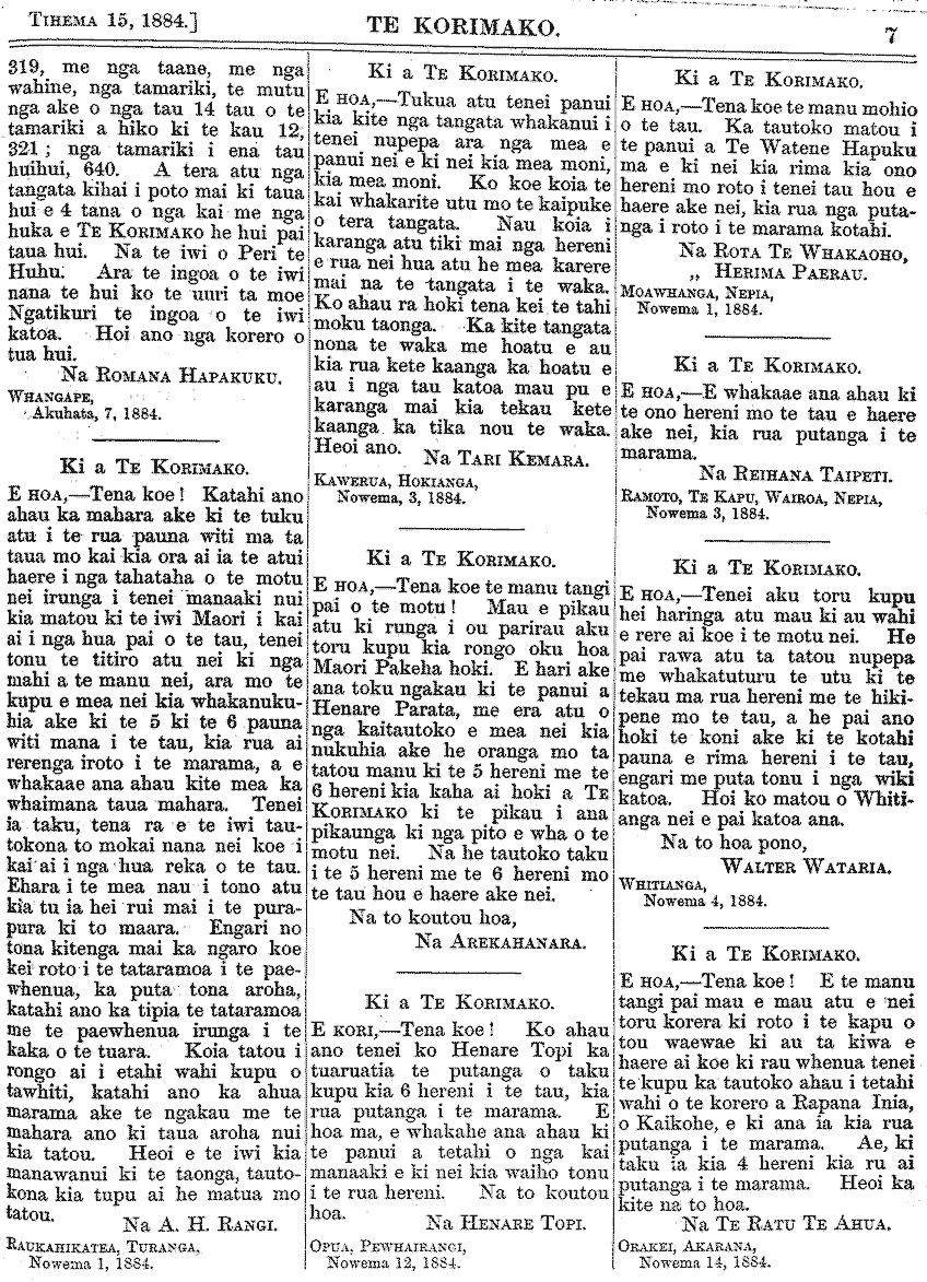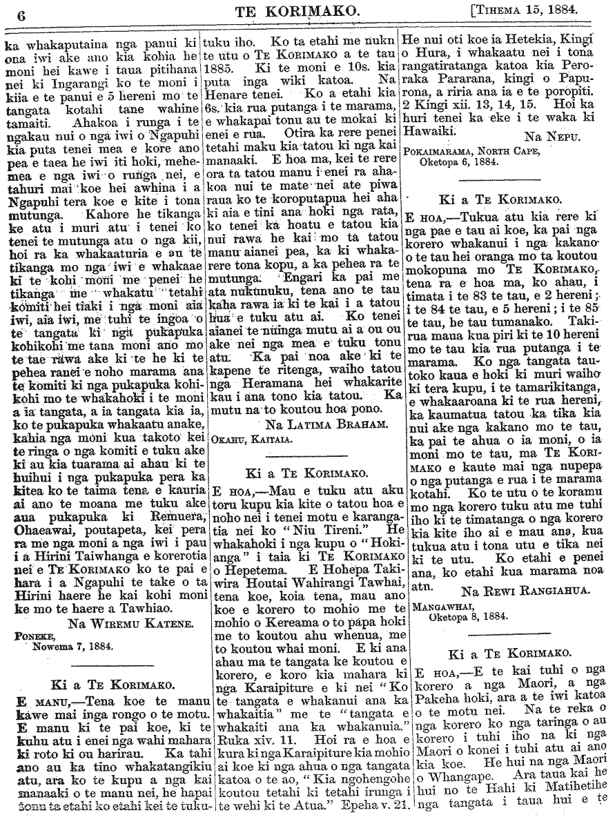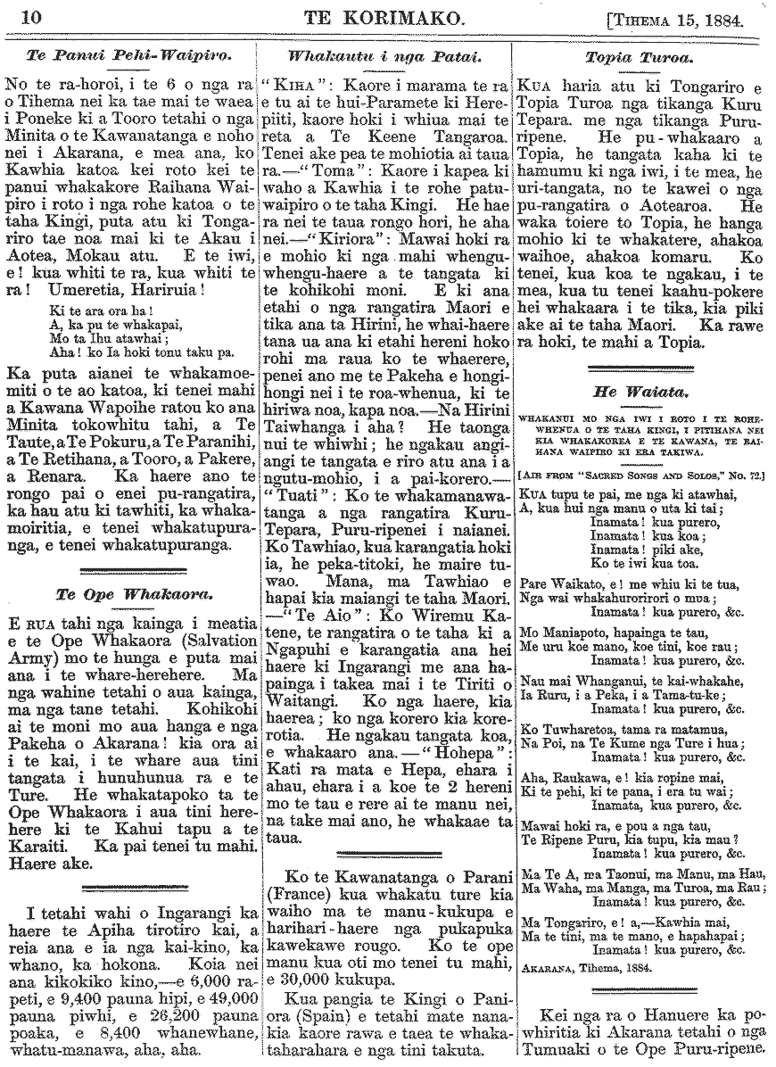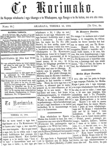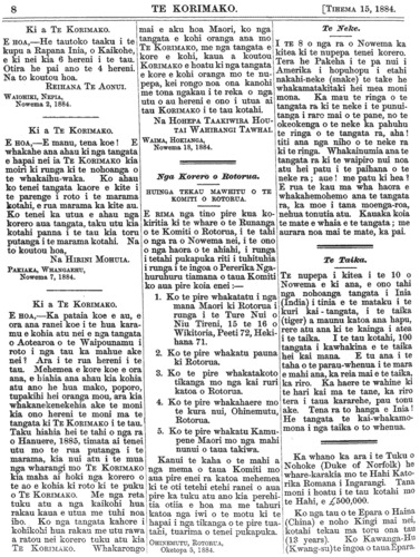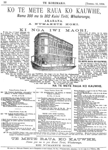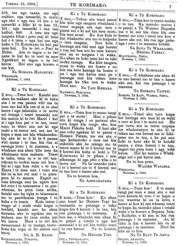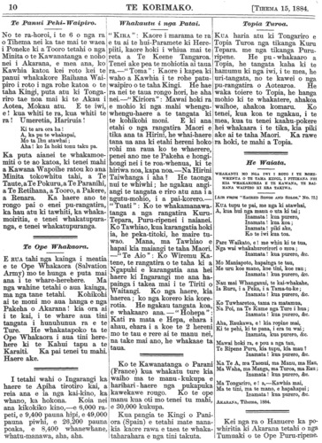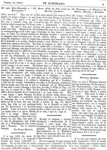 Te Korimako 1882-1890: Volume 0, Number 35. 15 December 1884 |
