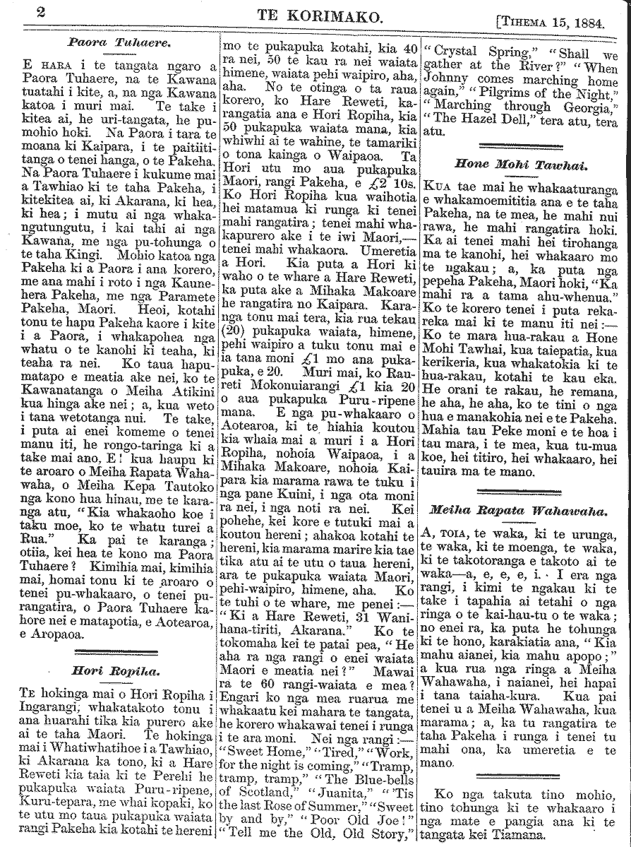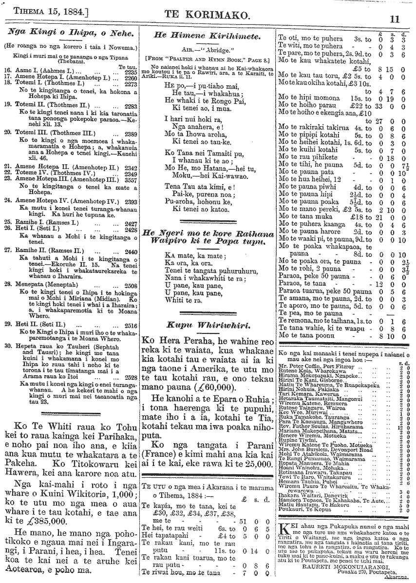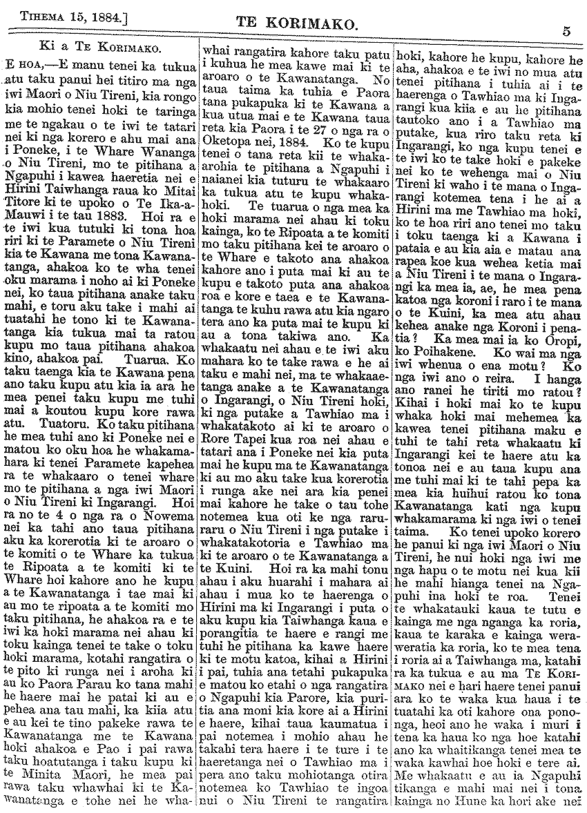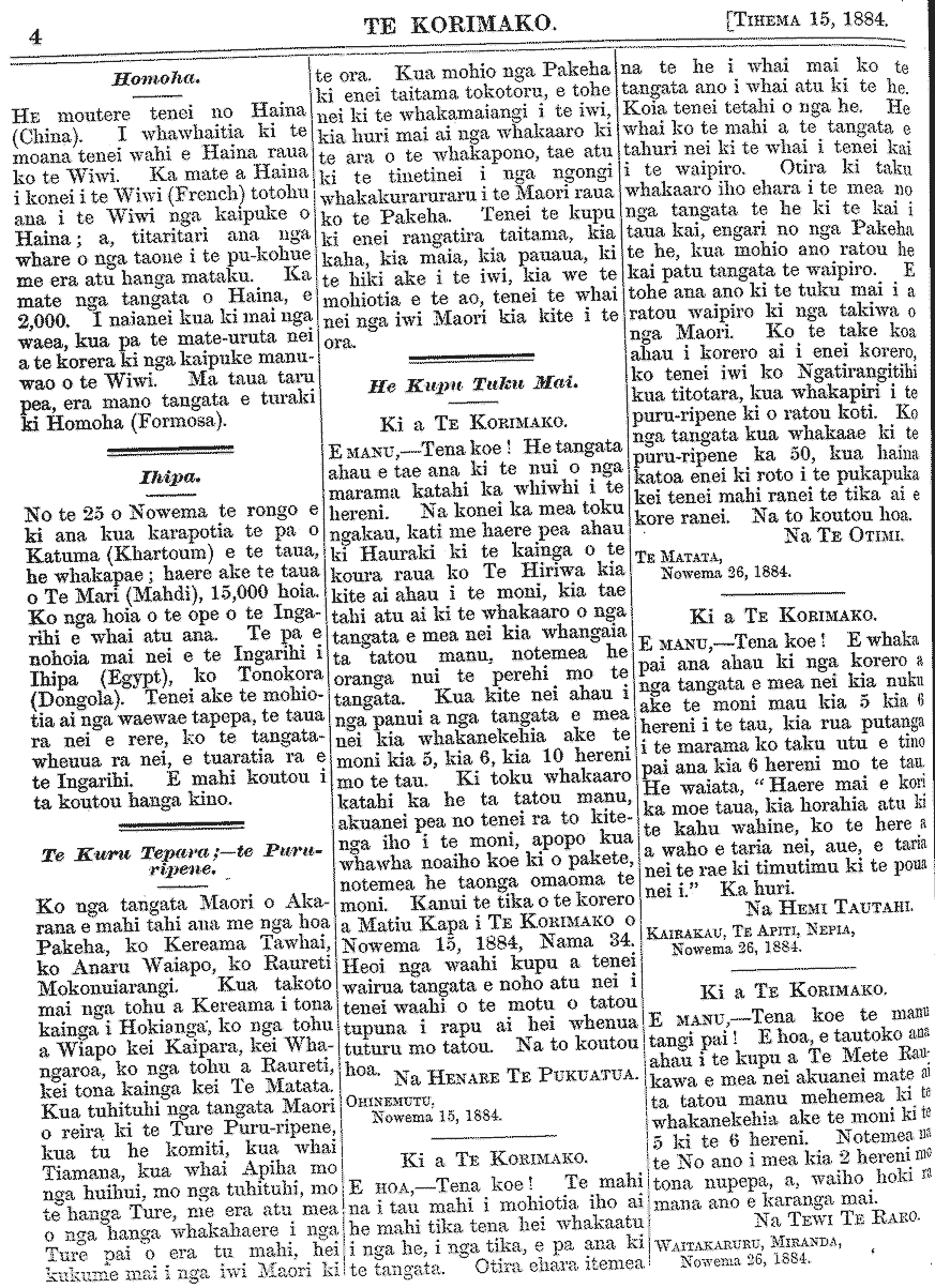 Te Korimako 1882-1890: Volume 0, Number 35. 15 December 1884 |