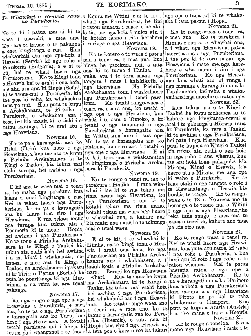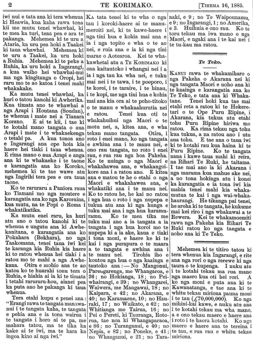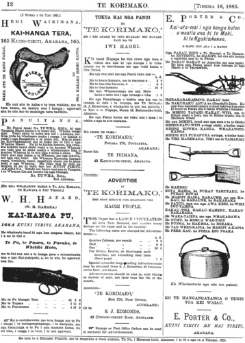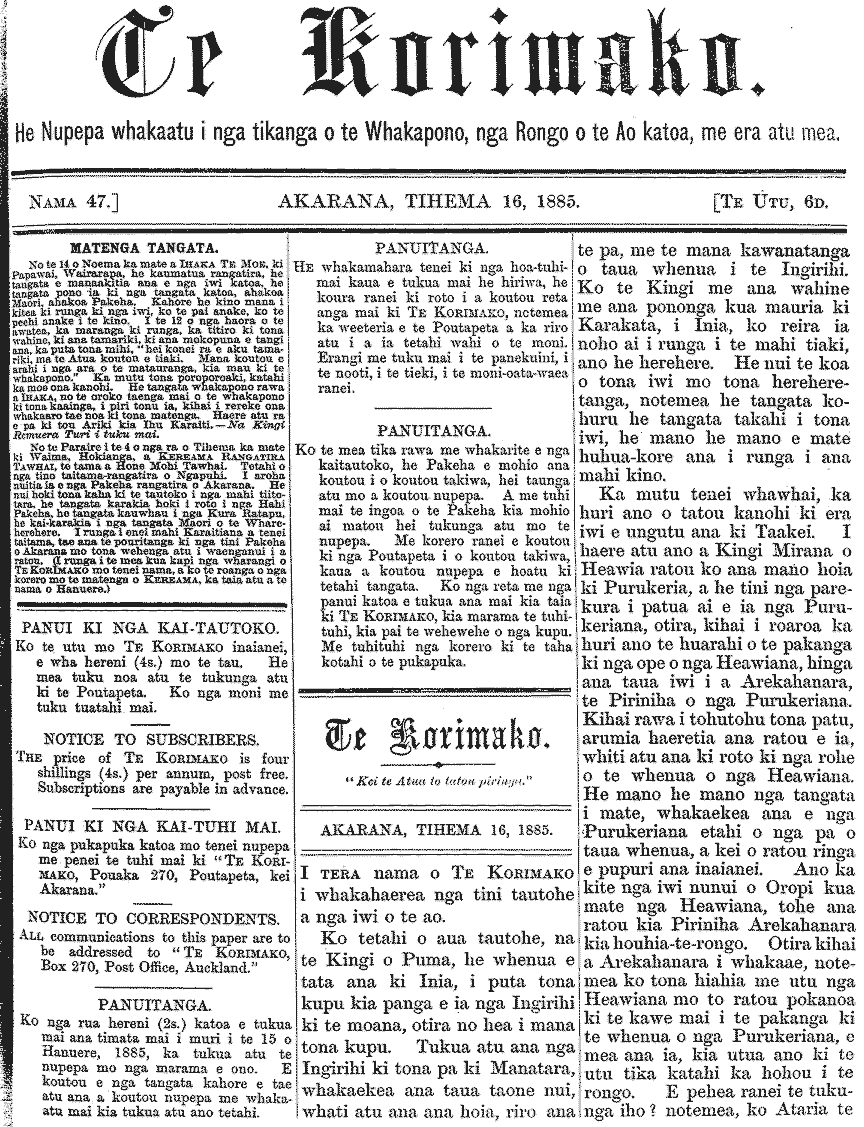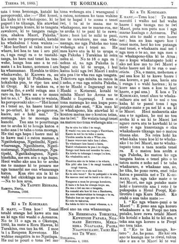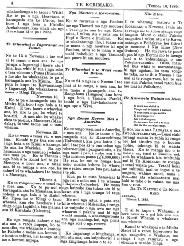 Te Korimako 1882-1890: Volume 0, Number 47. 16 December 1885 |
