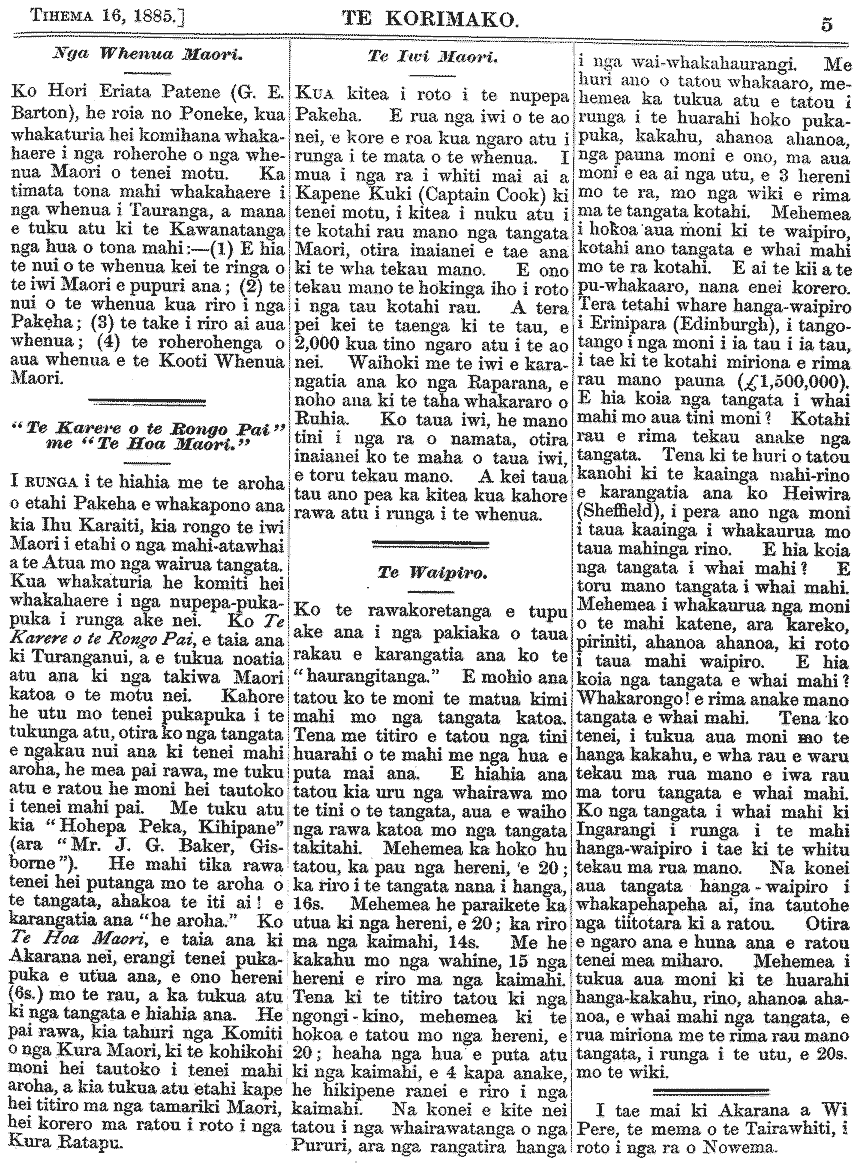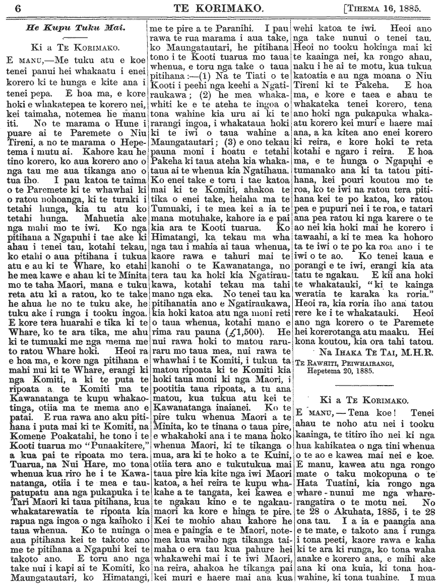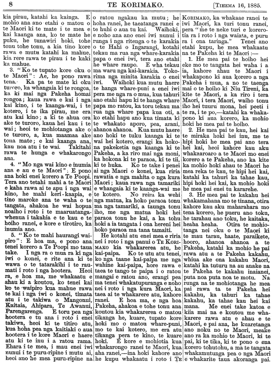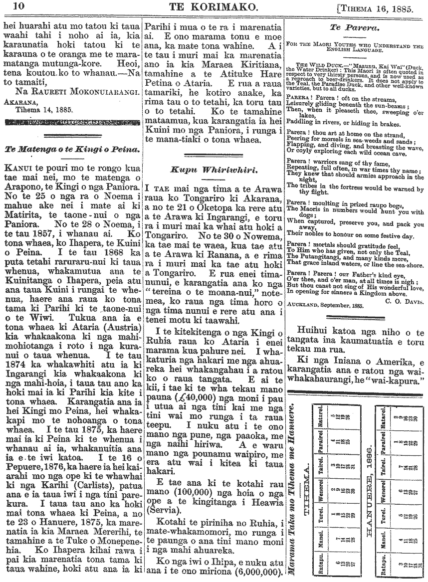 Te Korimako 1882-1890: Volume 0, Number 47. 16 December 1885 |