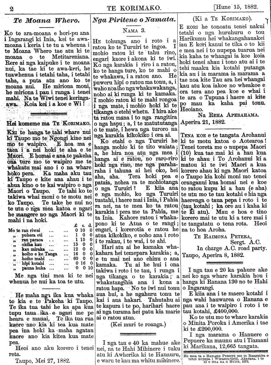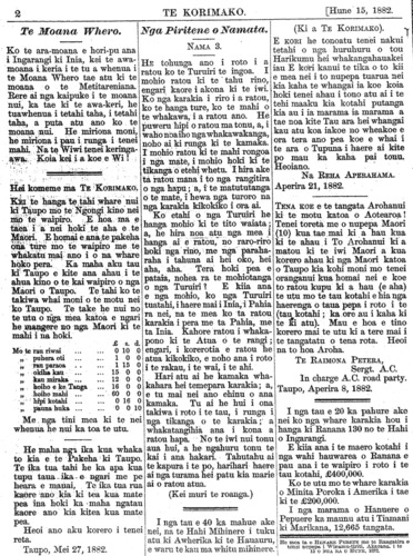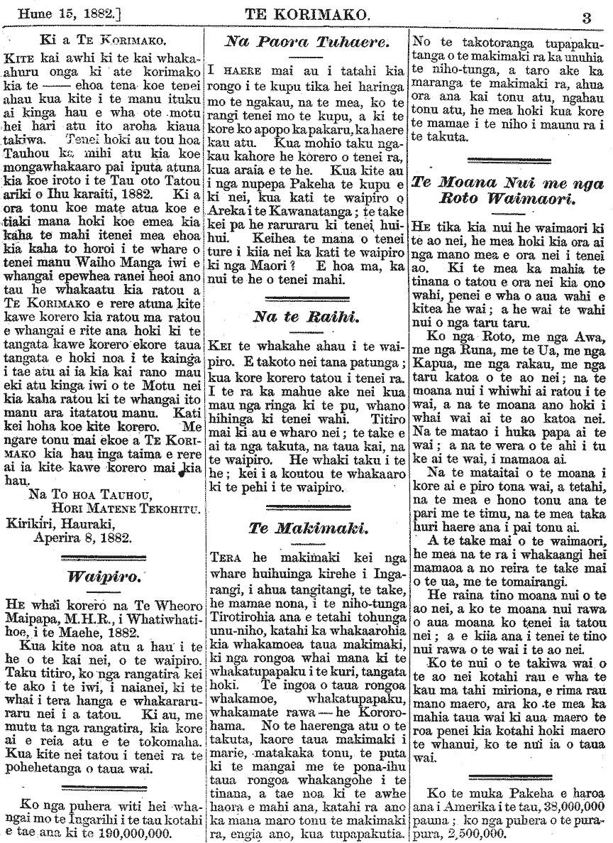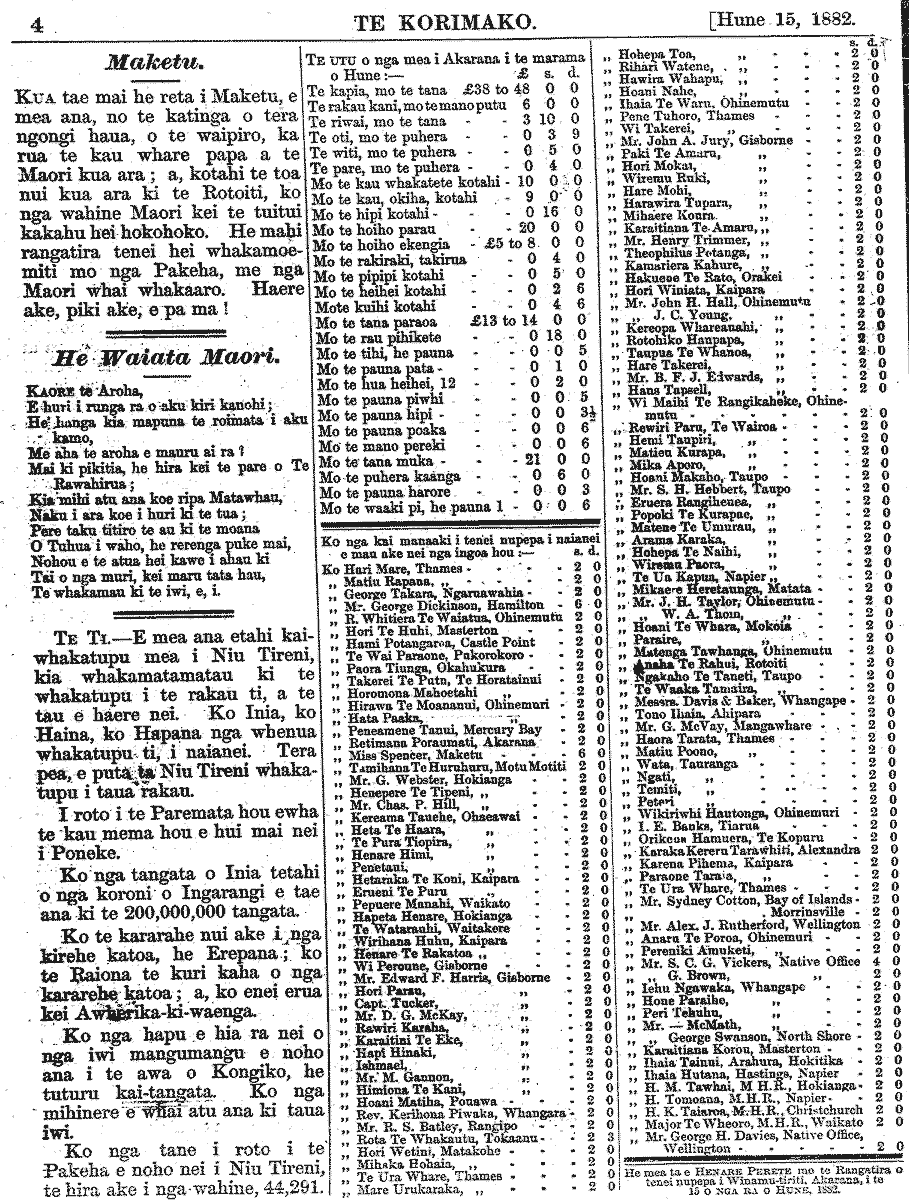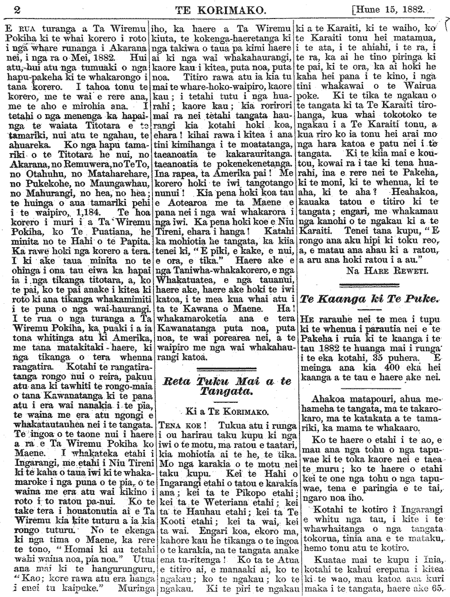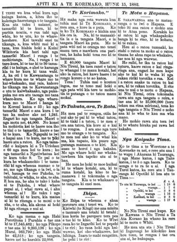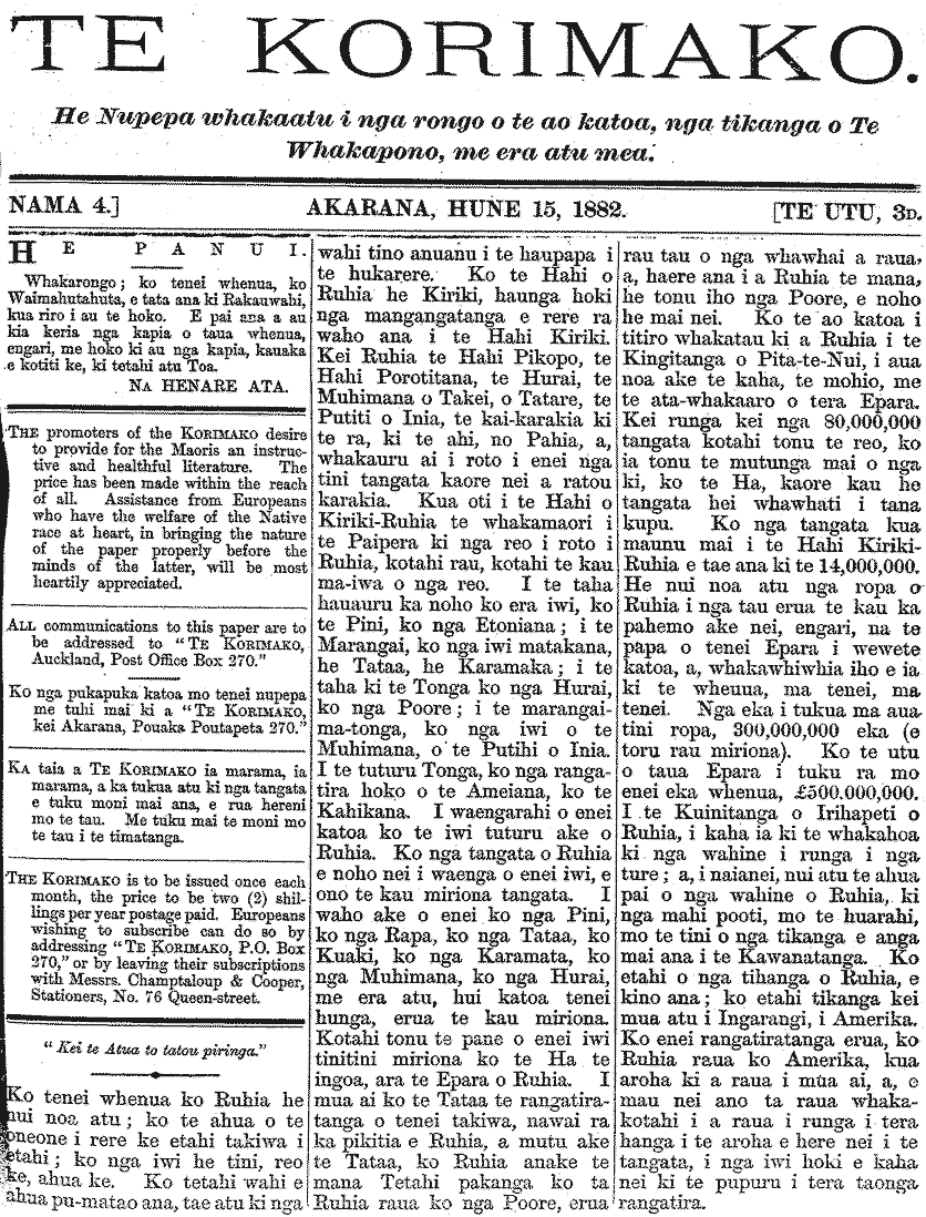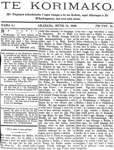 Te Korimako 1882-1890: Volume 0, Number 4. 15 June 1882 |