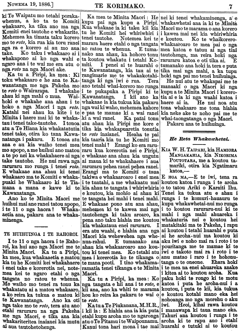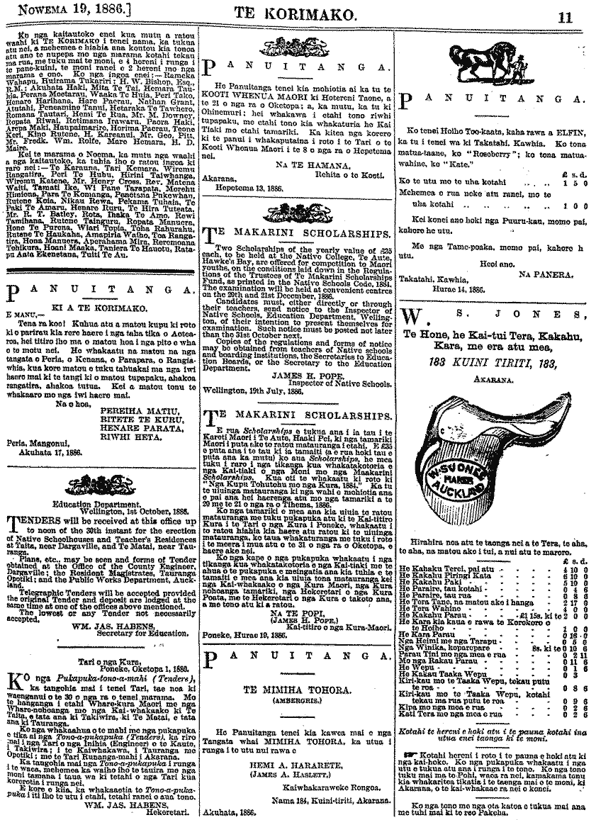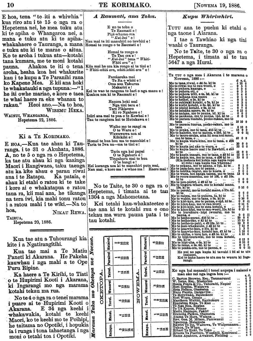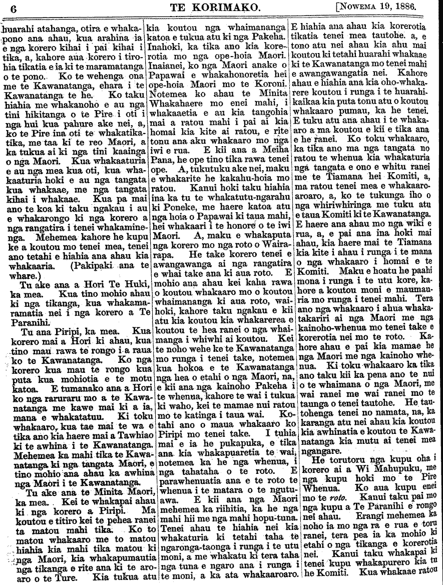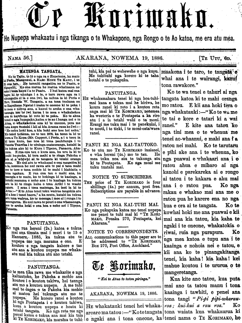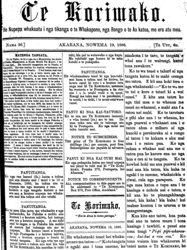 Te Korimako 1882-1890: Volume 0, Number 56. 19 November 1886 |