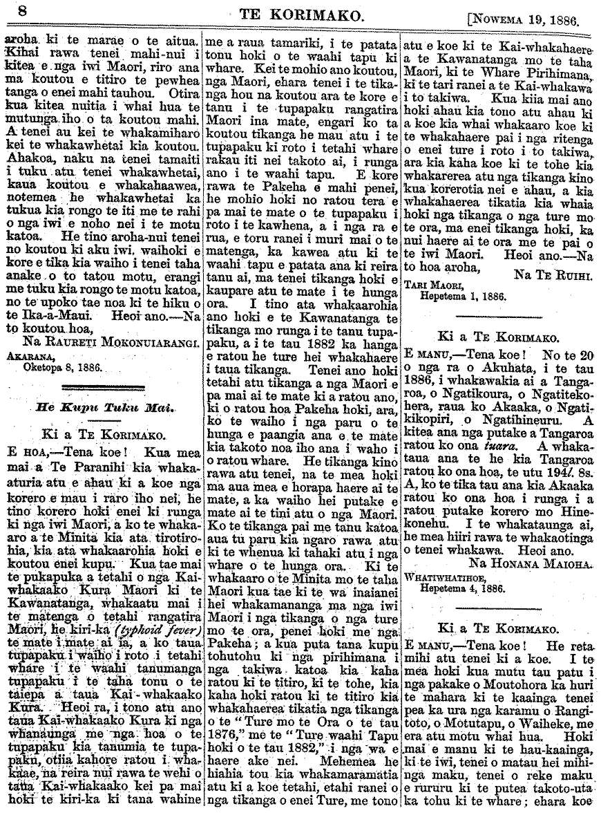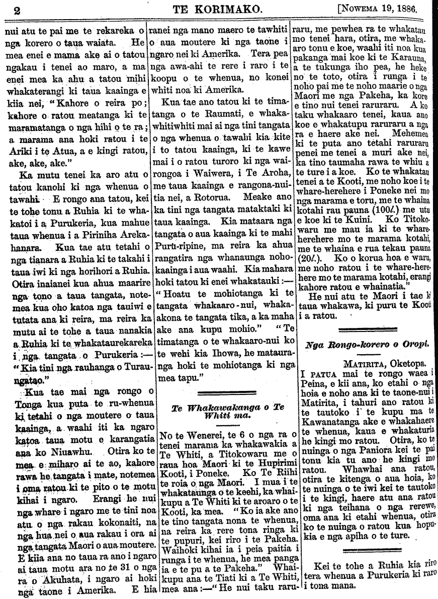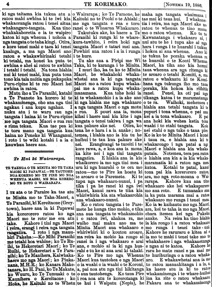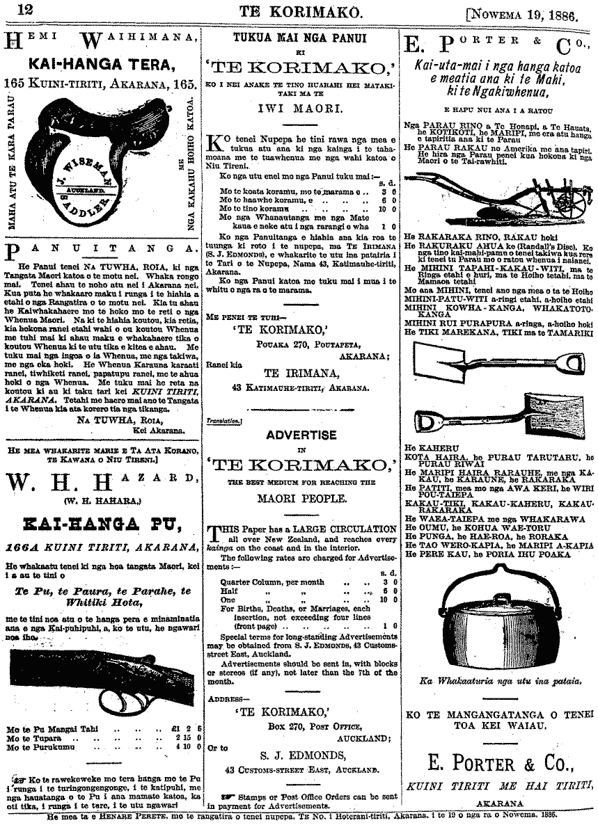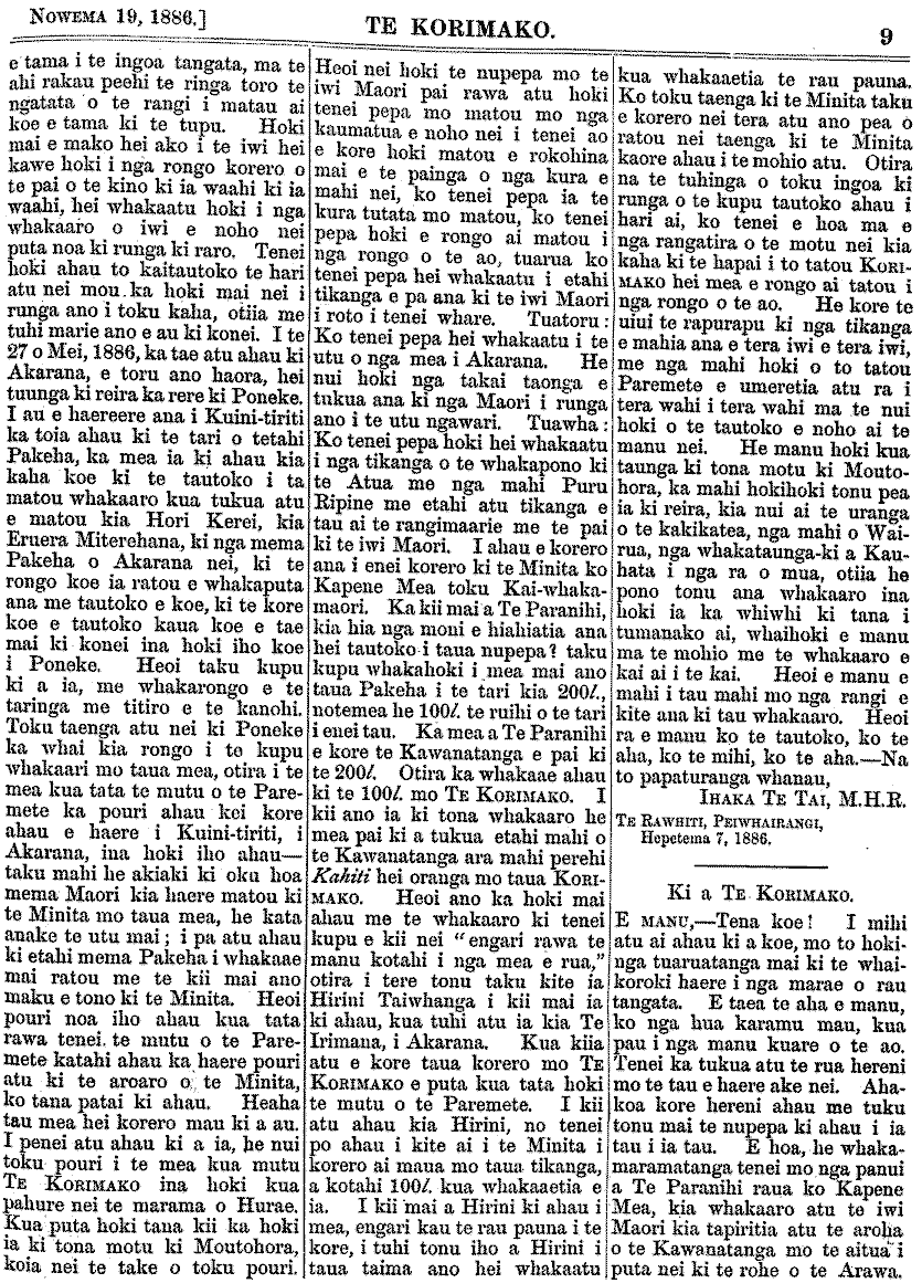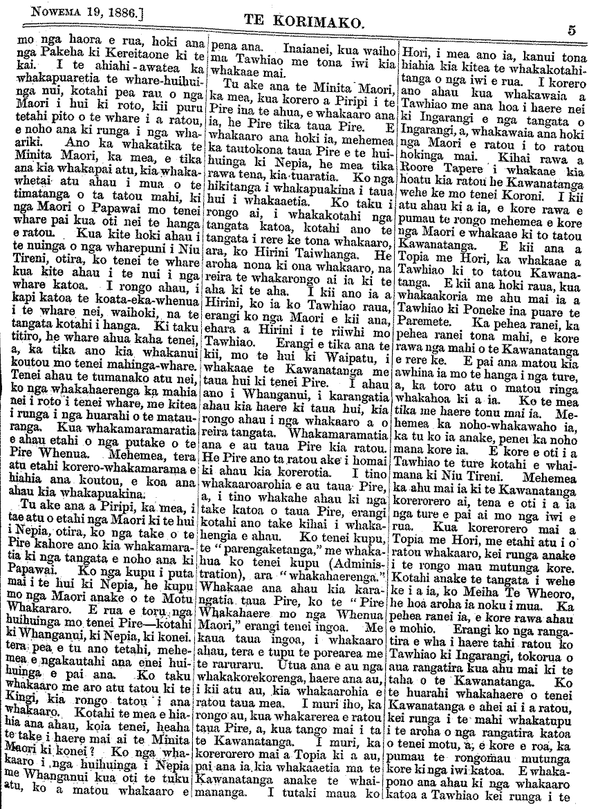 Te Korimako 1882-1890: Volume 0, Number 56. 19 November 1886 |