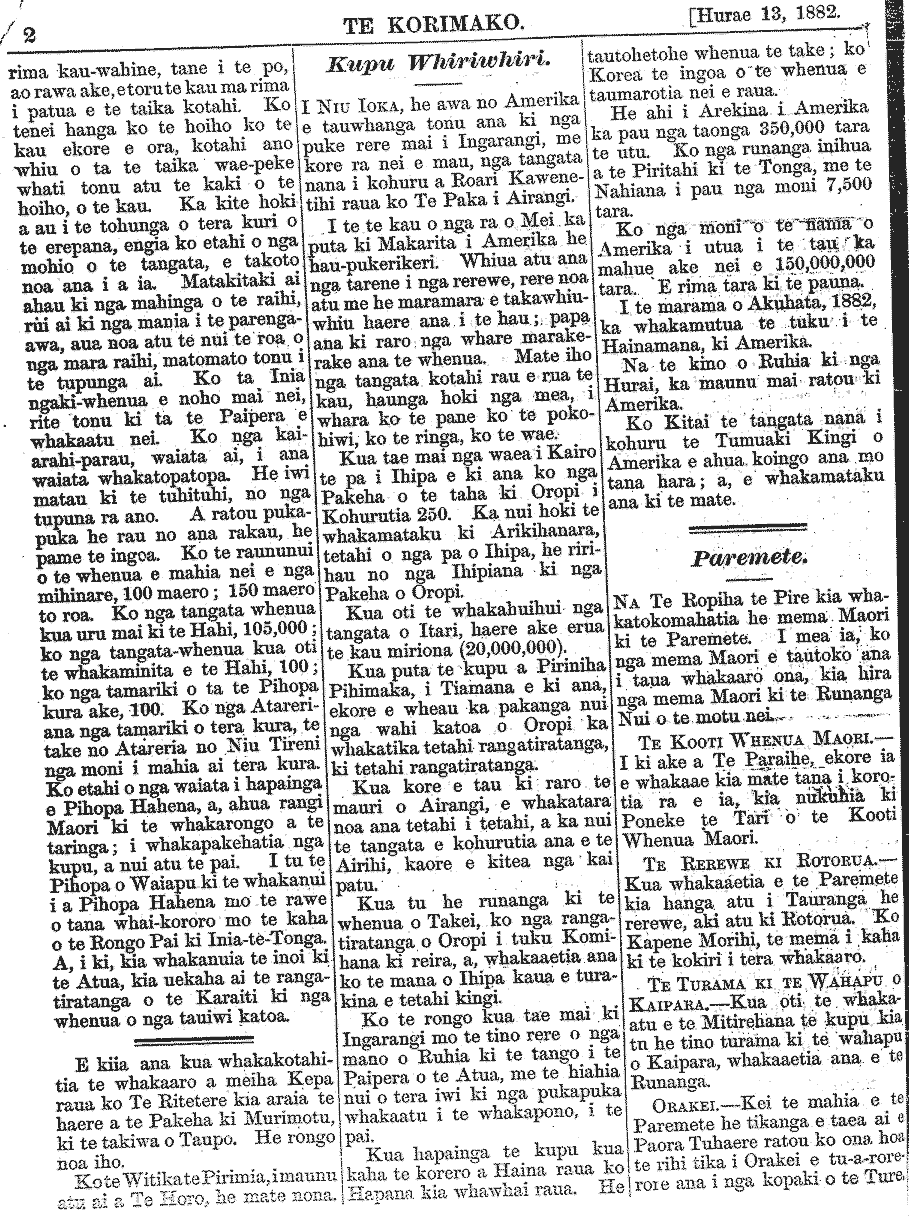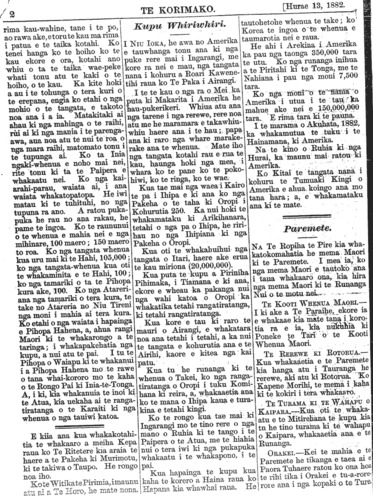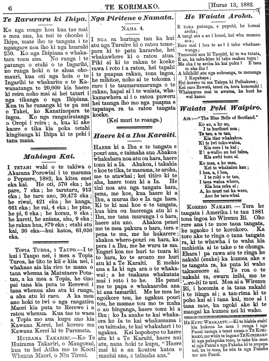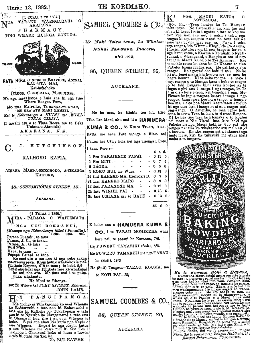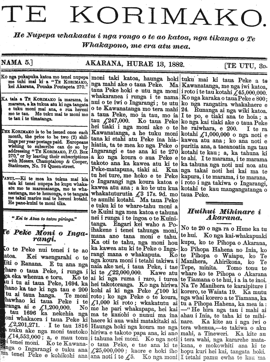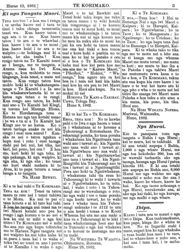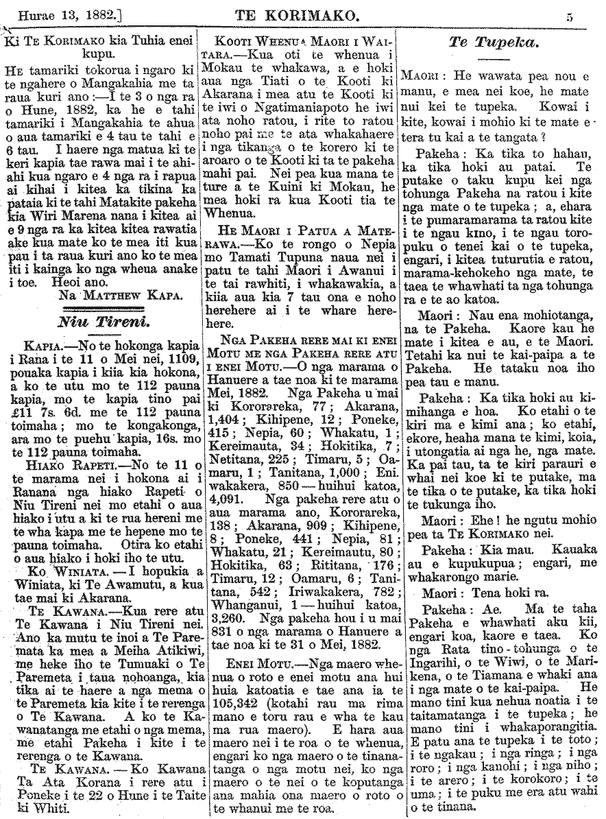 Te Korimako 1882-1890: Volume 0, Number 5. 12 July 1882 |