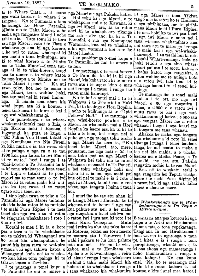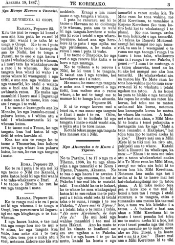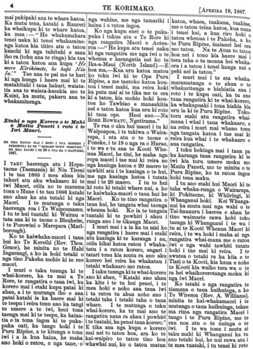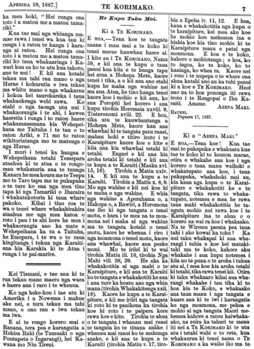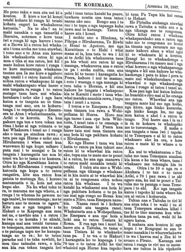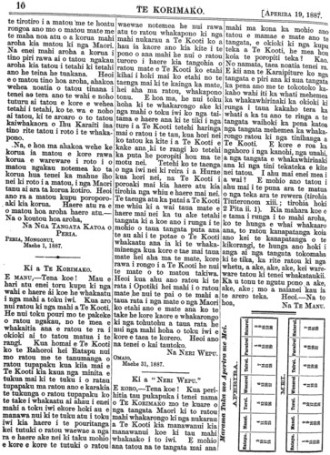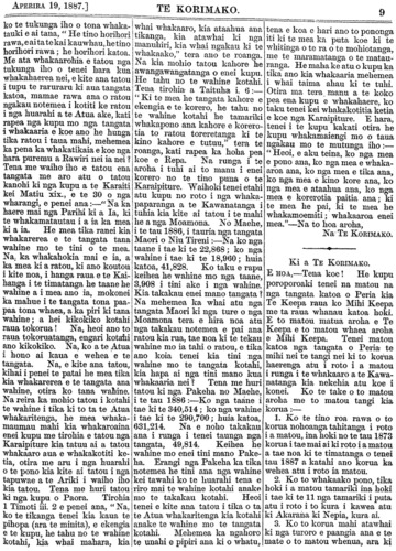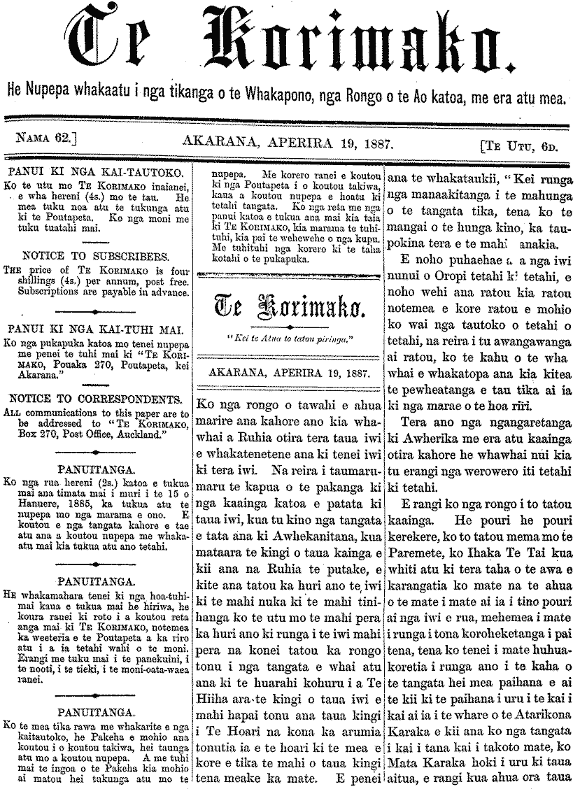 Te Korimako 1882-1890: Volume 0, Number 62. 19 April 1887 |