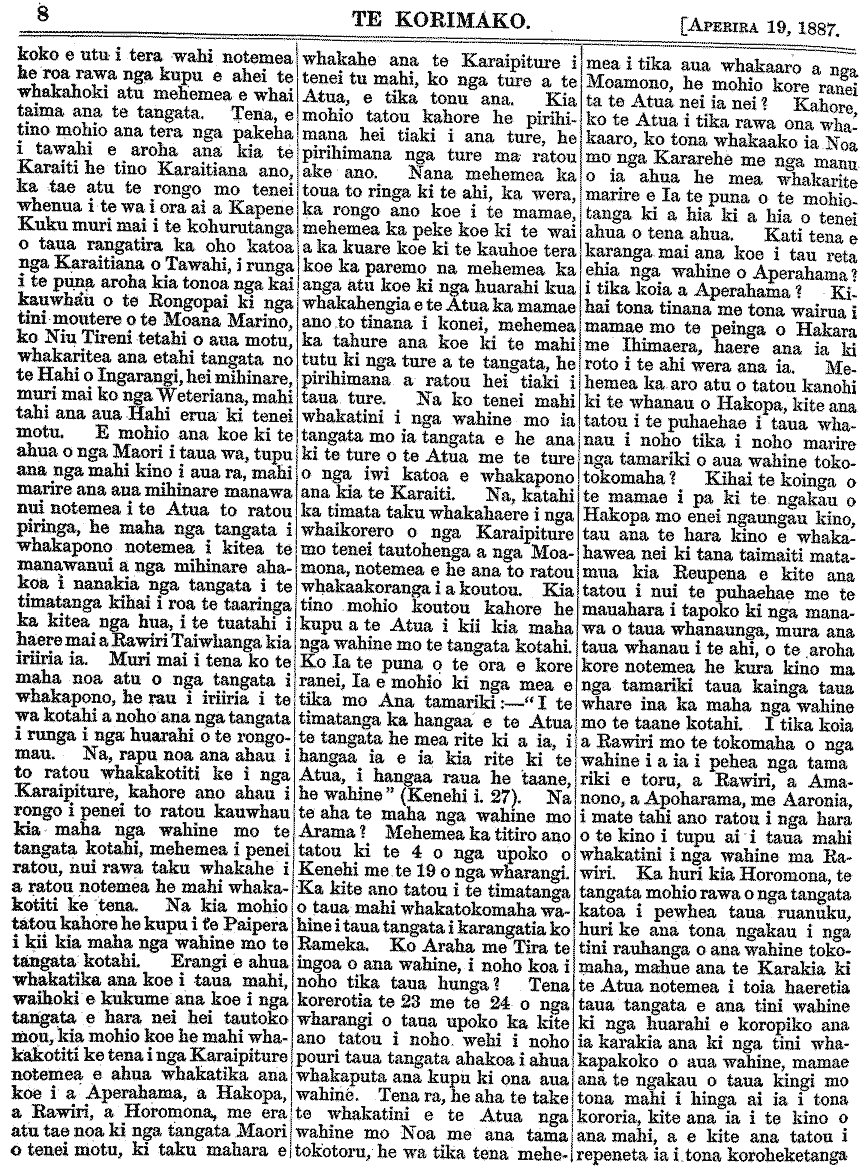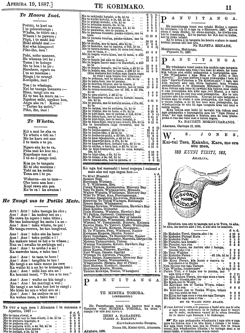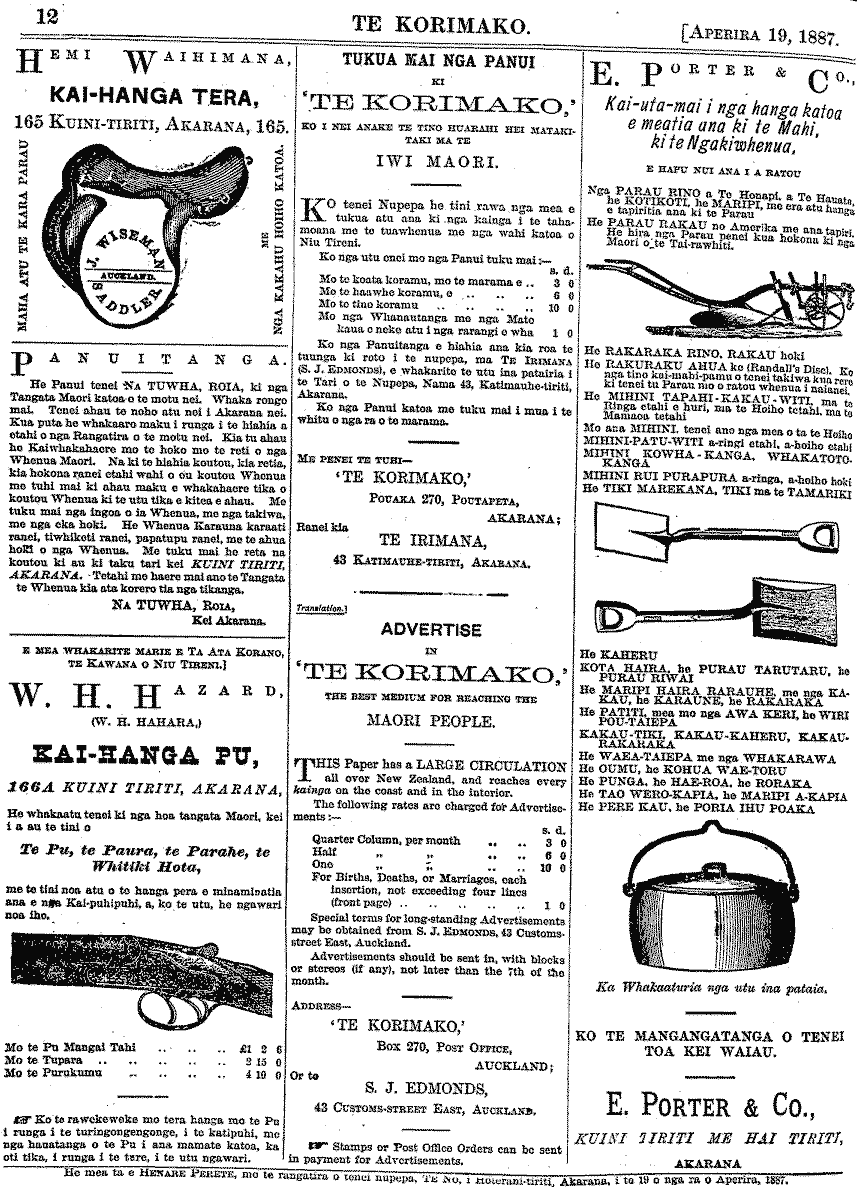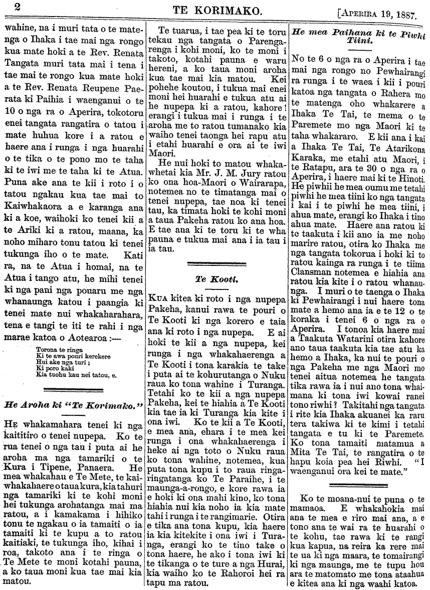 Te Korimako 1882-1890: Volume 0, Number 62. 19 April 1887 |