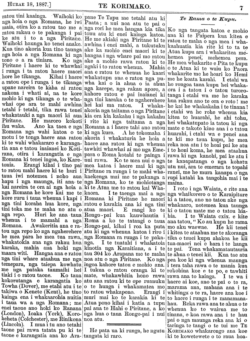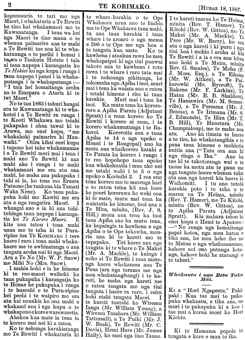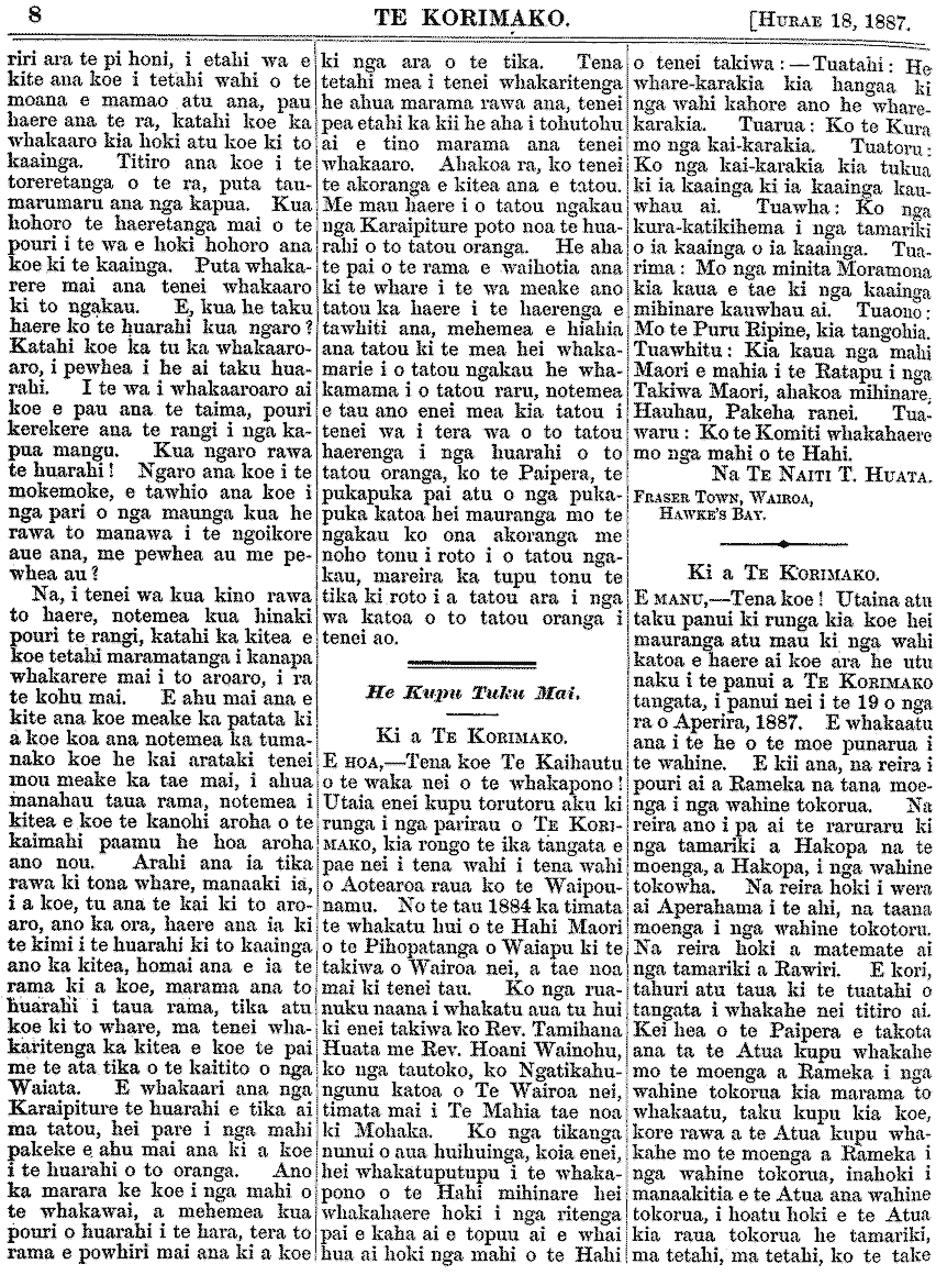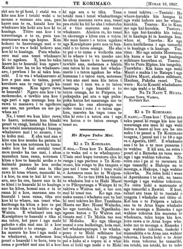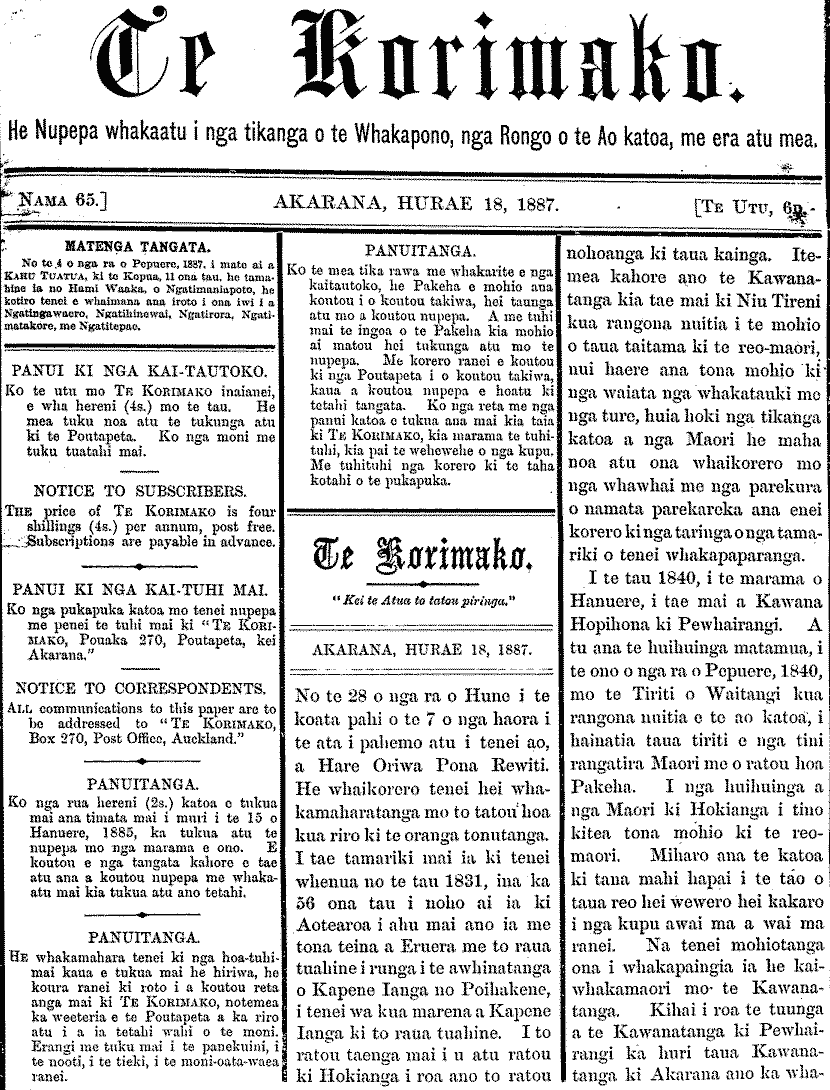Te Korimako 1882-1890: Volume 0, Number 65. 18 July 1887 |