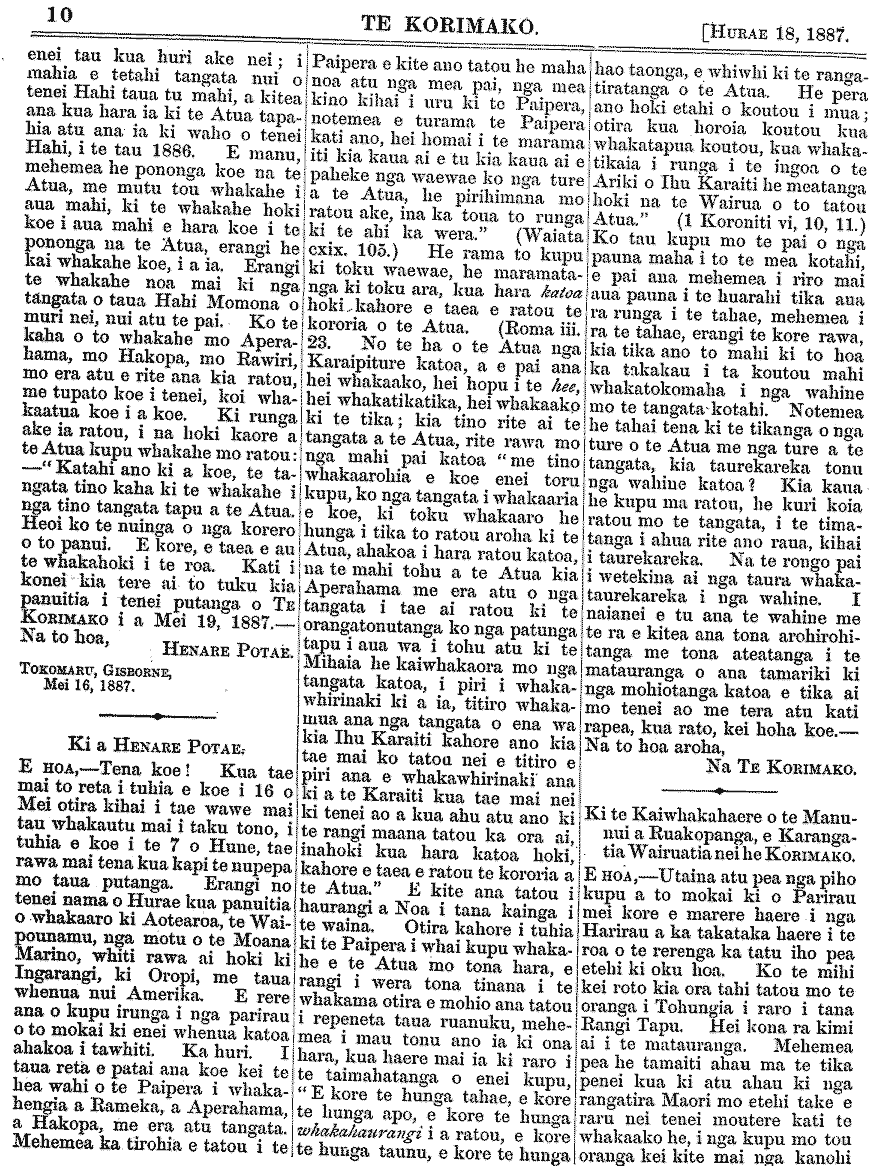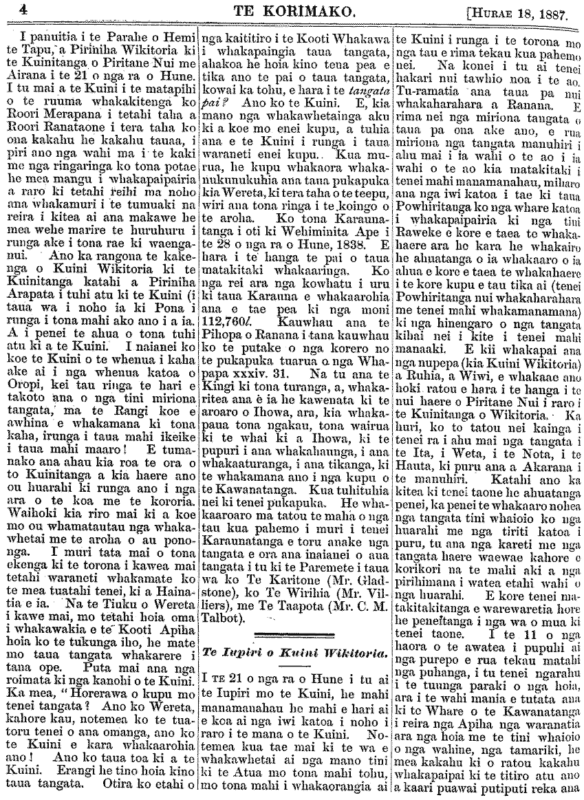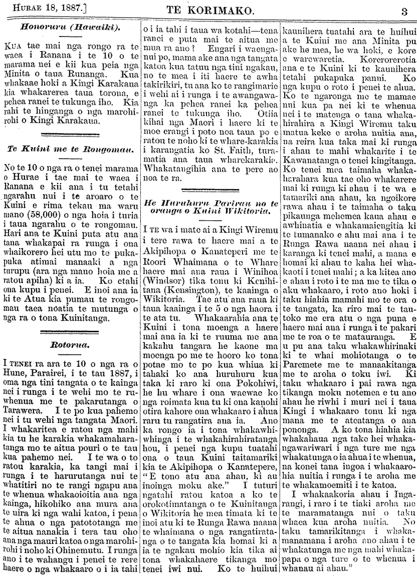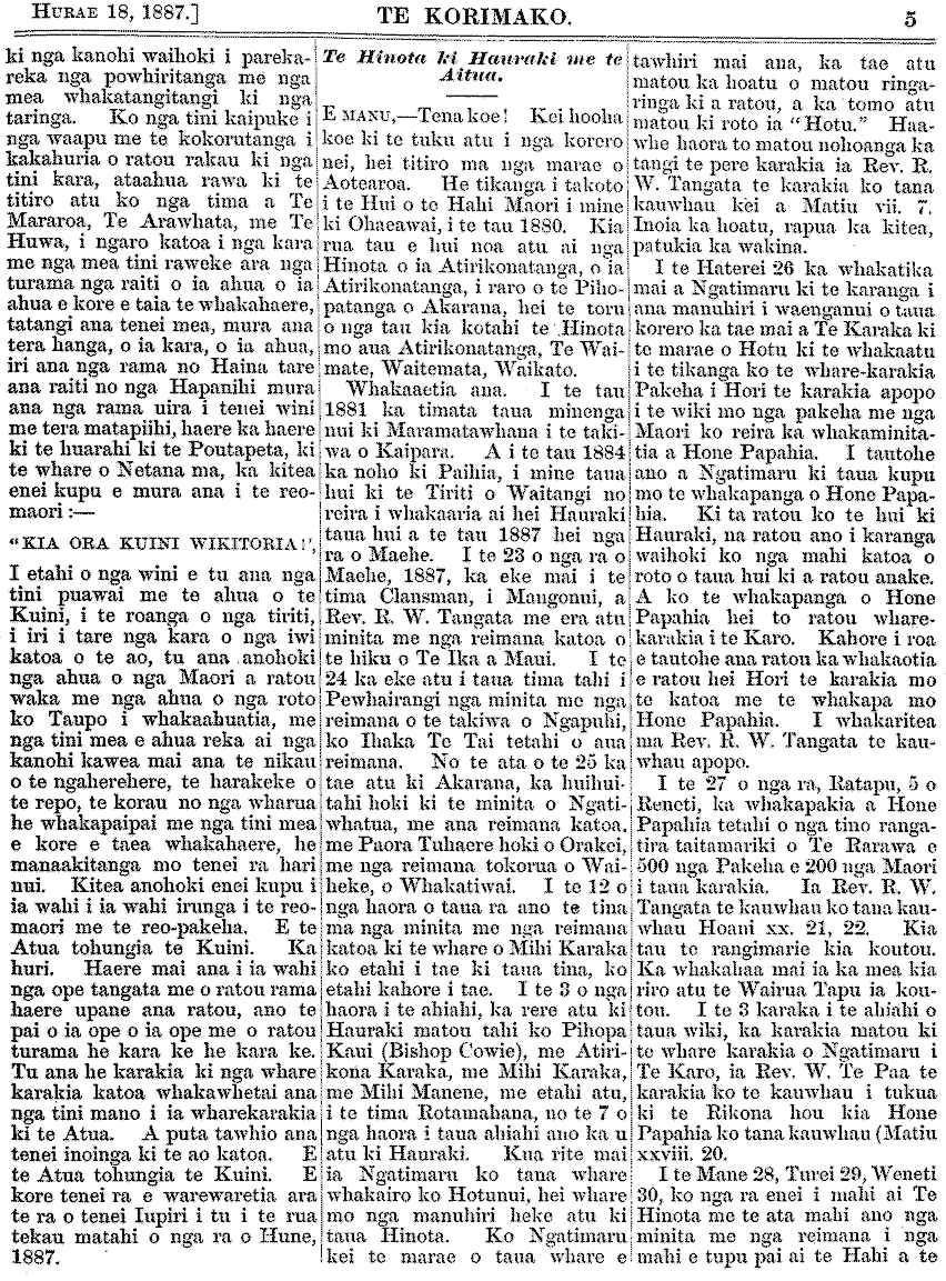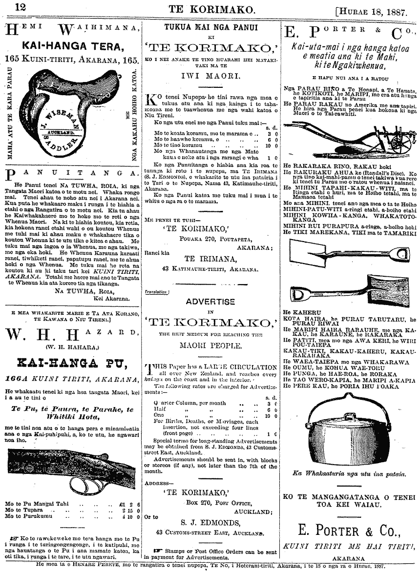 Te Korimako 1882-1890: Volume 0, Number 65. 18 July 1887 |