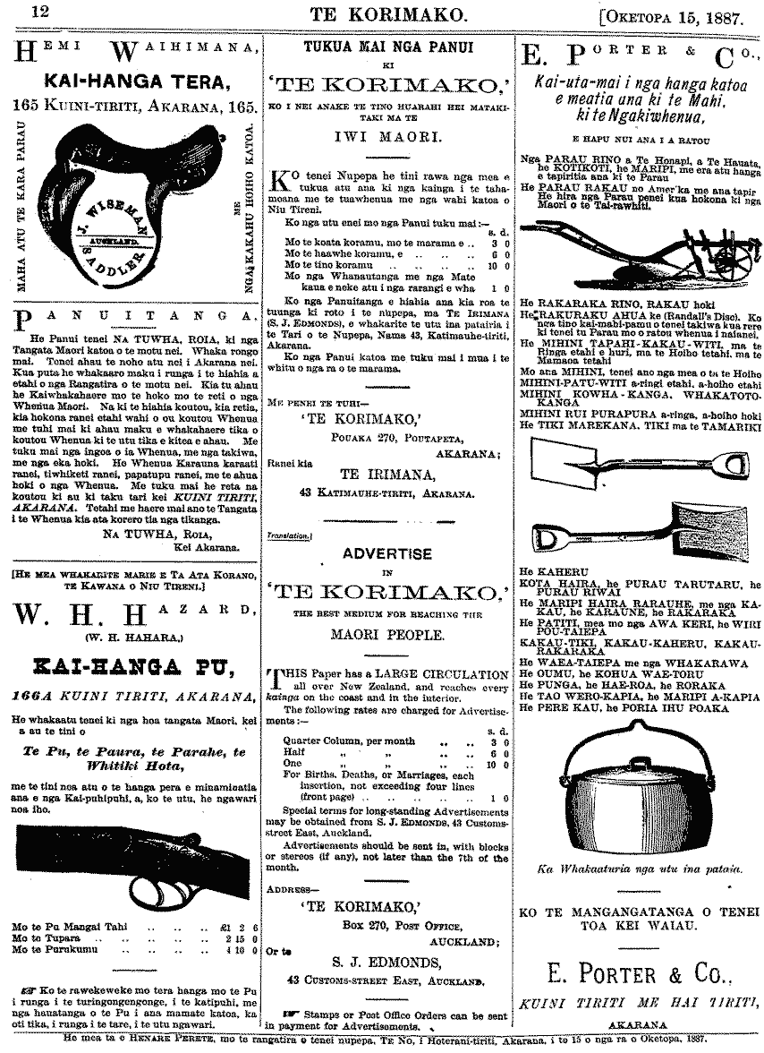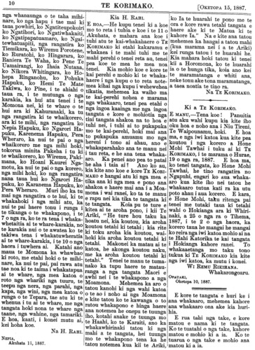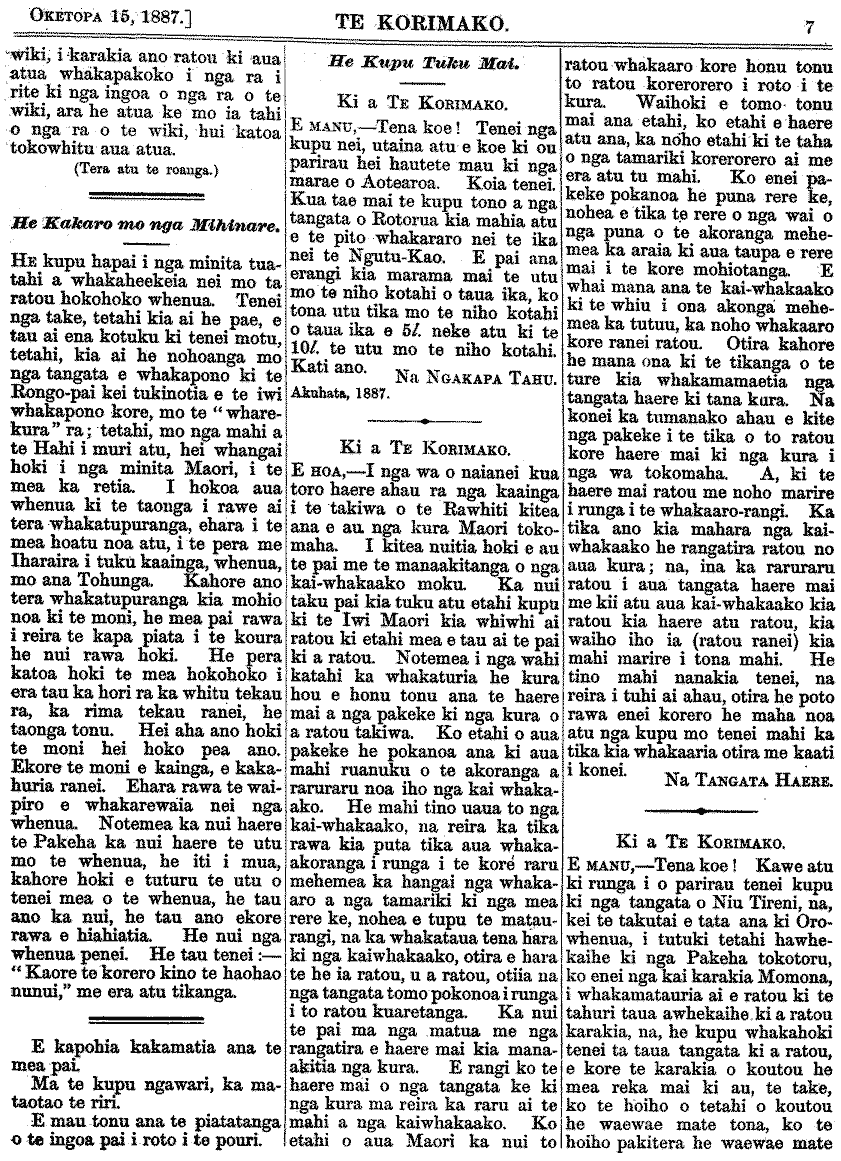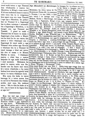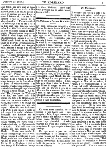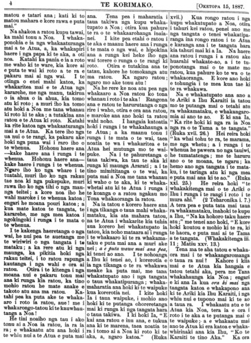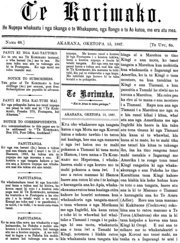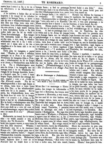 Te Korimako 1882-1890: Volume 0, Number 68. 15 October 1887 |