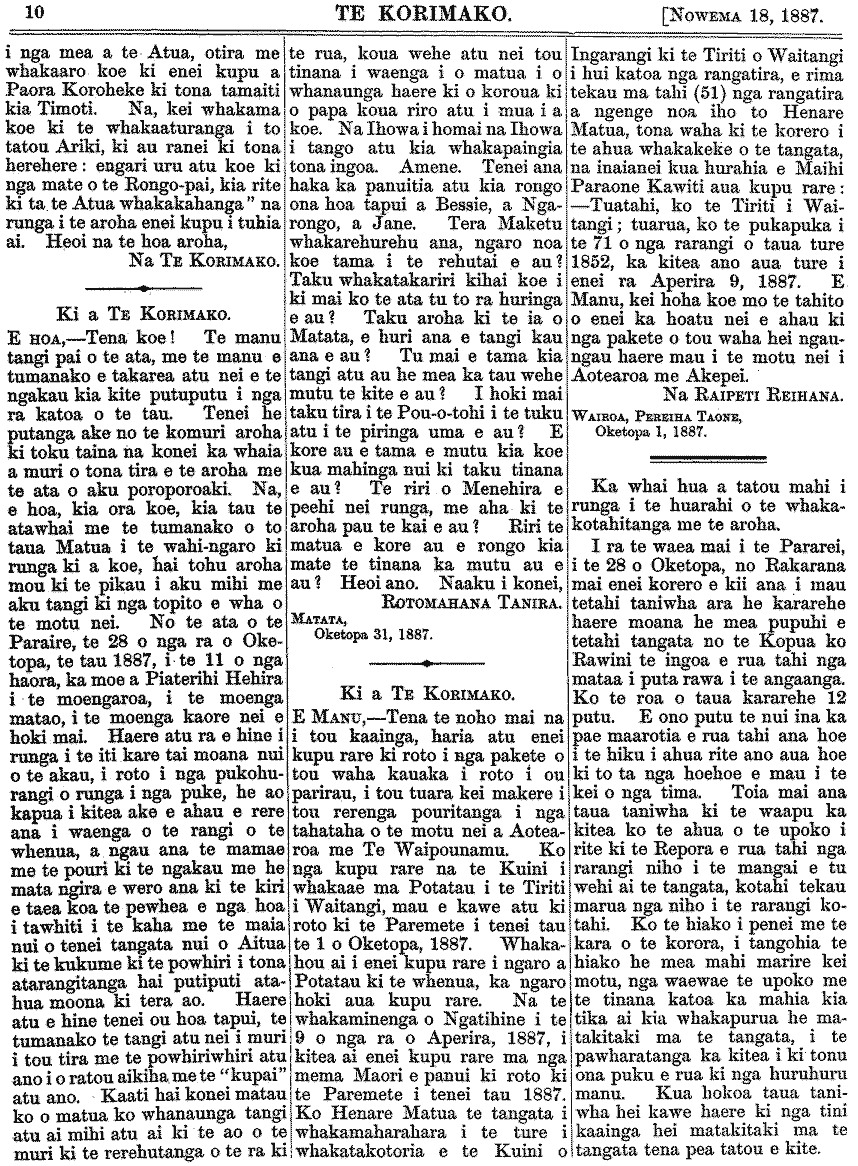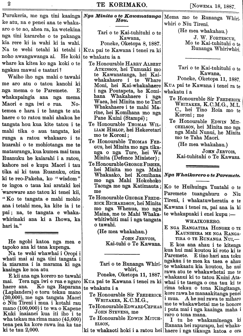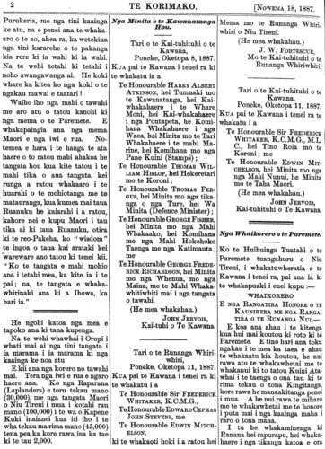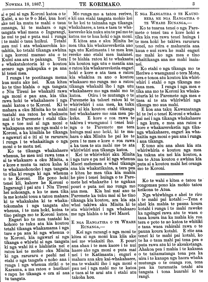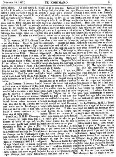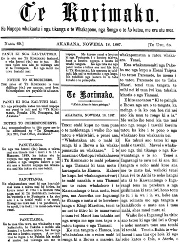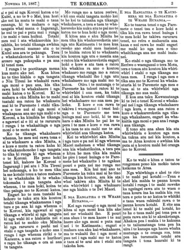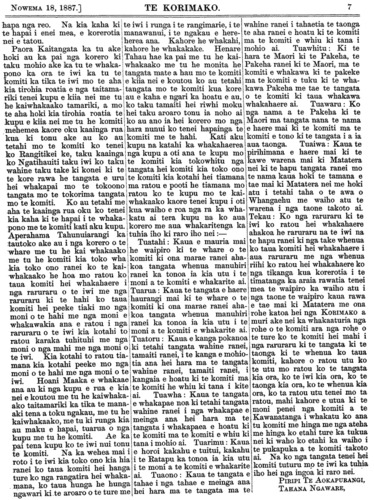 Te Korimako 1882-1890: Volume 0, Number 69. 18 November 1887 |