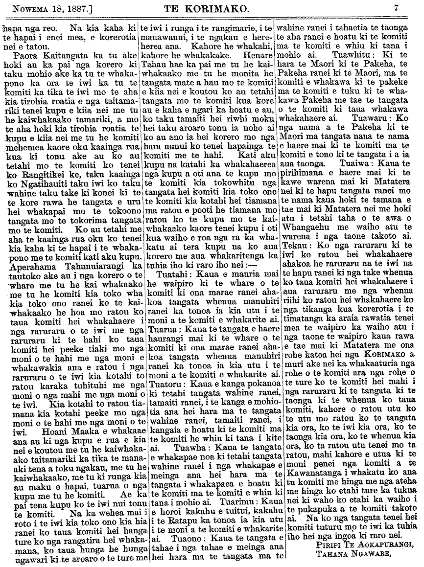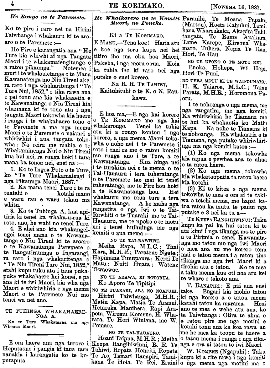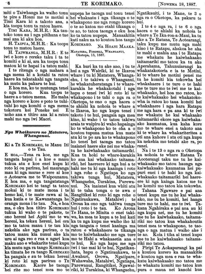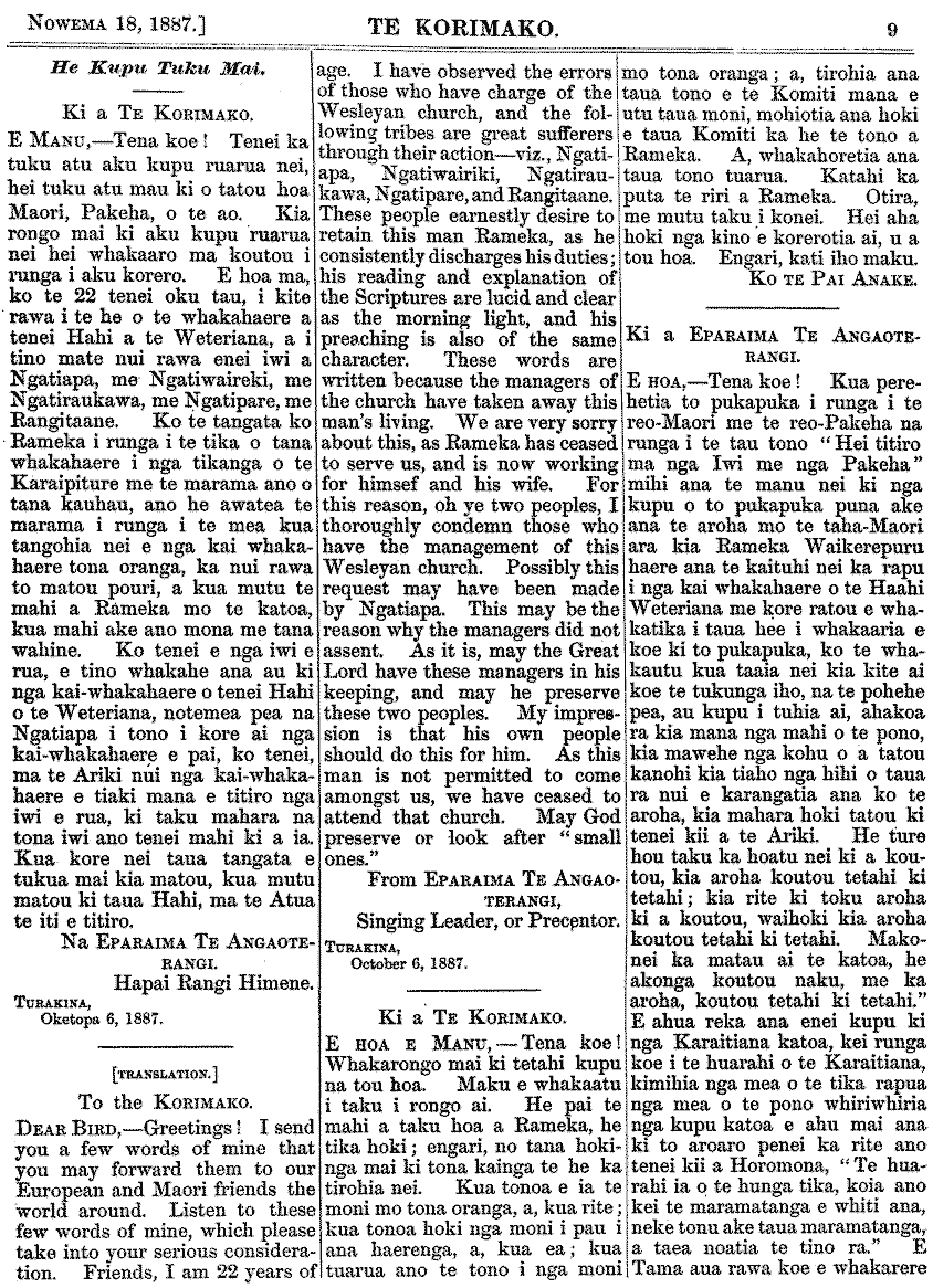 Te Korimako 1882-1890: Volume 0, Number 69. 18 November 1887 |