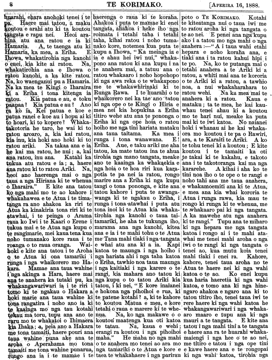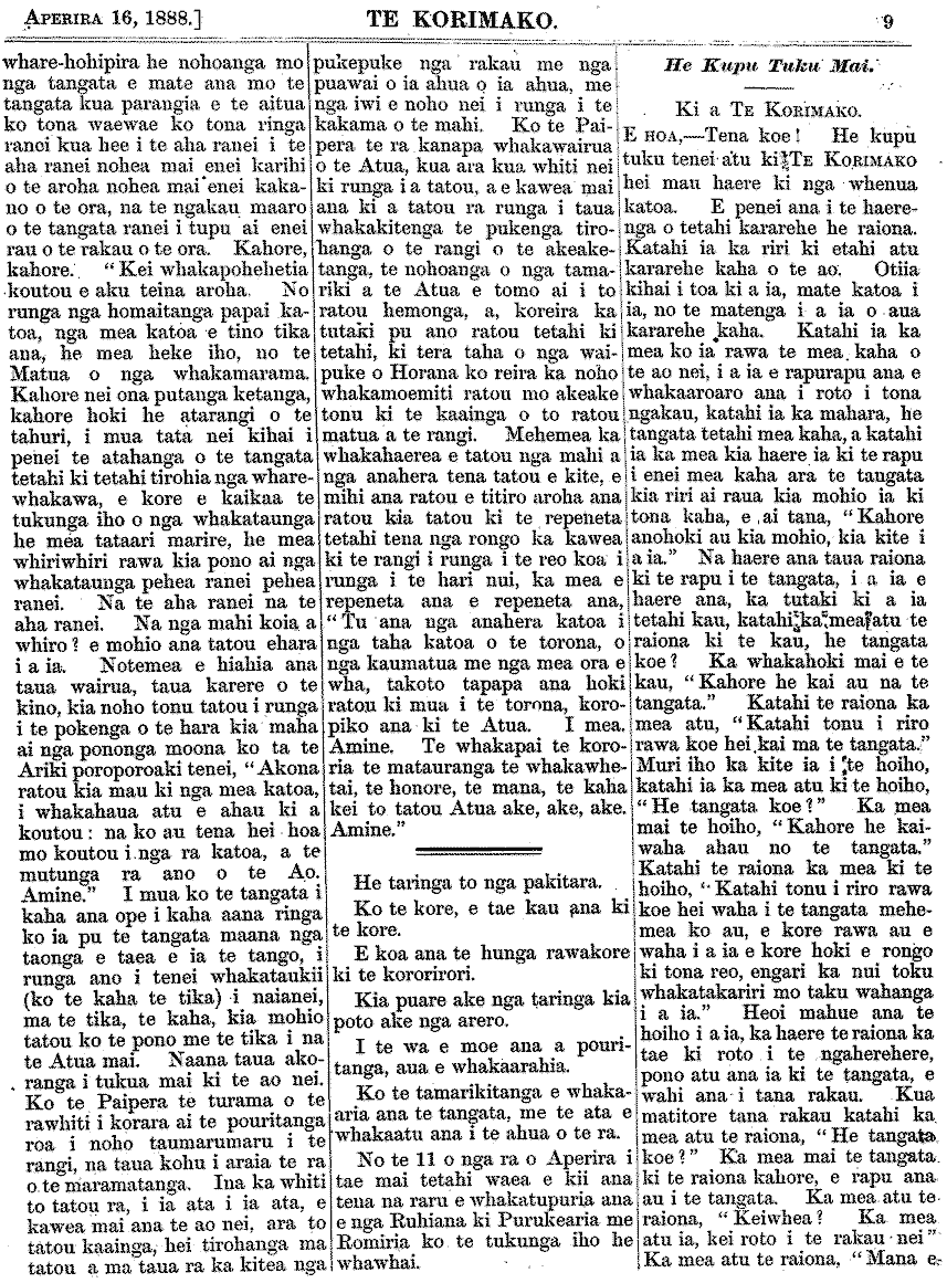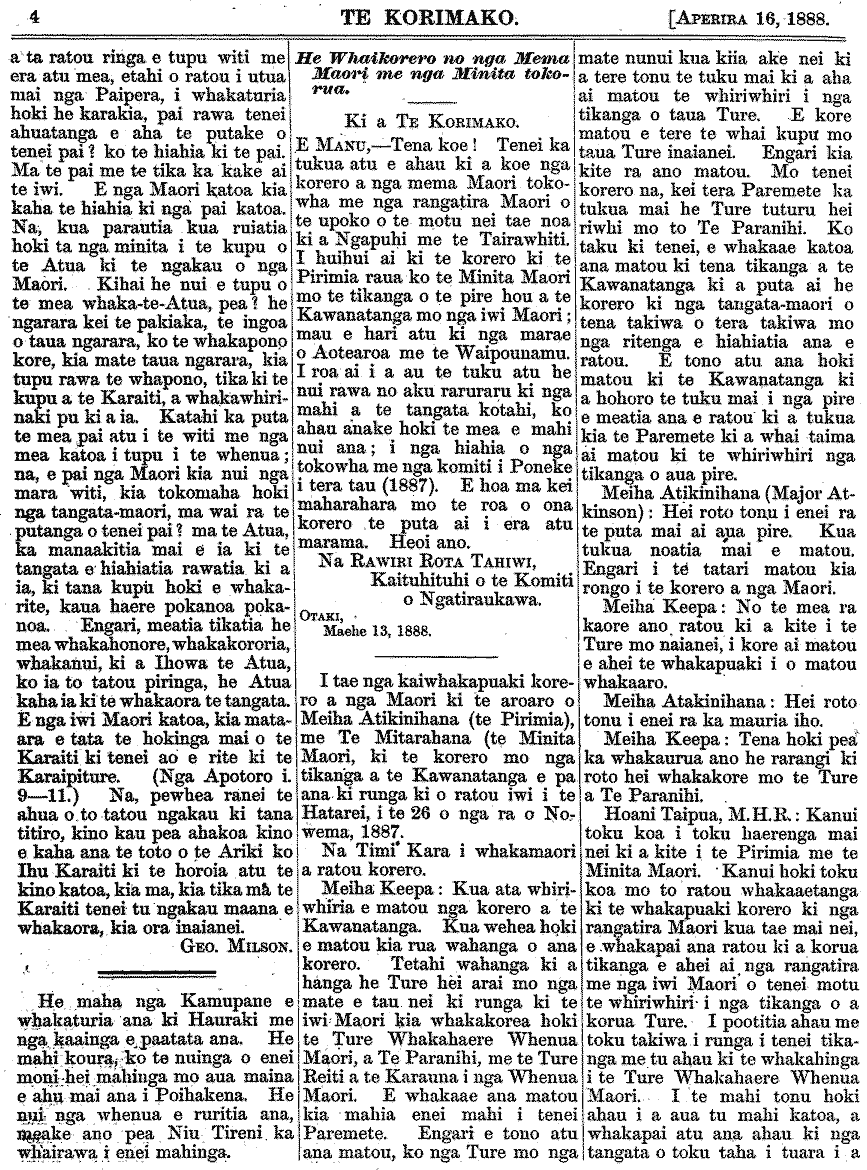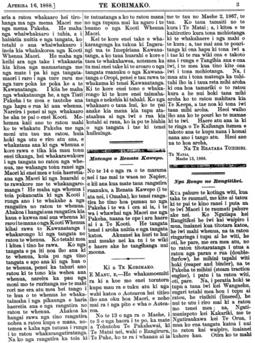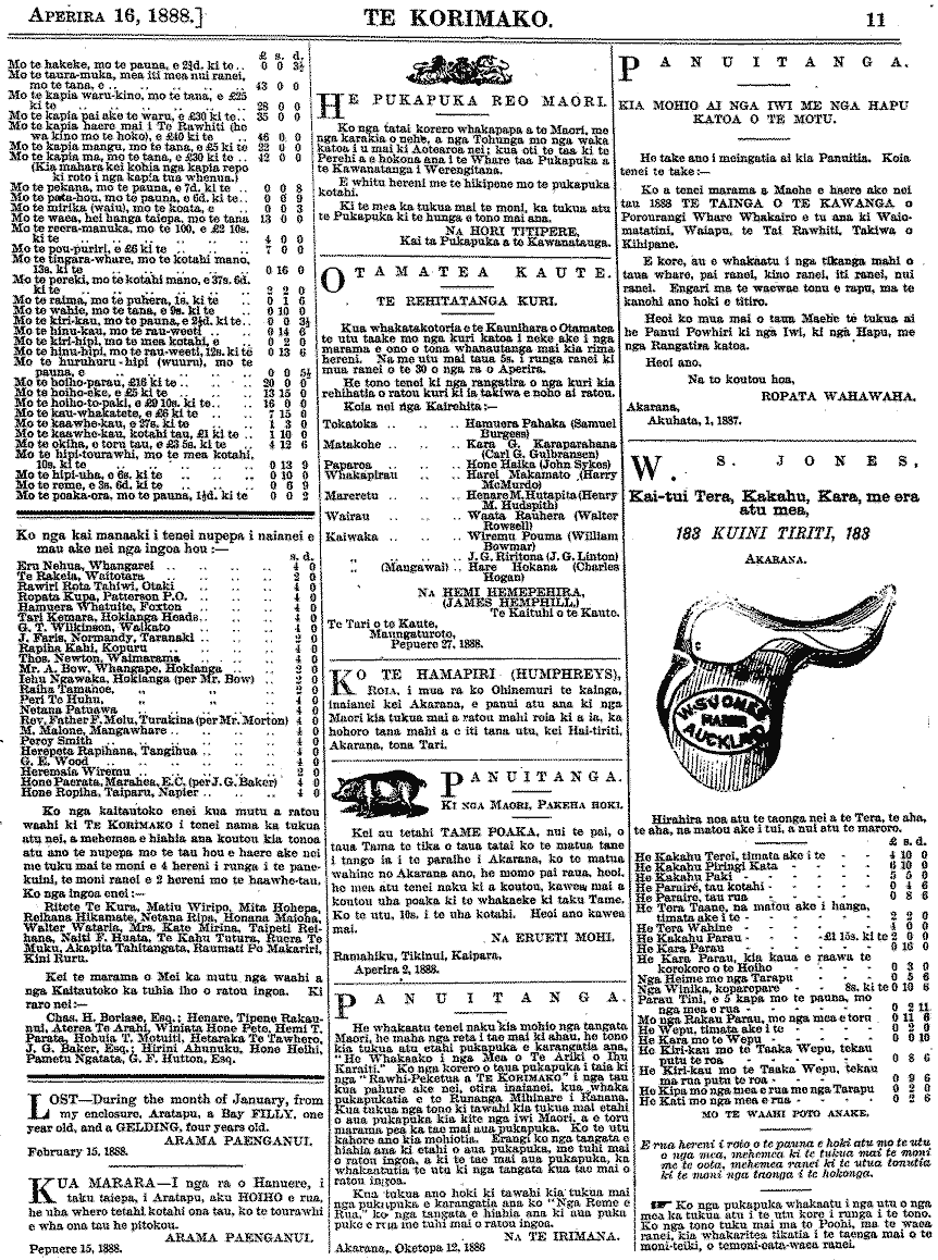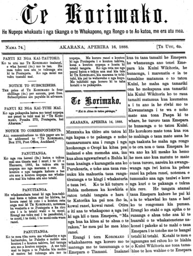 Te Korimako 1882-1890: Volume 0, Number 74. 16 April 1888 |