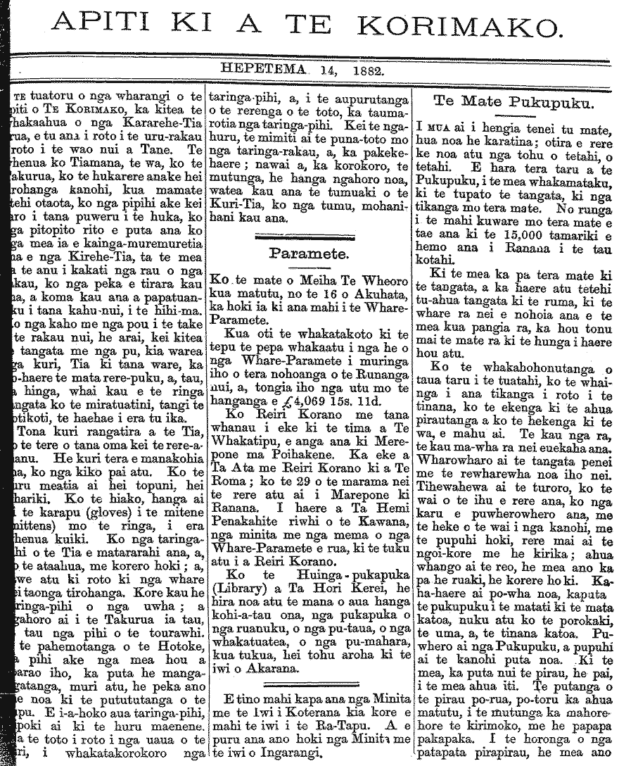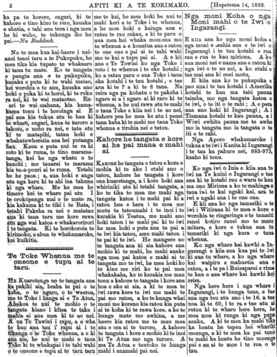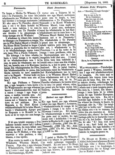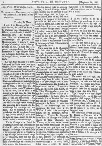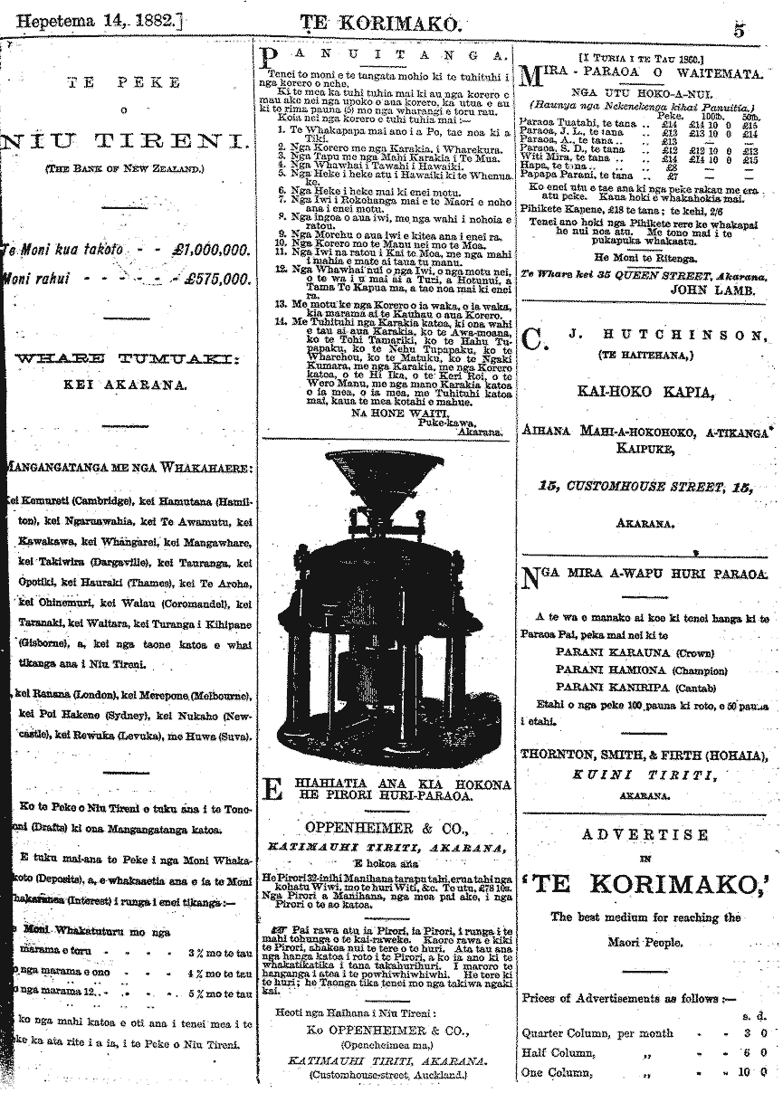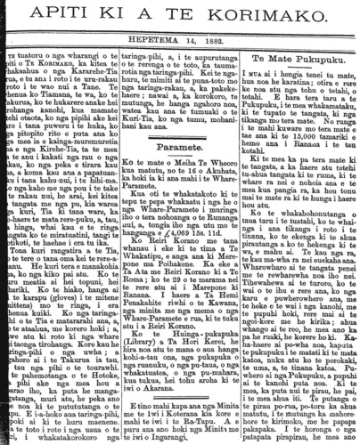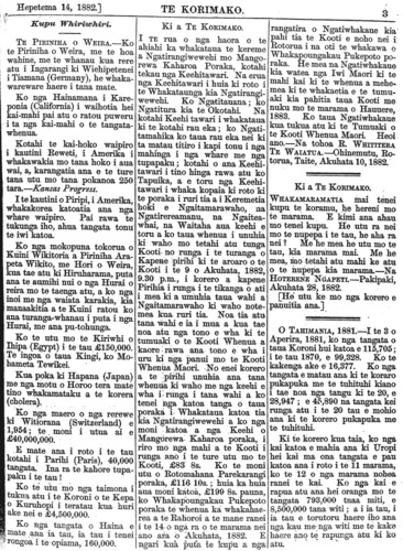 Te Korimako 1882-1890: Volume 0, Number 7. 14 September 1882 |