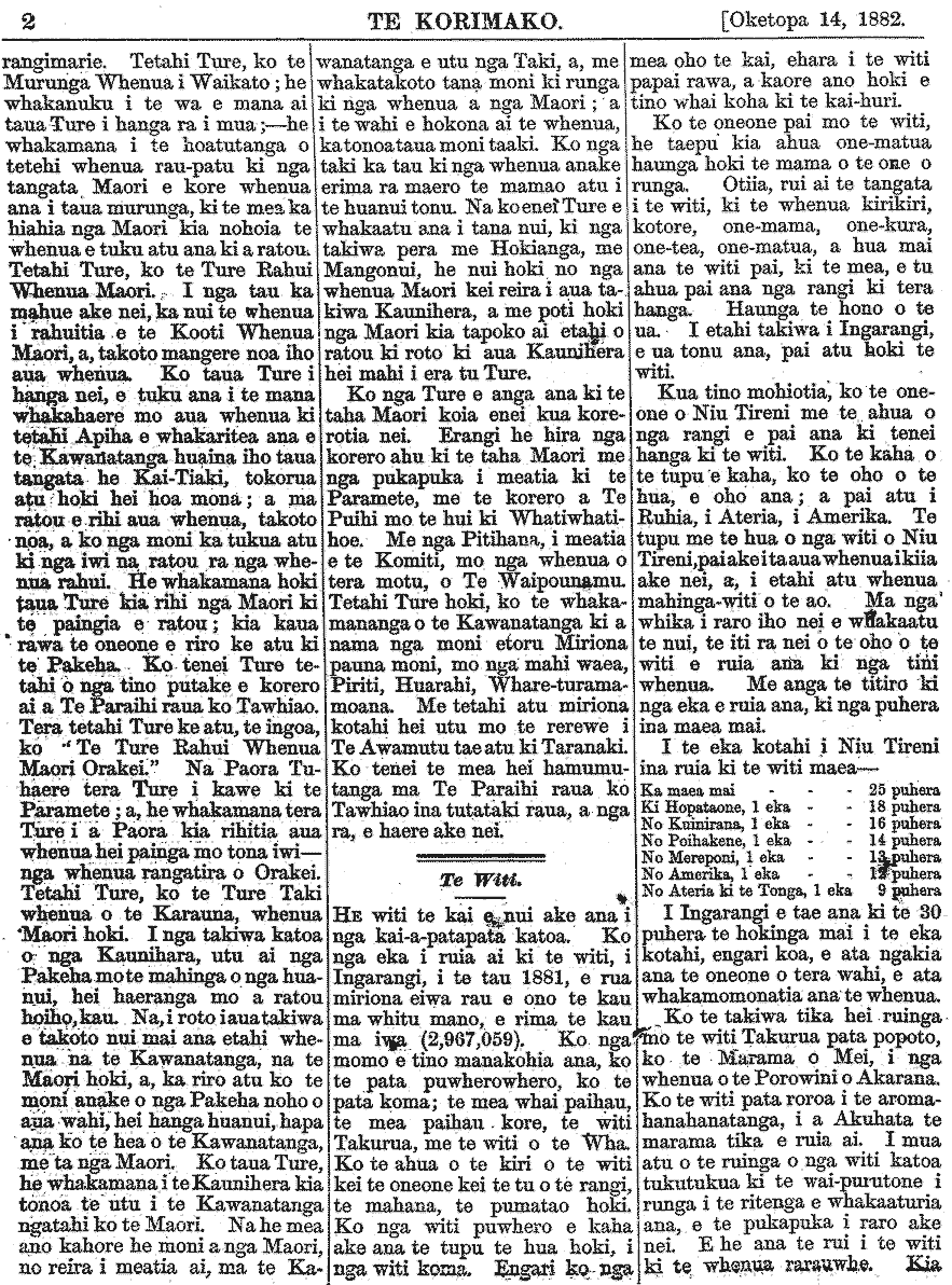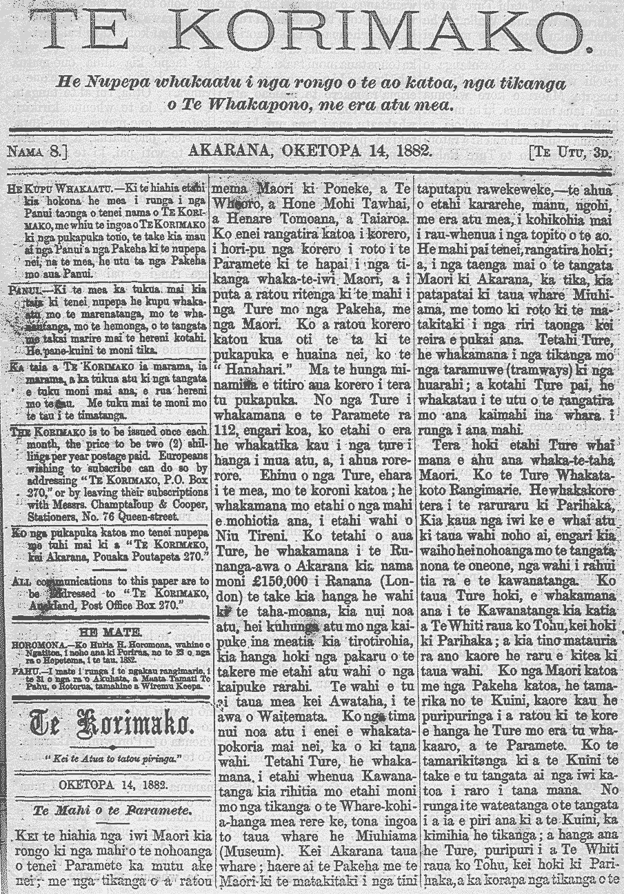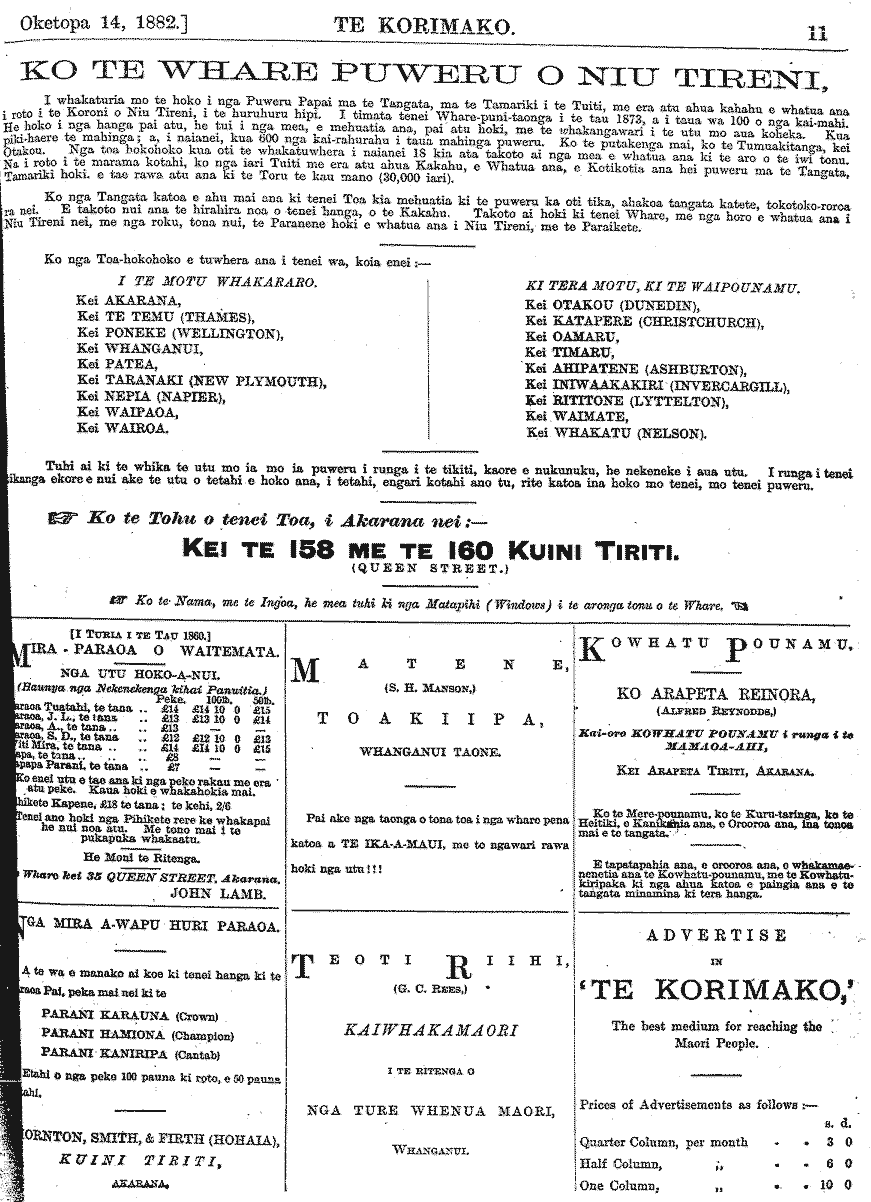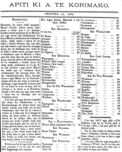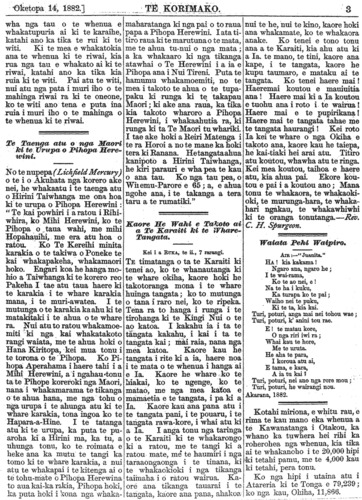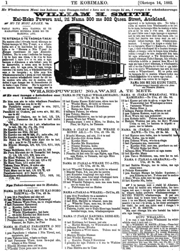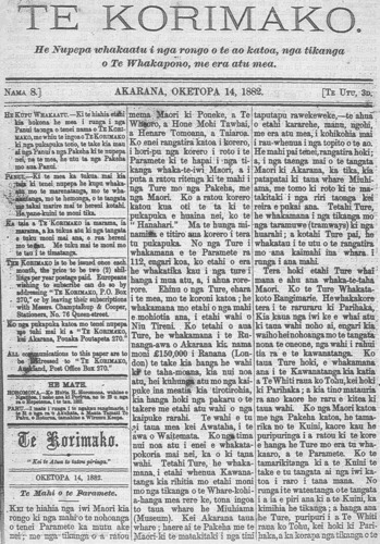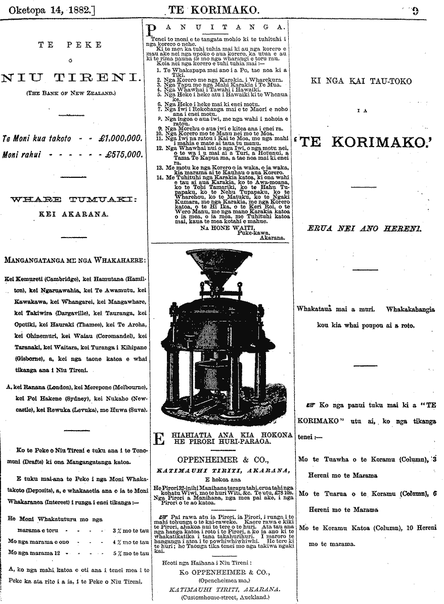 Te Korimako 1882-1890: Volume 0, Number 8. 14 October 1882 |