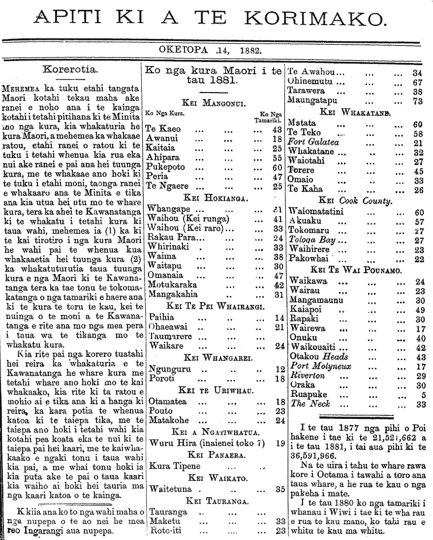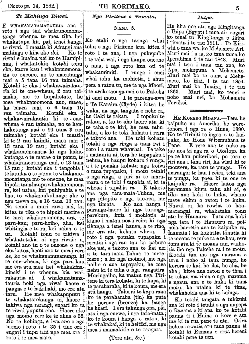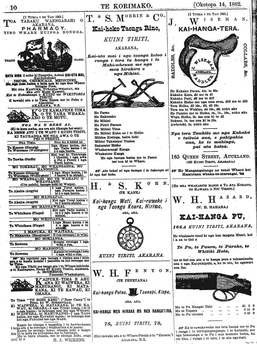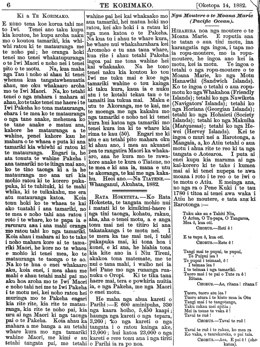 Te Korimako 1882-1890: Volume 0, Number 8. 14 October 1882 |