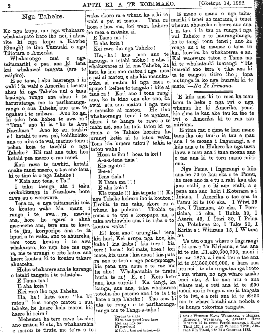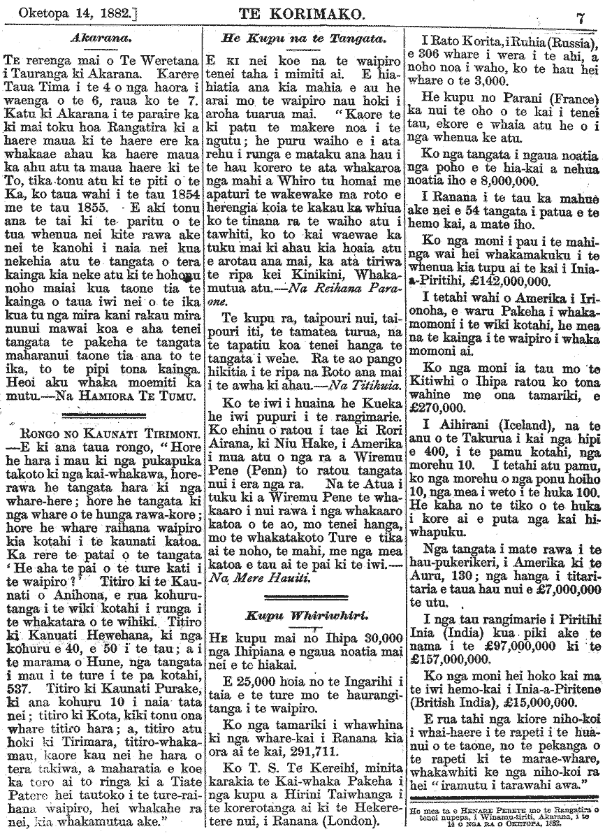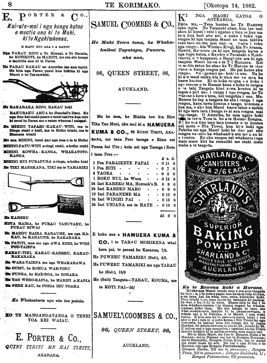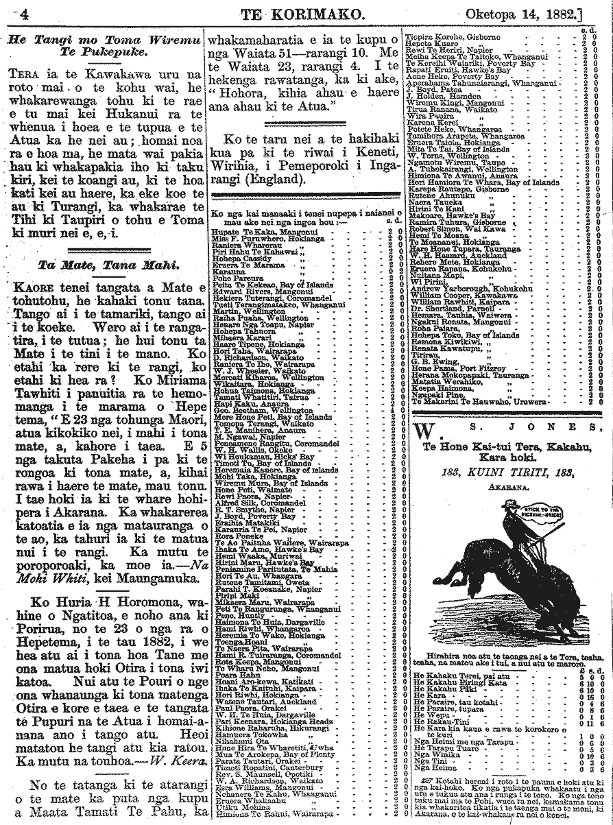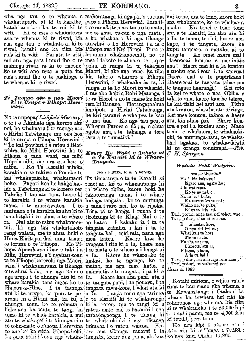 Te Korimako 1882-1890: Volume 0, Number 8. 14 October 1882 |